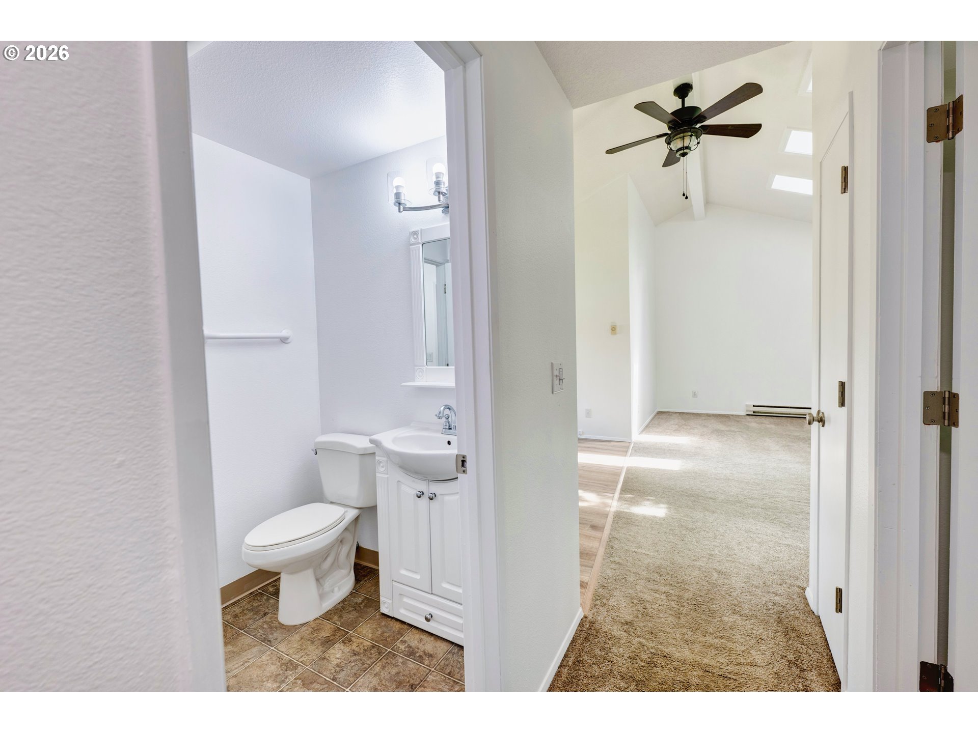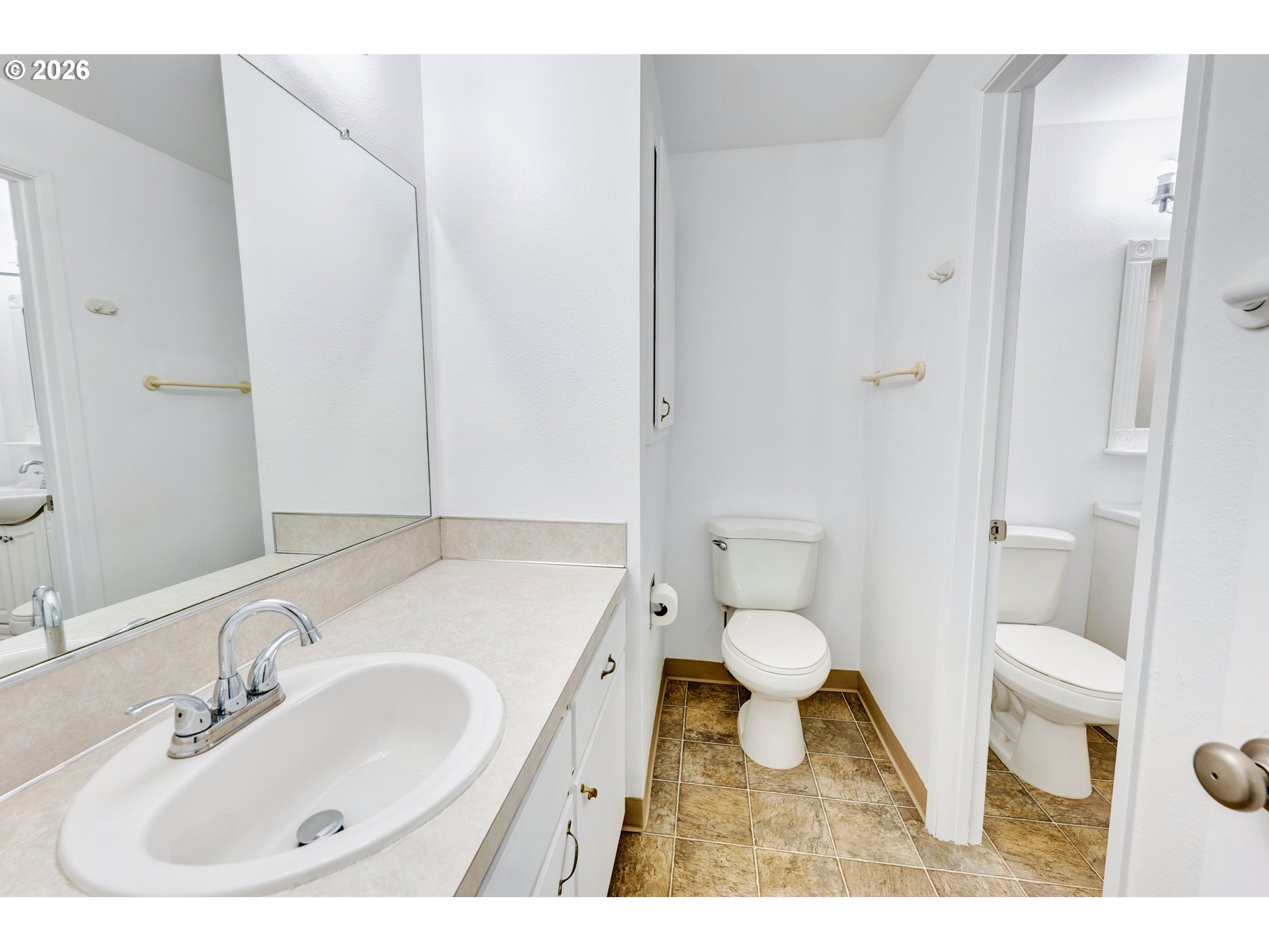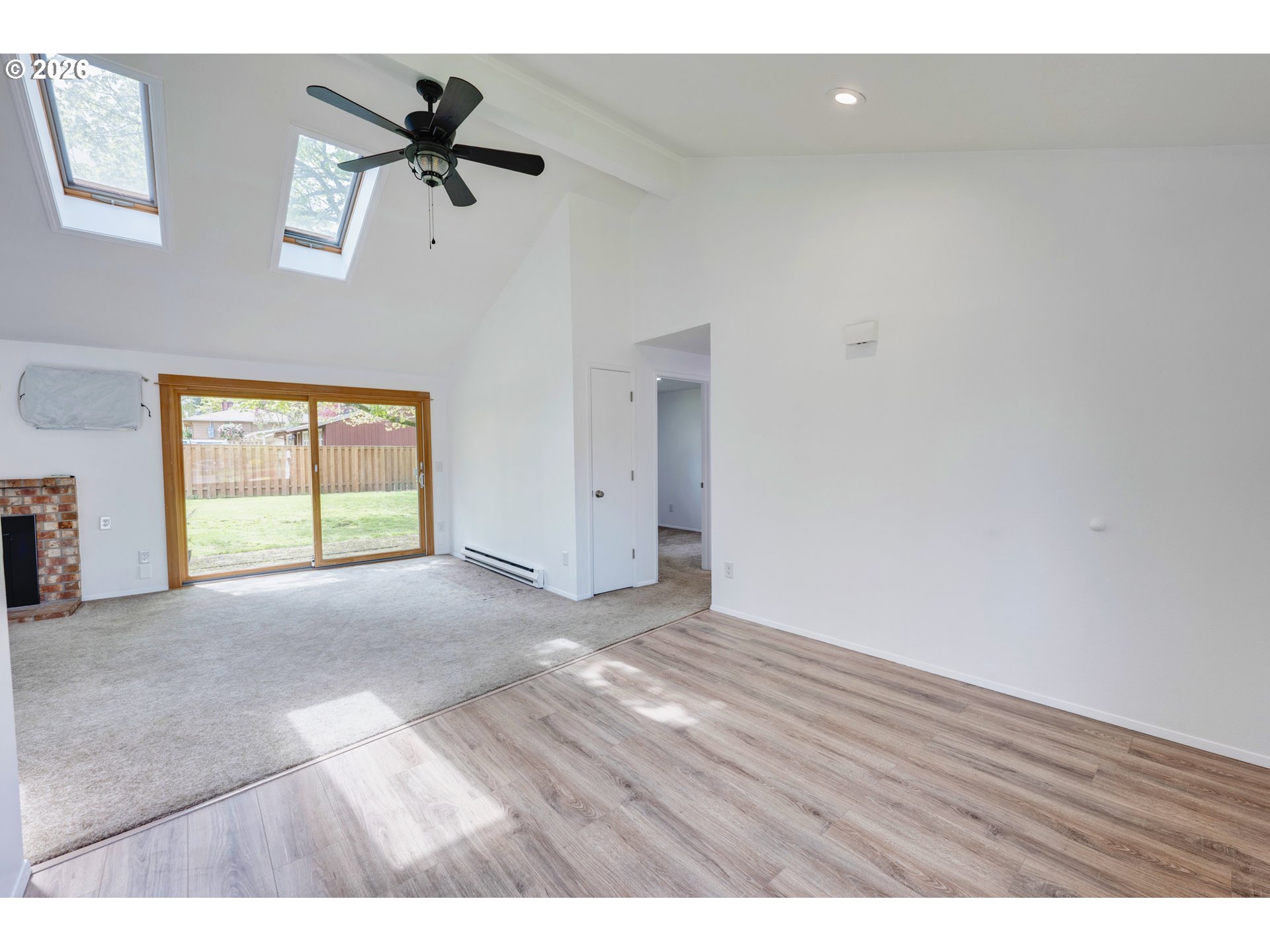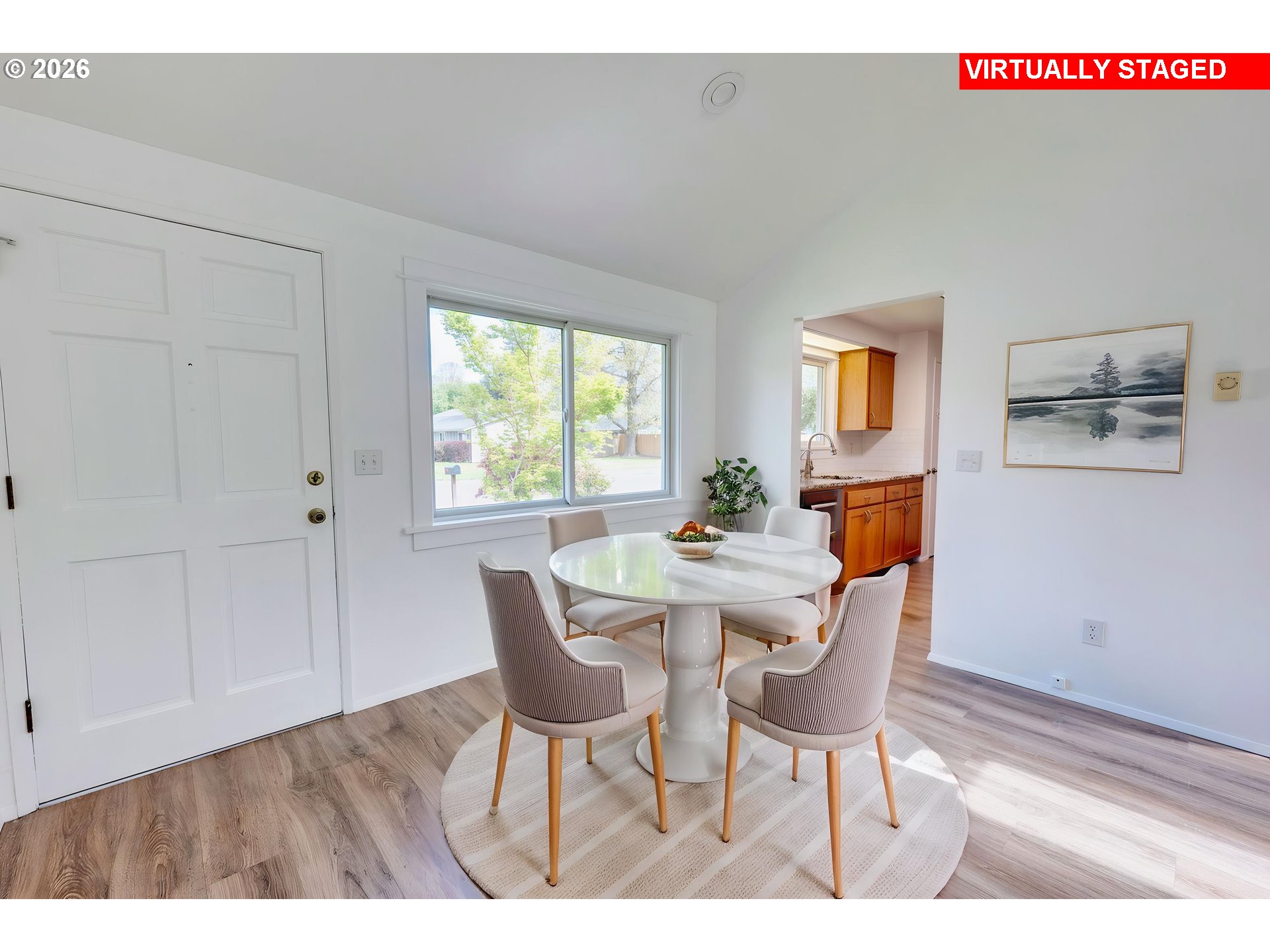 Step into this charming one-story ranch where comfort, convenience, and easy living come together. Tucked on a quiet street yet moments from shopping, restaurants, and everyday essentials, this home offers the best of both worlds. Owned solar panels help keep energy costs down, and thoughtful accessible features make the layout welcoming for all. The vaulted living room with a ceiling fan, dramatic height and three skylights provide abundant natural light. A cozy pellet stove provides additional warmth, and a large Andersen sliding door opens to an expansive backyard and patio. The updated kitchen features granite counters, subway tile backsplash, gas range with convection oven, refrigerator, stainless steel appliances, and a newer Bosch dishwasher. The vaulted dining area room off the kitchen includes a picture window overlooking the front yard. This home offers three comfortable bedrooms, including one with its own attached half bath—ideal for a private retreat. The half bath adjoins the full bath which also has a door to the hallway. The large, level, fully fenced backyard is perfect for play, pets and entertaining, with a patio for outdoor dining and three raised garden beds ready for your veggies, herbs, or flowers. Practical features include a two-car attached garage with storage, washer and dryer included, double-pane vinyl windows,mroof installed in 2019, durable fiber-cement siding, and an accessible layout with minimal steps and a ramp to the front door. Easy freeway access and just minutes to Costco, Walmart, Winco and Fred Meyer and Washington Square, Highway 217 and I-5.
