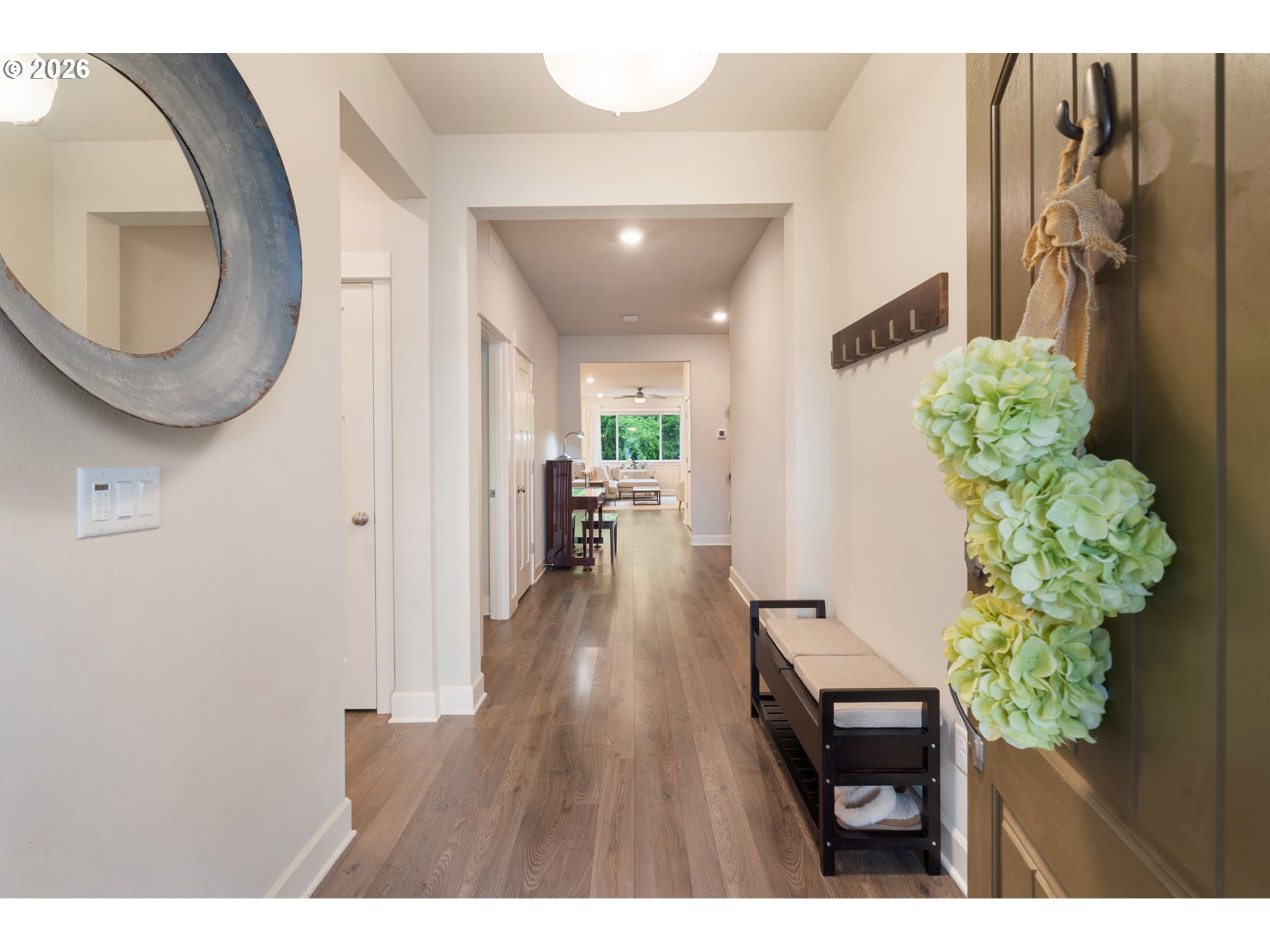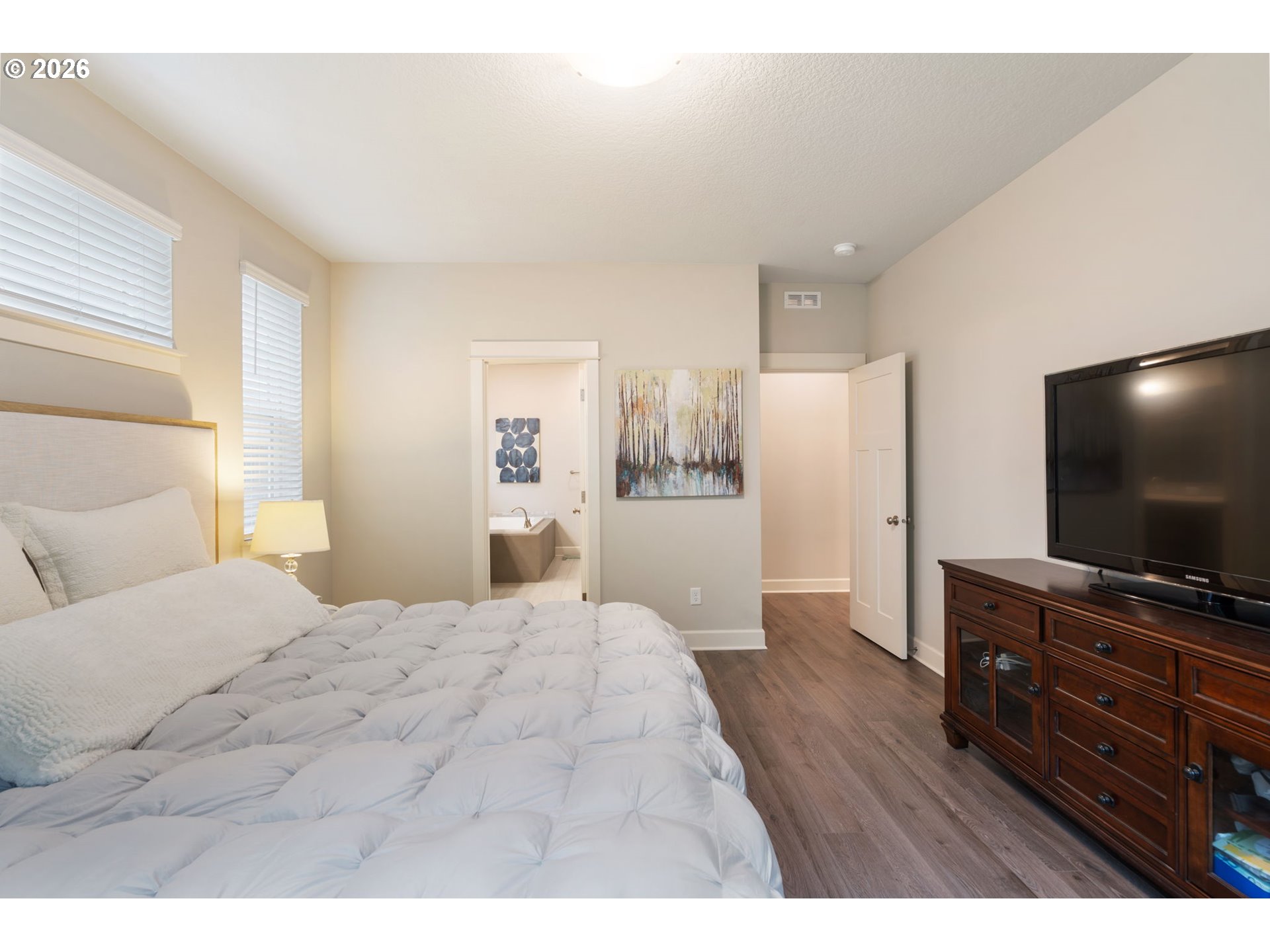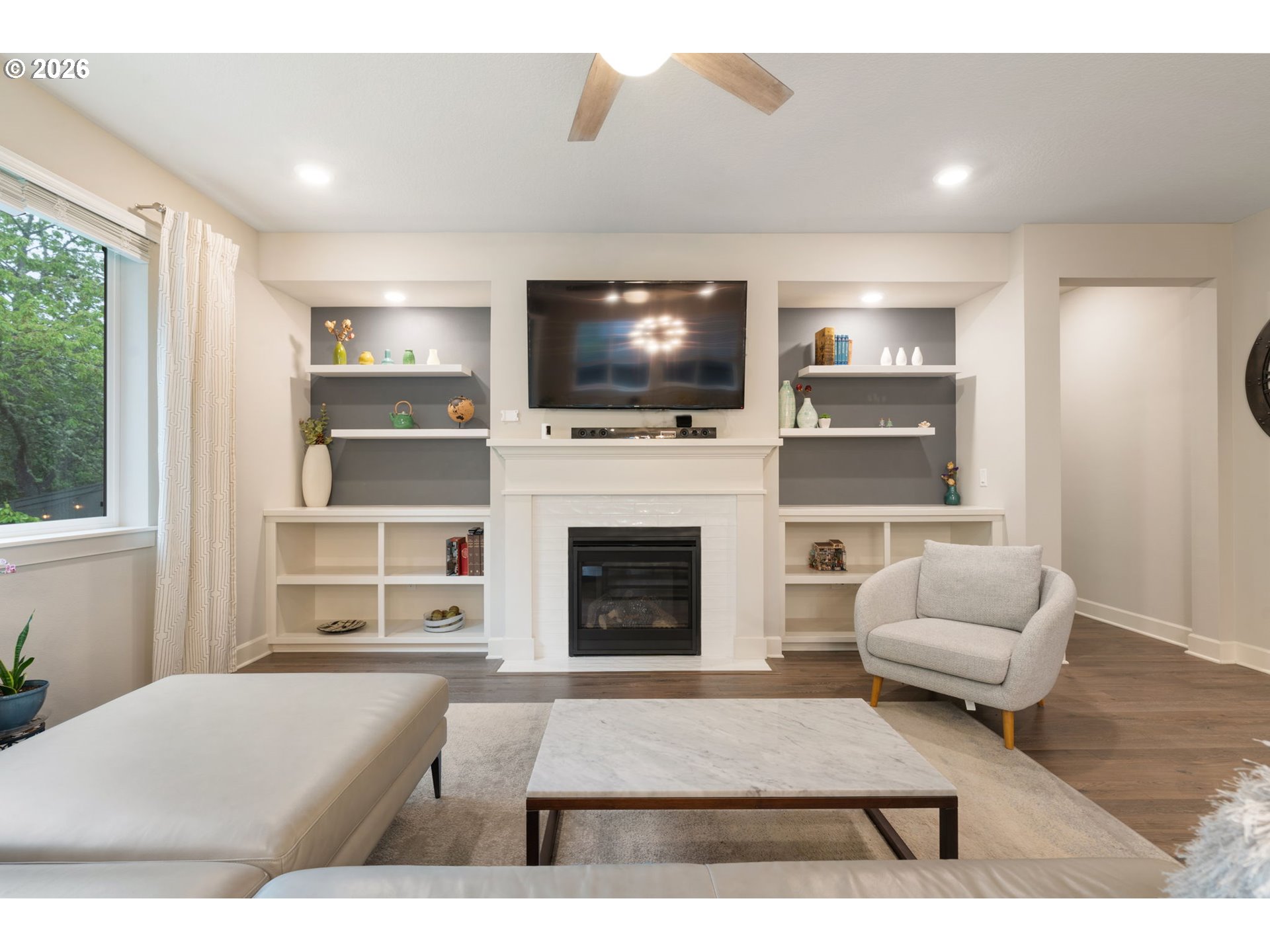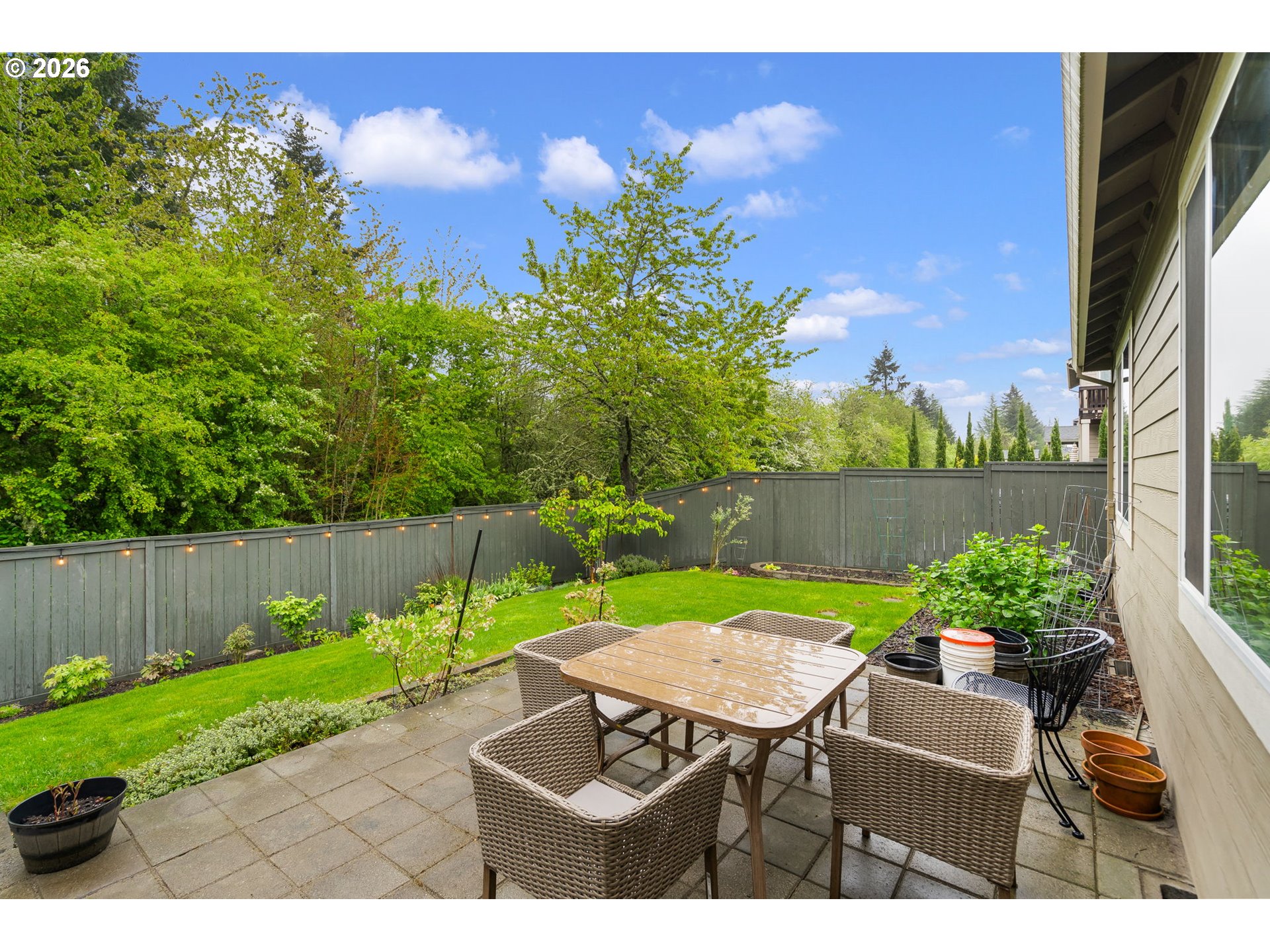 OPEN SUN 4/26 2-4PM! Hard to find one-level home in immaculate condition! This 2019-built home has everything you are looking for! Expansive open concept kitchen and inviting great room, high ceilings, and a smart floorplan with three bedrooms and two full baths. The primary suite features a walk in closet and a bath with a soaking tub and separate shower. Other features include a gas fireplace, built-in shelves, Quartz countertops, stainless gas appliances, A/C and high efficiency furnace, and easy care laminate flooring. You’ll love the large private backyard that is fenced with covered patio – perfect for relaxing or entertaining and backing to greenspace. Attached 2 car garage. HOA fees cover front landscaping. If you have been looking for like new, single level living with no steps and a wonderful big backyard, this is it! HURRY, MUST SEE! [Home Energy Score = 7. HES Report at https://rpt.greenbuildingregistry.com/hes/OR10247610]