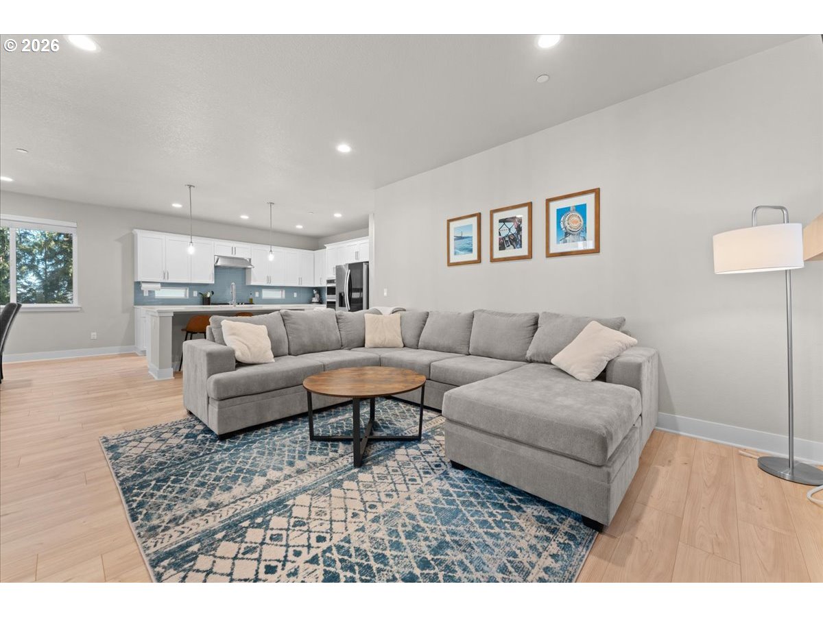 (503) 893-8874Backyard oasis on Cooper Mountain. Better-than-new 2022 Riverside at Woodland Hill home backing to lush green space with a fully landscaped, flat backyard designed for everyday living and easy entertaining. Approximately 2,510 sq ft with 4 bedrooms and 3 full baths, this light-filled home features an open-concept main level that frames serene outdoor views. The living room includes a gas fireplace, expansive windows, and flexible living/dining areas that flow into a stylish kitchen with quartz countertops, large island with eating bar and sink, tile backsplash, gas cooktop, Whirlpool oven, and energy-efficient stainless-steel appliances, including LG refrigerator.A main-floor bedroom with adjacent full bath provides excellent flexibility for guests, multigenerational living, or a home office. Upstairs, the expansive primary suite offers large windows, double sinks, soaking tub, separate shower, and private walk-in closet. Two additional bedrooms and a convenient laundry room with LG washer and dryer, tile flooring, and built-in cabinetry complete the upper level.Outside, a rare, usable backyard oasis features new turf, level lawn, fencing, upper deck, and lower concrete paver patio with dedicated entertaining space and retaining wall, all backing to green space for a private, tranquil setting. Multiple outdoor zones create ideal spots for morning coffee, summer gatherings, and quiet evenings at home, making the yard feel like an extension of the living space.Additional highlights include new waterproof Malibu Chestnut laminate flooring, built-in garage storage racks, forced-air heating, central air conditioning, and tankless water heater, all on an approximately 6,098 sq ft (.14 acre) lot in a Cooper Mountain single-family neighborhood close to parks, shopping, dining, Nike, Intel, and nature trails, with access to Cooper Mountain Elementary, Highland Park Middle, and Mountainside High School (buyer to verify schools).
