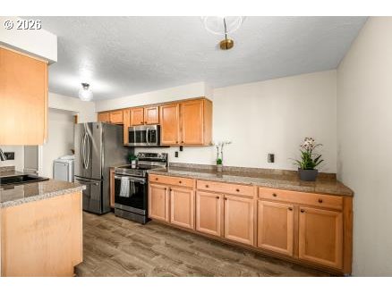 (503) 893-8874Step into this stylish, move-in-ready Tualatin condo where nearly everything has been refreshed—newer roof, siding, windows, & exterior paint give the whole building a crisp, modern feel before you even walk inside. The sunny entryway welcomes you with brand-new luxury vinyl flooring & a convenient coat closet to keep life tidy. From there, the home opens into a spacious great-room style living area, anchored by a charming wood-burning fireplace with a pretty white mantel and built-in shelving—perfect for your books, art & personal touches. A large sliding glass door leads to your private balcony, ideal for morning coffee, evening unwinding & extra storage for bikes or weekend adventure gear. The fully remodeled kitchen is a showstopper, featuring newer stainless steel appliances, granite countertops, fresh cabinetry, updated lighting, and matching luxury vinyl flooring. The adjacent dining area shines with a built-in buffet and a picture window that brings the outdoors in.Down the hall, the sun-filled primary bedroom offers corner windows and a generous closet. The second bedroom also features new flooring and a great closet—perfect for guests, a home office, or creative space. The remodeled bathroom includes a new vanity with extra storage, updated lighting, new flooring, and a clean shower-tub combo. Even the laundry room has been refreshed with built-in storage and new flooring. Outside your door, enjoy walking trails, a sparkling summer pool, and a community gazebo. The location is unbeatable: a short stroll to a donut shop, a retro 60’s diner, a convenience store, & a western-themed bar. Downtown Tualatin is just moments away, offering a variety of lakeside dining options—from Mexican to Hawaiian to Chinese. In under 10 minutes, you can be at Bridgeport Village, home to an IMAX theater, Apple, Barnes & Noble, Crate & Barrel, REI, Whole Foods, Peet’s Coffee, & countless restaurants. Close to Legacy Meridian Hospital too.