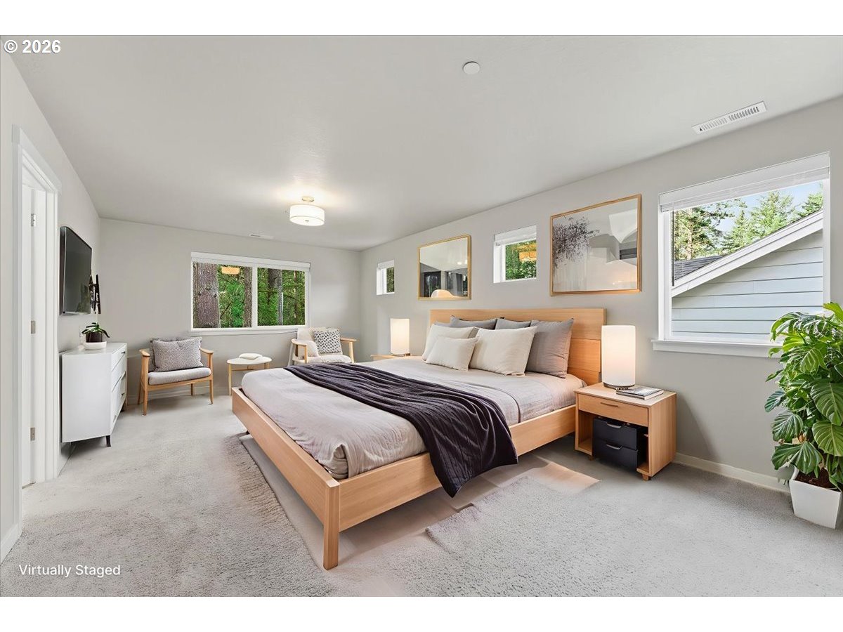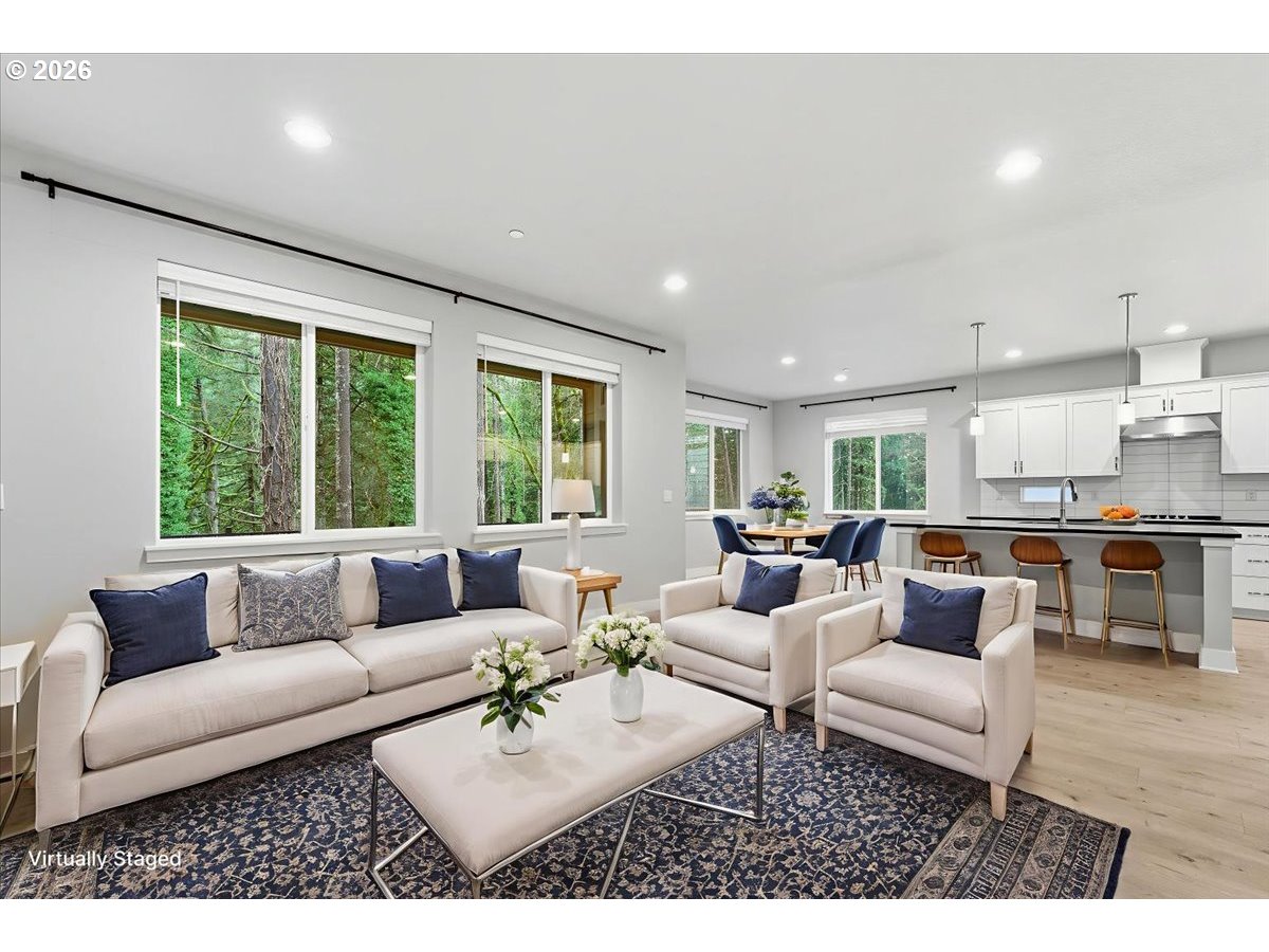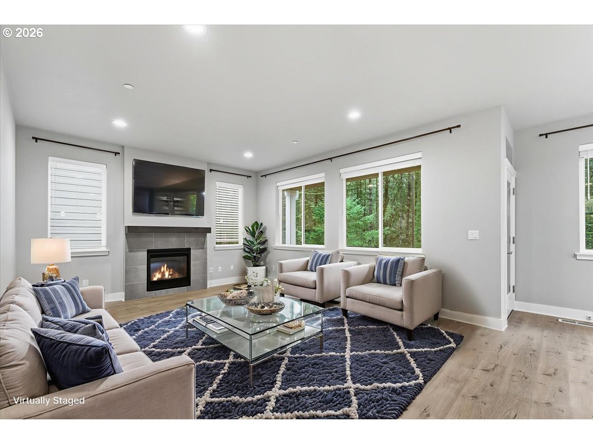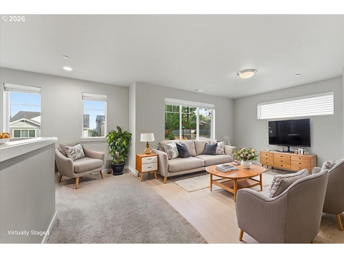 Enjoy easy, low-maintenance living in this beautifully designed 2022 four-bedroom home tucked against a private tree’d green-space.This move-in ready home offers an easy transition into homeownership with thoughtful upgrades, modern finishes, ideal for buyers looking for comfort, and convenience without the extra work.The open main level feels warm and inviting, connecting the great room, dining area, and gourmet kitchen complete with a large island, premium SS appliances, quartz countertops and dining nook that extends to the Trex deck for relaxed everyday living and entertaining. A main-level bedroom and full bath add flexibility and everyday convenience. Upstairs offers a versatile bonus space, a spacious primary suite with walk-in closet and spa-inspired bath, two additional bedrooms, and laundry with LG washer/dryer included. Custom closet built-ins, garage storage racks, and an EV charging-ready garage add even more function. All just minutes from shopping, dining, parks, Nike, Intel, and everyday essentials.