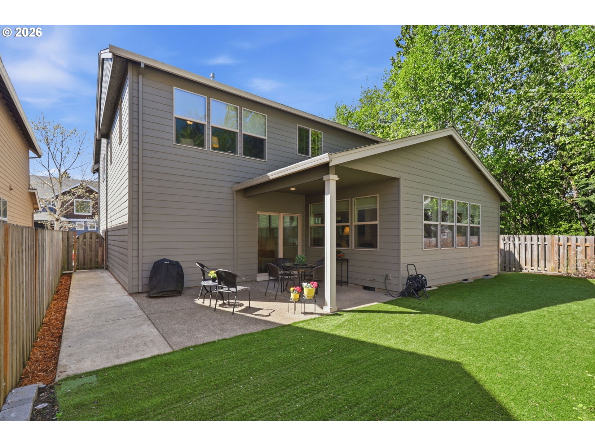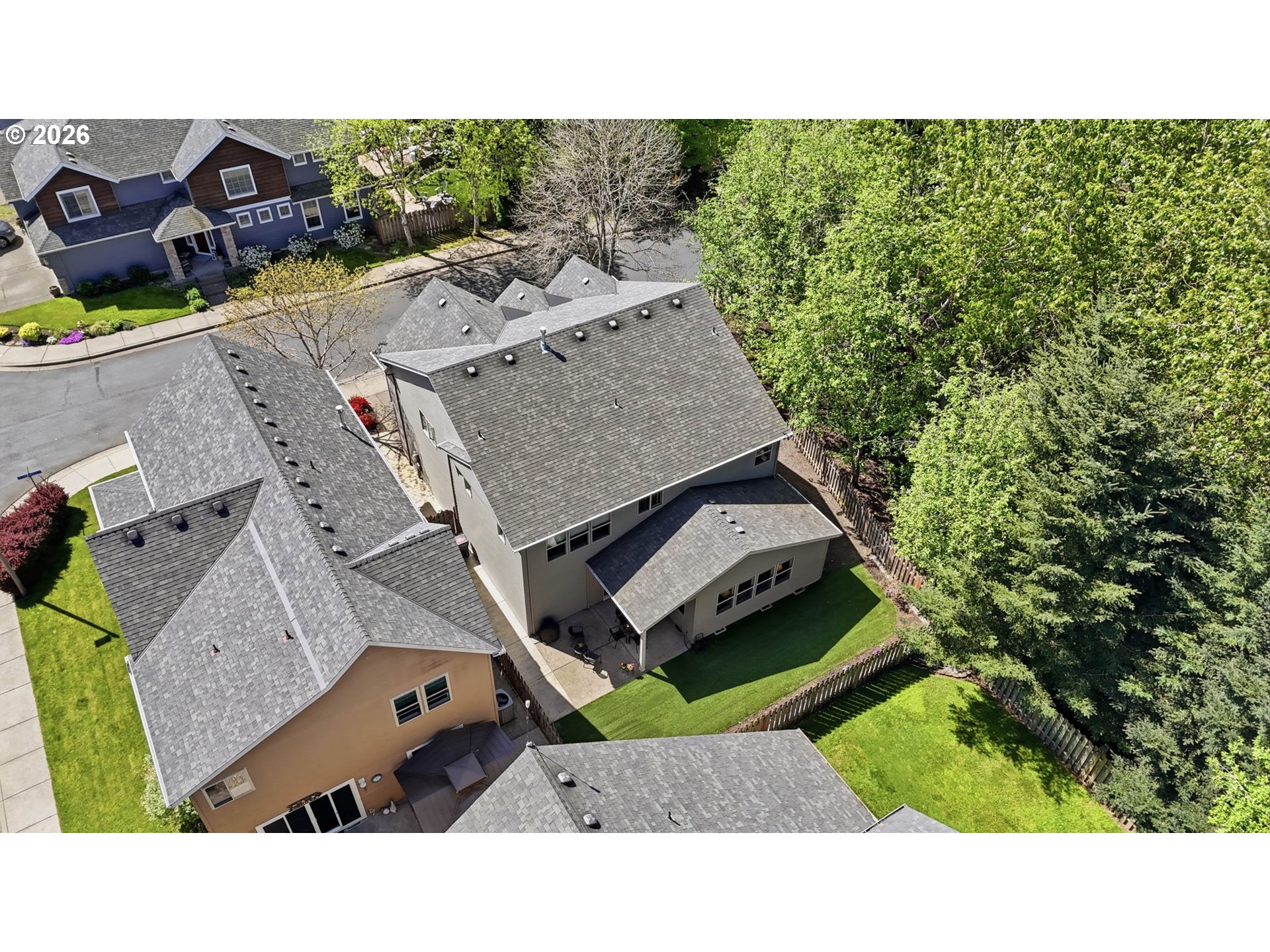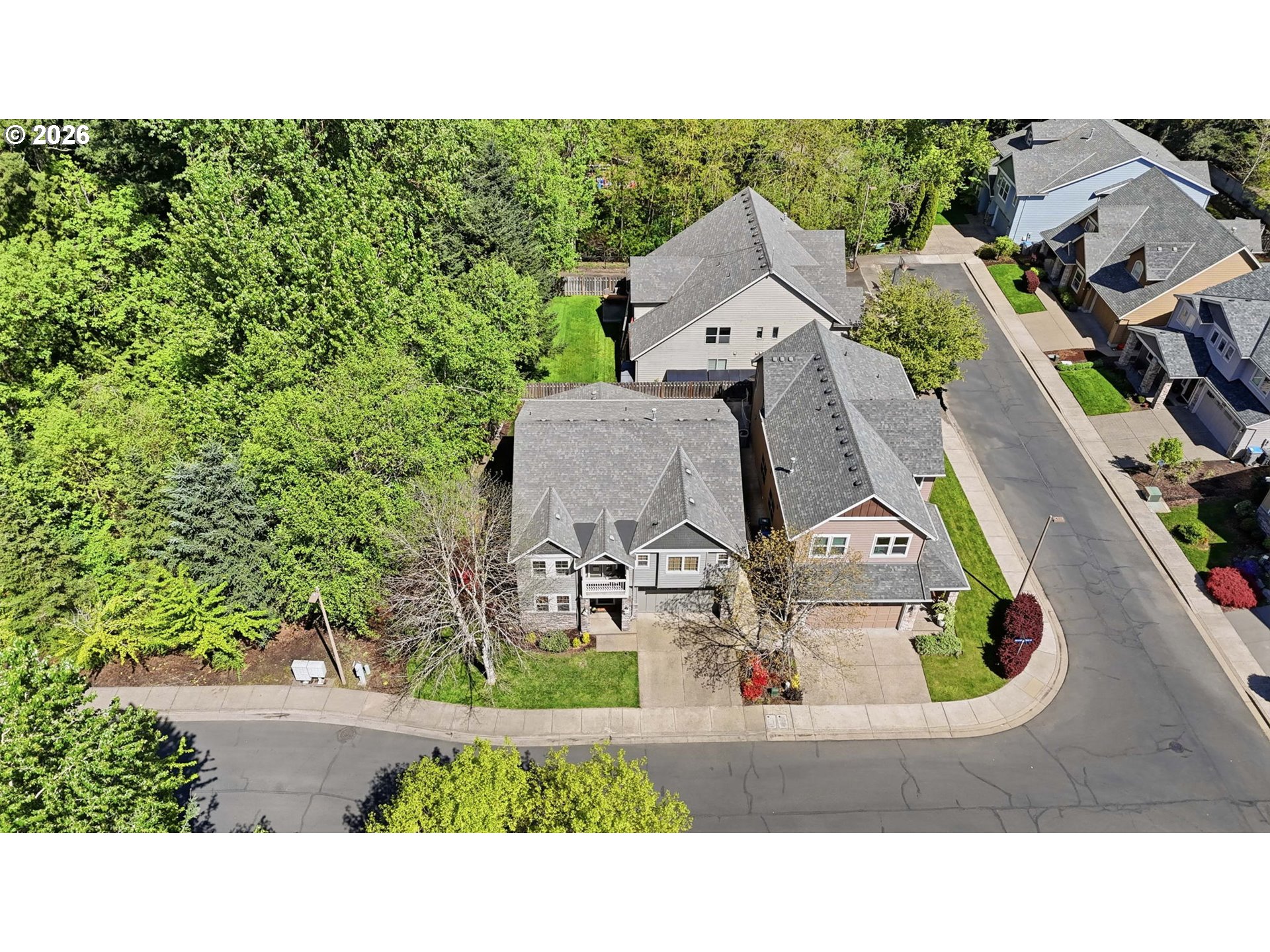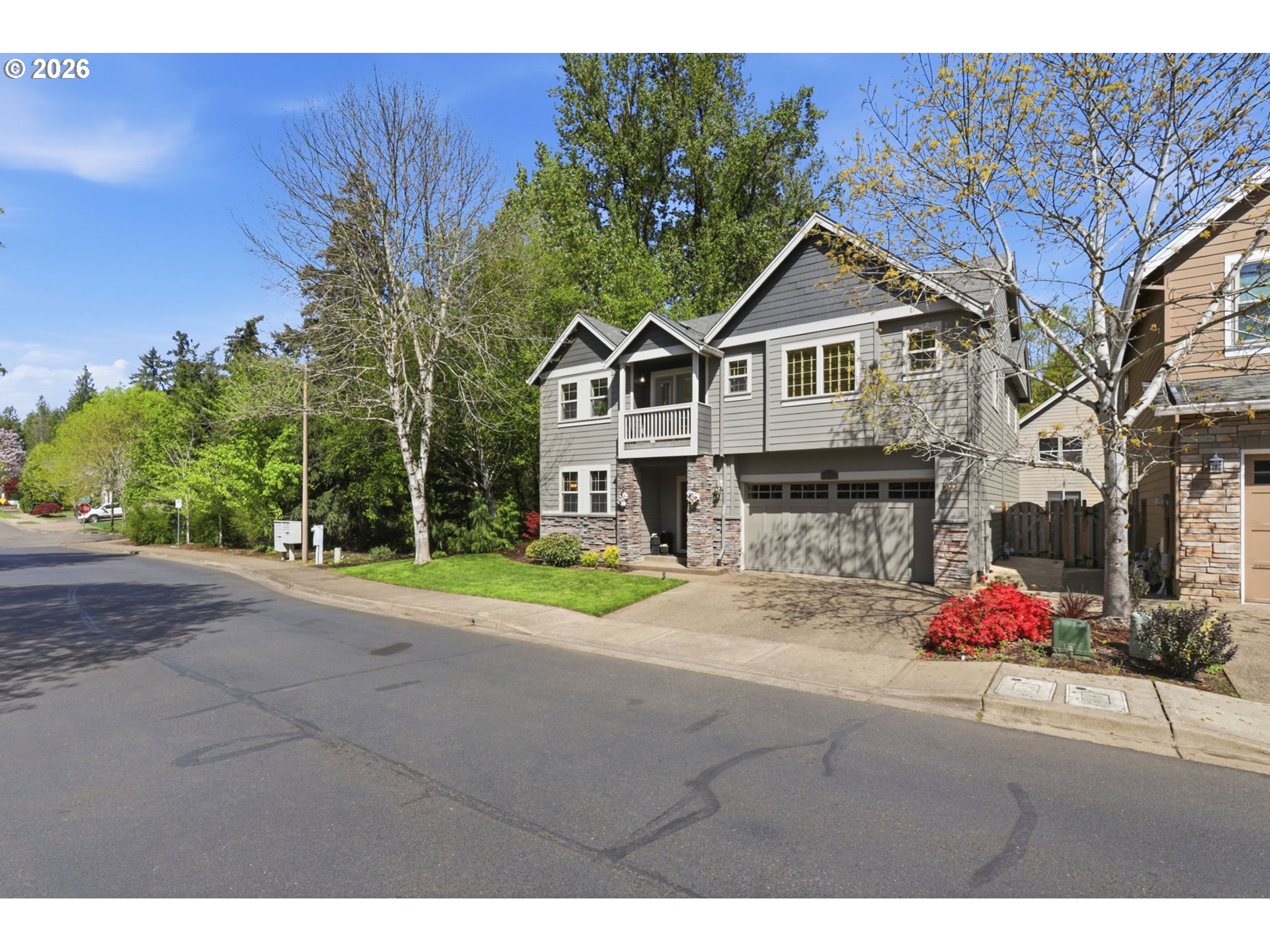 Beautifully maintained and showcasing true pride of ownership, this exceptional corner-lot home sits adjacent to greenspace on a private dead-end street in one of Tigard’s most desirable neighborhoods. Ideally located within walking distance to schools and just minutes from Cook Park, Bridgeport Village, and convenient highway access. Inside, you’ll find newer carpet and paint throughout, along with a spacious open kitchen designed for entertaining. Features include new quartz countertops, stainless steel appliances, a large island, and a pantry. Additional highlights include hardwood floors, a welcoming living room with built-ins, a fireplace with tile surround, and wood-wrapped windows. The formal dining room offers a box-beam ceiling and peaceful views of the adjacent greenspace. Upstairs, French doors open to a balcony, and a generous loft with vaulted ceilings provides additional living space with greenspace views. The upper level also includes a laundry room with cabinets and a sink, a hall bathroom with dual sinks, tile counters and floors. The expansive primary suite features vaulted ceilings, a spa-like bathroom with dual sinks, a soaking tub, a walk-in shower with tile surround, and a large walk-in closet with multiple windows.Outside, a slider off the nook leads to a large covered back patio and low-maintenance turf grass. Stay cool and comfortable all summer long with the central air conditioning system. A spacious 3-car tandem garage offers excellent flexibility for parking, a workshop, or home gym space.