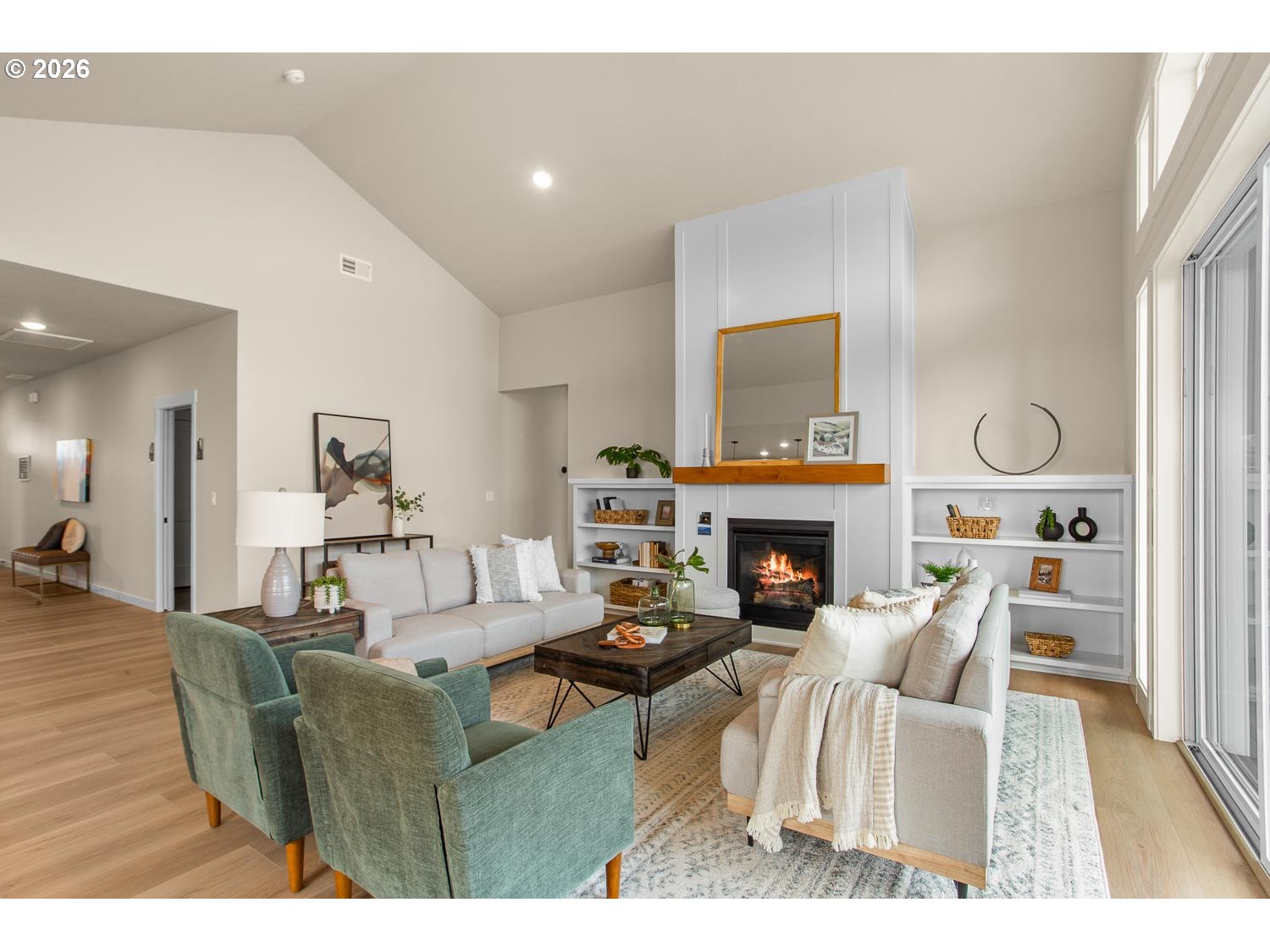 (503) 893-8874This beautifully designed farmhouse-style home offers an expansive and comfortable living space. The gourmet kitchen features mission-style shaker cabinets in a warm ginger stain, sleek quartz slab countertops, and undermount sinks in both the kitchen and bathrooms. Stainless-steel Whirlpool appliances complete the space, including a 5-burner gas cooktop with hood vent, built-in double ovens, a slim built-in microwave, and a stainless-steel tub dishwasher. The open concept main level includes a generous dining area and a vaulted great room that flows seamlessly onto a 10' x 18' vaulted covered deck. A gas fireplace with custom built-ins adds charm and warmth. The main-floor primary suite boasts a spacious walk-in closet and a spa-inspired bathroom with a garden tub and an oversized fully tiled shower with bench. There are two additional bedrooms and a full bath on the main-floor and two bedrooms, full bath, and a large recreation room located on the lower level. Central A/C, and a tankless water heater. Fully landscaped and fenced with a gate, this home is Earth Advantage Certified for efficiency and sustainability.