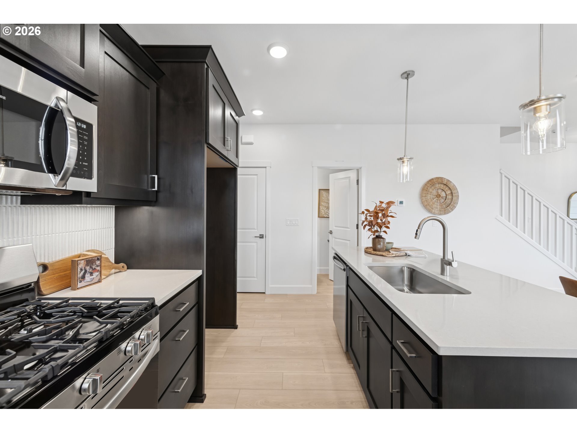 Dishwasher, Disposal, GasAppliances, Island, Microwave, Pantry, PlumbedForIceMaker, Quartz, StainlessSteelAp