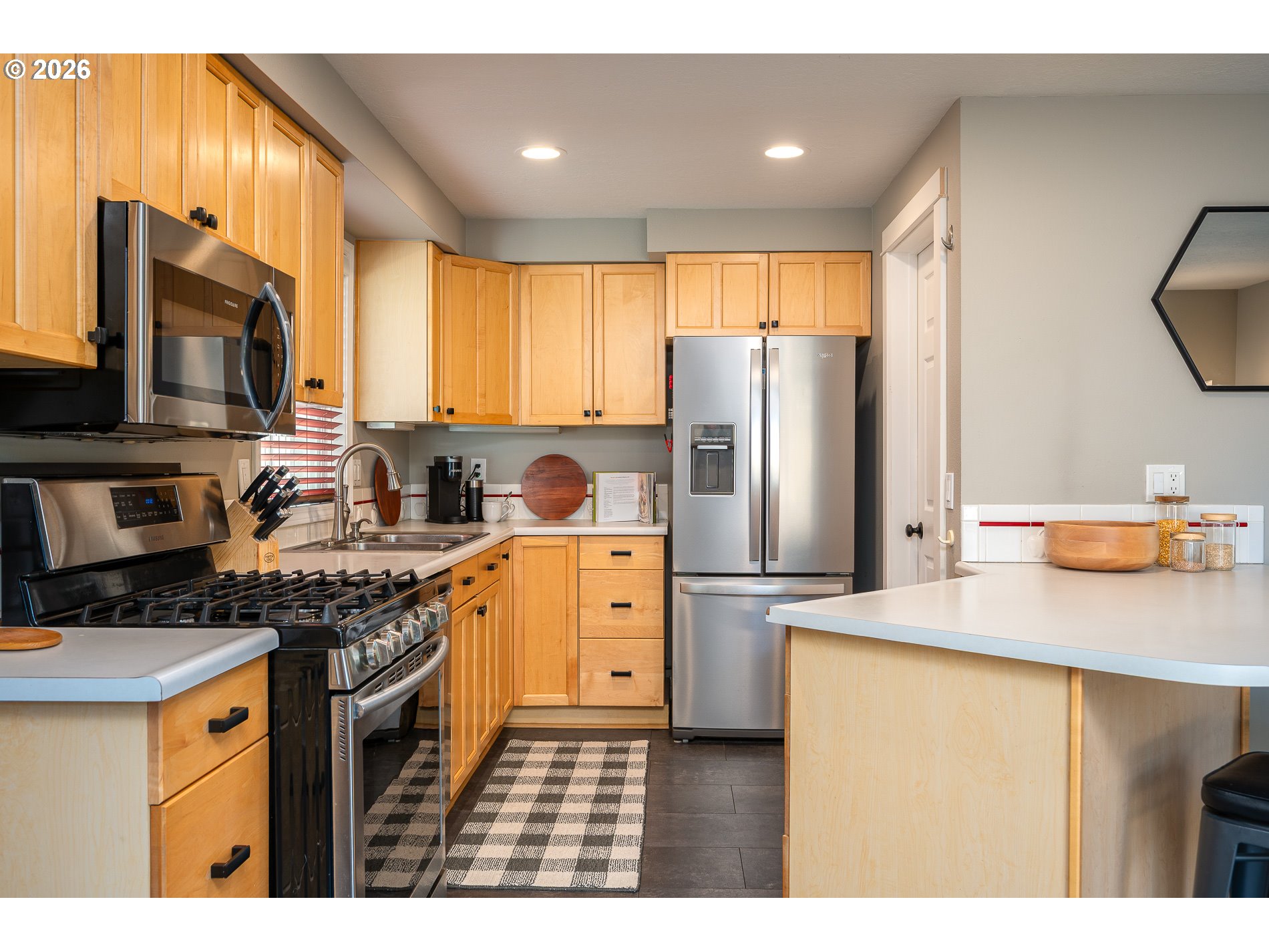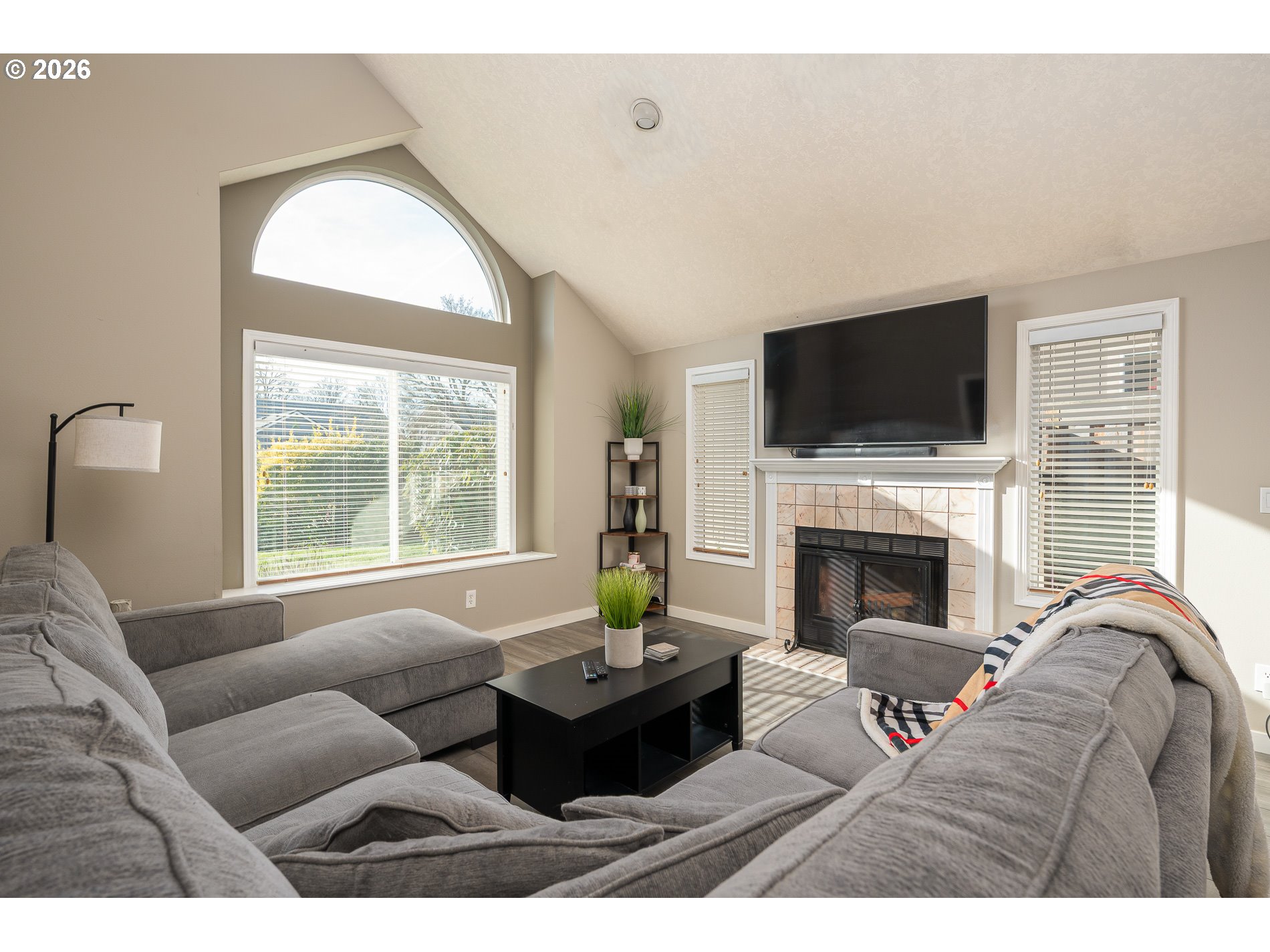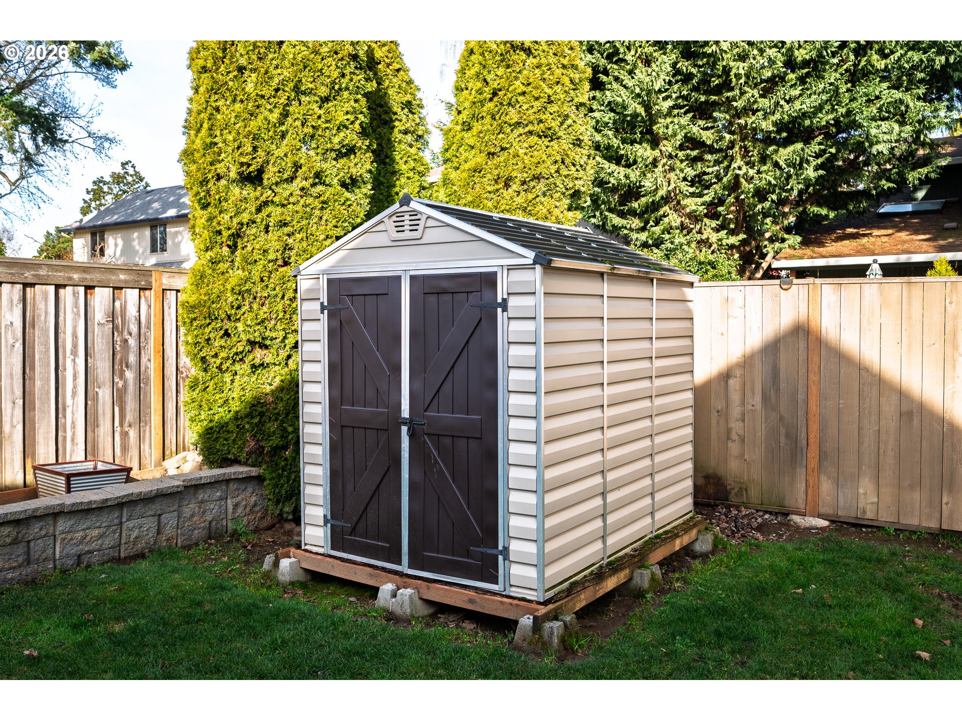 OPEN HOUSE 1-3pm Sat & Sun - Welcome to this warm and inviting home, thoughtfully designed for comfort and everyday ease. Enter a light-filled main level with soaring ceilings and an open floor-plan. The spacious living room offers the perfect setting for hosting game nights by the fire, while the expansive 500-square-foot backyard patio sets the stage for summer BBQs and outdoor gatherings. All the following approx 6 years old: Windows, Siding, Roof, Furnace/AC, Water Heater, Window blinds, and backyard Shed. The main level features LVT/LVP flooring, a stylish kitchen with a gas range and stainless steel appliances, eating bar, and a cozy sitting area complete with a convenient wet bar. Updated baseboards & casing around all doors, a chic half bath, and easy access to the laundry and garage round out this level. Upstairs: a generous landing provides flexible space for work, play, or relaxation. The private primary suite includes a WI closet and an en-suite bath with a dedicated shower and loo. Natural wood floors in the bathrooms bring a touch of organic luxury to the design. This versatile backyard includes raised garden beds bordered by a low stone wall—perfect for veggies or flowers—plus a tidy tool shed tucked into the corner. A full irrigation system (managed by app!) keeps the yard lush with minimal upkeep, offering a truly low-maintenance outdoor retreat. All of this is set within a quiet cul-de-sac just blocks from Tigard High School, offering both privacy and convenience. Enjoy quick access to major commuter routes, with popular dining, shopping, and outdoor recreation close by at Bridgeport Village and Cook Park.