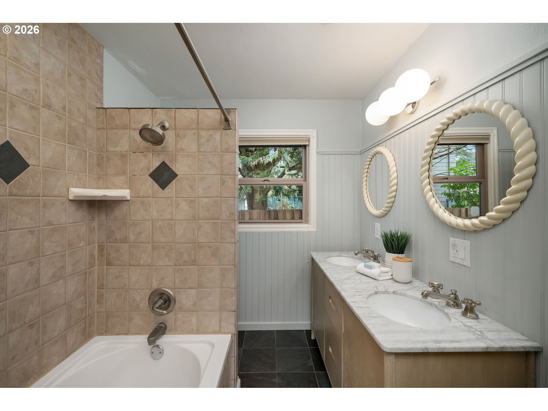 Classic mid-century home in the desirable Raleigh Park neighborhood, offering the best of both worlds... a Portland address with Washington County taxes! Freshly refinished hardwood floors run throughout the main level, while the lower level features beautiful cork flooring and flexible space for a home office, gym, media room, or guest area.The kitchen has been updated with newer counters and appliances and connects comfortably to the main living spaces, making it easy to cook, gather, and relax. Behind the scenes, major mechanical upgrades include a new furnace and central A/C installed in 2025. Outside, the 1/3 acre lot opens up to inviting outdoor spaces and established gardens—perfect for relaxing, entertaining, or spending time outdoors.Life here means being part of one of the area’s most loved walking neighborhoods—featured in the Raleigh Park Garden Tour. Raleigh Park and Raleigh Park Elementary are just a short stroll away, with many additional parks and green spaces nearby. The location also offers easy access to both downtown Portland and the revitalized downtown Beaverton.