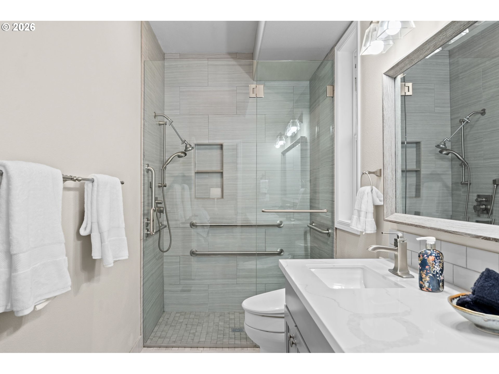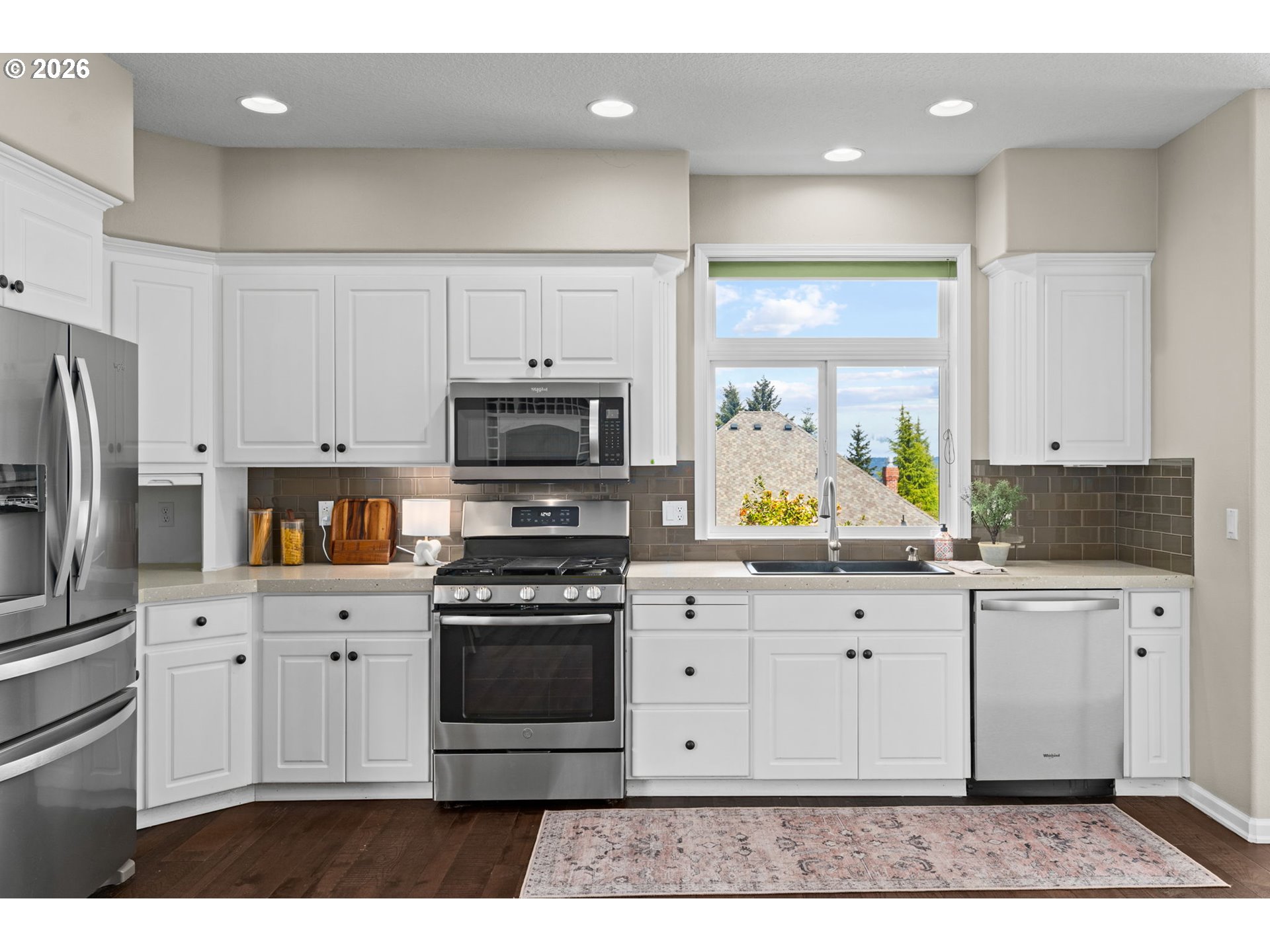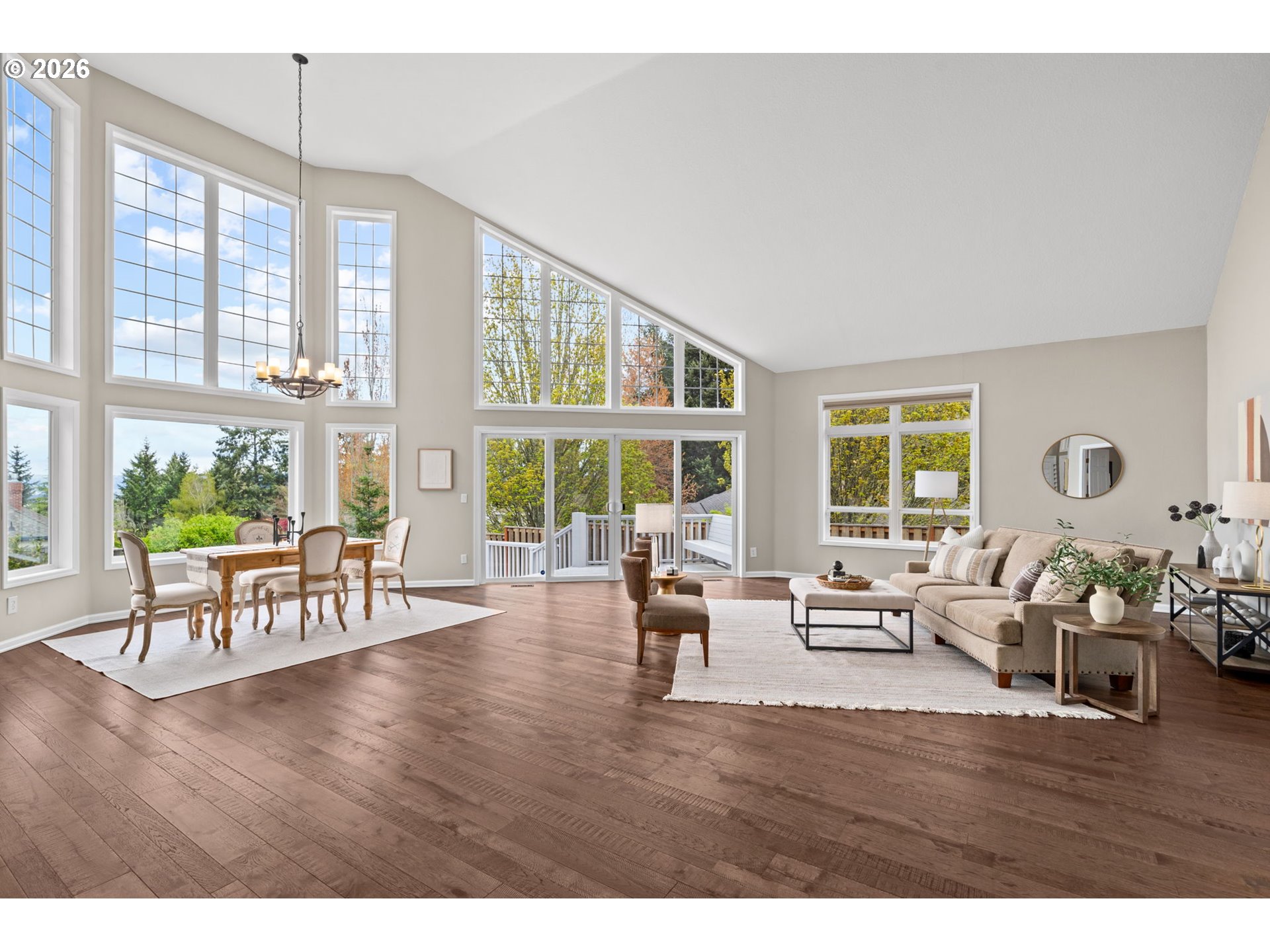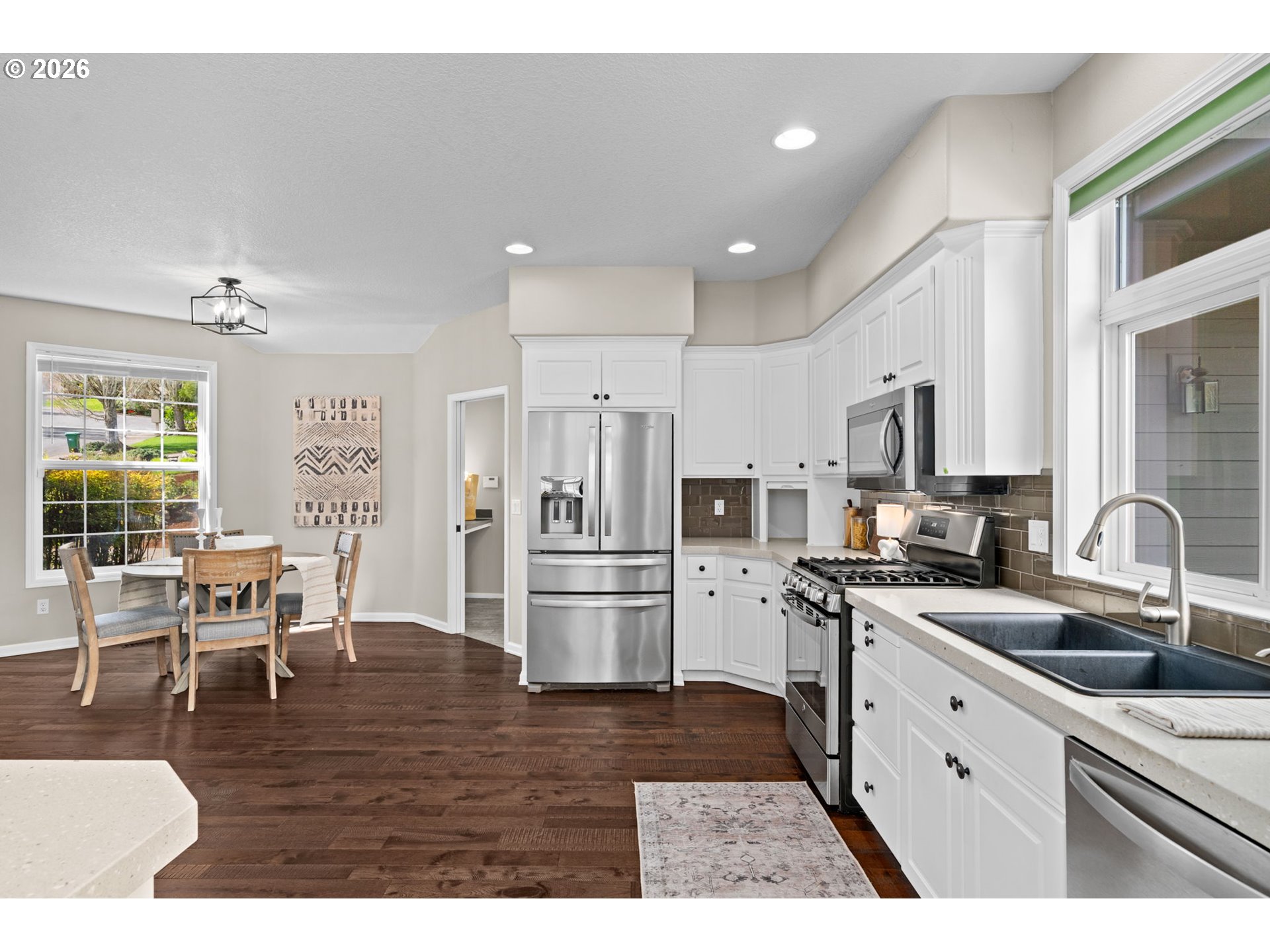 (503) 893-8874Simply put… A classic home with all the space on one level in a desirable hilltop location. Upon entry, you will find beautiful hardwood floors throughout the main area, the kitchen with an abundance of space, stainless steel appliances – two ovens, white cabinetry, and quartz countertops and an eat-in nook. Just off the kitchen a two story great room opens up with large windows that let in abundant natural light and frame peaceful northern views. The adjoining dining space and generous living area make it easy to host friendly gatherings or enjoy a quiet evening at home. The main primary bedroom is spacious and includes a large walk-in closet; the en suite bathroom features a double vanity, quartz countertops, and a curb-less shower. The two additional bedrooms share a full bathroom. The laundry room is sure to please, with ample cabinets, countertop space, and a built in iron, with a conveniently placed half bath nearby that has fresh fixtures and painted cabinets. Outside, a perfectly-sized, easy-care yard and a refinished deck overlook the serene northern view - ideal for morning coffee, weekend barbecues, or simply relaxing after a busy day. Noteworthy is the owned solar panels, whole home generator and spacious garage with a large temperature-controlled storage room. With its blend of classic charm, functional upgrades, and a location that’s close to Murrayhill shopping and Cooper Mountain Nature Park, this home provides a comfortable, move-in-ready setting and will having you dreaming of home.