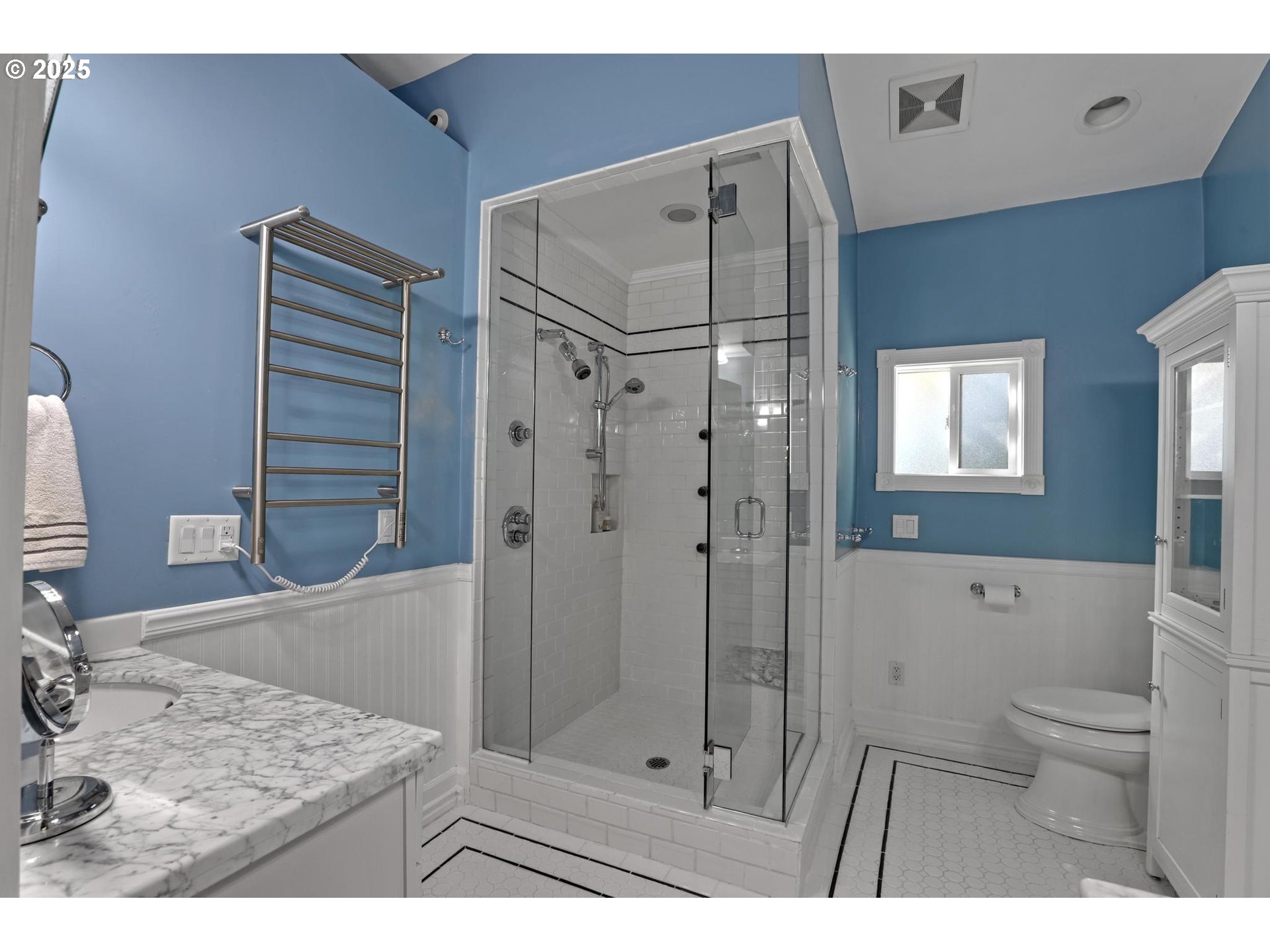 Raleigh Hills – Single-level living on a .29-acre corner lot with exceptional privacy and generous front and back yards. This 5-bedroom, 3.5-bath ranch blends timeless details with thoughtful updates throughout. Hardwood floors carry across the main living spaces, and the floorplan flows easily for both everyday living and entertaining. The kitchen opens to the family room and features granite countertops, stainless steel appliances, a range hood, and abundant natural light. The primary suite is a true retreat with a private deck, a showcase-style closet, and a spa-like bath with heated tile floors, walk-in shower, and dual vanities. One of the additional bedrooms includes its own attached half bath, and every bathroom in the home has been fully updated with high-end, classic finishes designed to stand the test of time. Secondary bedrooms are generously sized, offering flexibility for family, guests, or work from home. The living room adds warmth with corner windows, a gas fireplace, and built-in bookcases. The fully fenced backyard is designed for outdoor living with a paved patio, pergola, shed, and a charming playhouse. A newly extended driveway adds convenience with extra parking. Set in the desirable Raleigh Hills neighborhood, this property offers quick access to Raleigh Park Swim Center, Golf Course, OES, Jesuit, shopping, restaurants, and Raleigh Wetlands Natural Area. This home brings together privacy, space, and location—schedule your tour and see it for yourself.