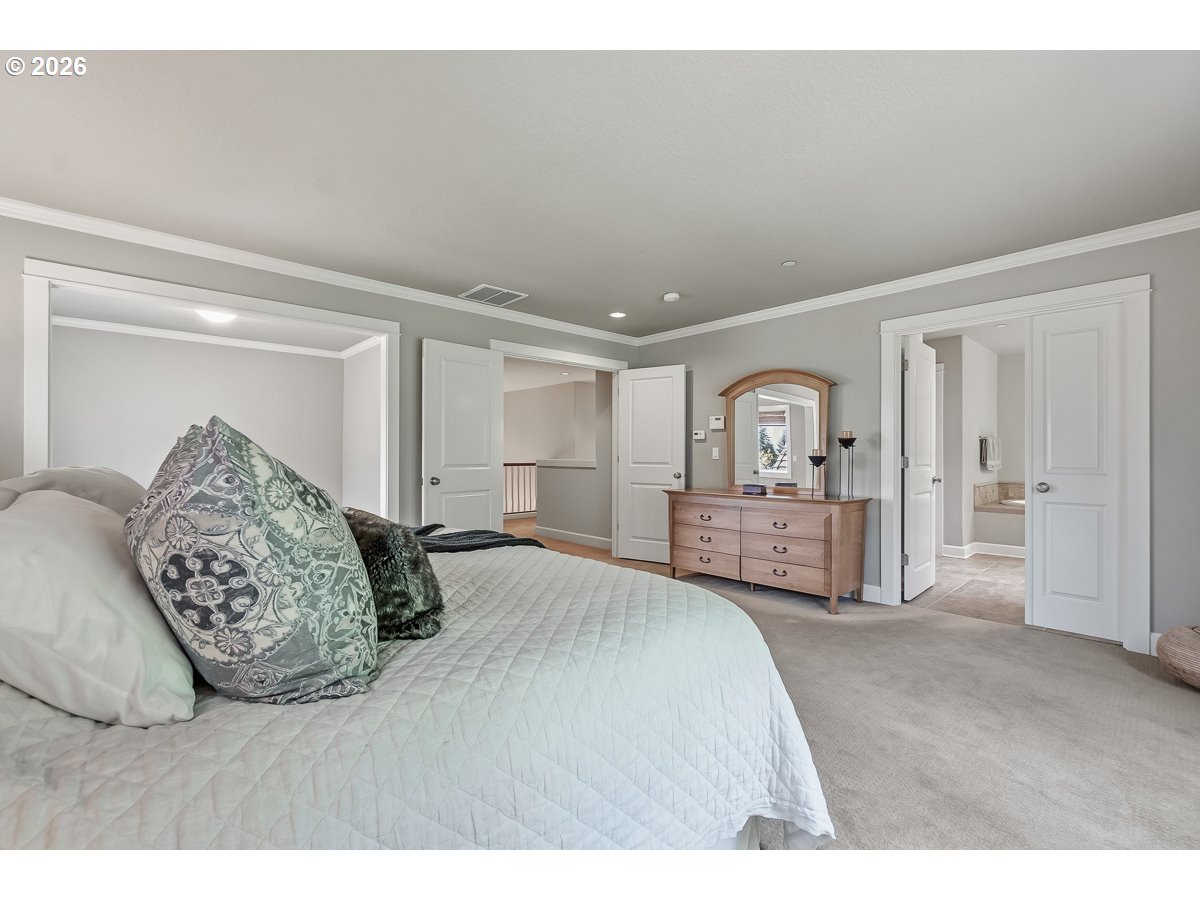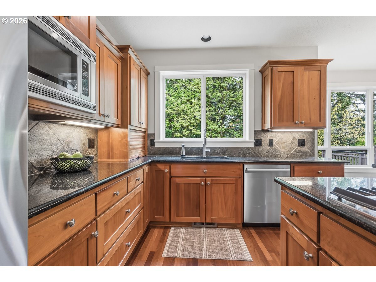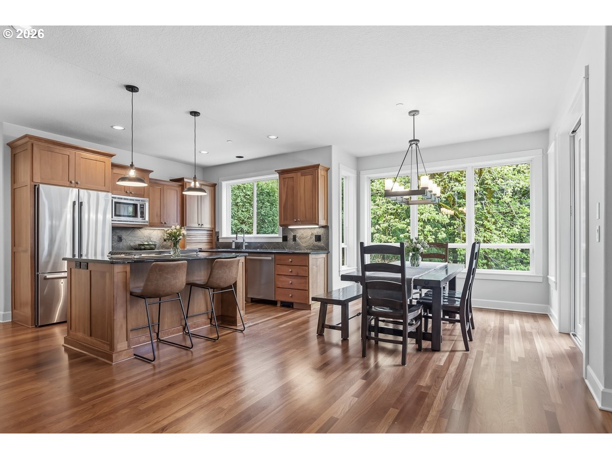 OPEN HOUSE SUNDAY 4/26 12-2PM! Experience elevated living in the highly desirable Renaissance Pointe community. This beautifully appointed five bedroom, three and a half bath home seamlessly blends timeless elegance with modern comfort, all set within a peaceful and private setting. The gourmet kitchen is designed to impress, featuring granite slab countertops, a new gas cooktop set in a spacious island with an eating bar, and a light-filled dining nook, mini dry bar, perfect for everyday living and effortless entertaining. Rich hardwood floors extend throughout the main level, adding warmth and sophistication. Upstairs you can unwind in the luxurious primary suite, complete with heated tile floors, a generous walk-in closet, and serene views of protected forested greenspace, your own private retreat. The upper level also features three additional bedrooms, one with its own private balcony. The full daylight basement offers incredible flexibility with high ceilings and ample space for a media room with built-ins, gas fireplace, guest quarters, or an entertainment area. It also includes an additional bedroom, full bathroom, and abundant storage. Step outside to your own outdoor oasis, featuring a custom patio, beautifully designed walking paths, and lush landscaping that creates exceptional privacy. A separate covered patio and garden beds add to the charm and functionality of this inviting space. Residents of Renaissance Pointe enjoy access to community amenities, including a swimming pool, easy walk to Cooper Mountain Nature Park, enhancing the exceptional lifestyle this home offers. This is refined living at its finest where comfort, style, and nature come together.