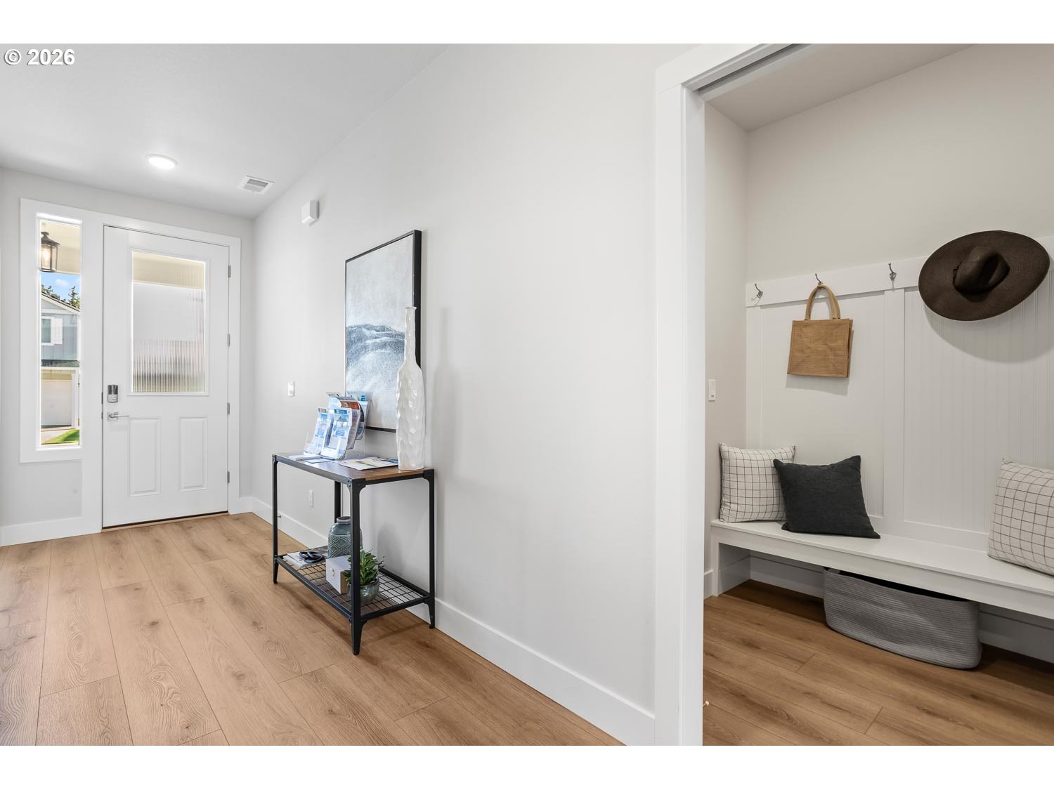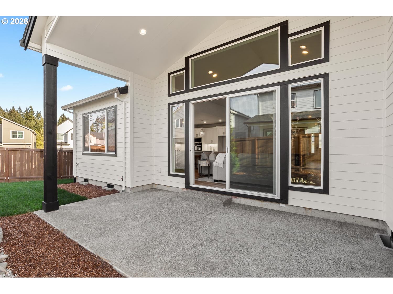 Experience refined single-level living in this Earth Advantage Certified home. The open-concept design is defined by high-end finishes, including drop-bevel alder stained cabinetry, slab quartz countertops, and undermount sinks throughout the kitchen and bathrooms. The great room is a spectacular centerpiece, boasting a vaulted ceiling with built-in shelves flanking a floating box beam mantel above a cozy gas fireplace. The gourmet kitchen features Whirlpool stainless steel appliances, including a 5-burner gas cooktop, double wall ovens, wall microwave, stainless steel tub dishwasher and chimney hoodvent.Relax in the spacious primary suite, which offers a large walk-in closet and an elegant adjoining bath with a tiled shower, a soaking tub, and a dual-sink vanity. The backyard is fully landscaped, equipped with a timed sprinkler system, with a gas line ready for your future barbecue, and is fully fenced with a gate. Builder incentive available!