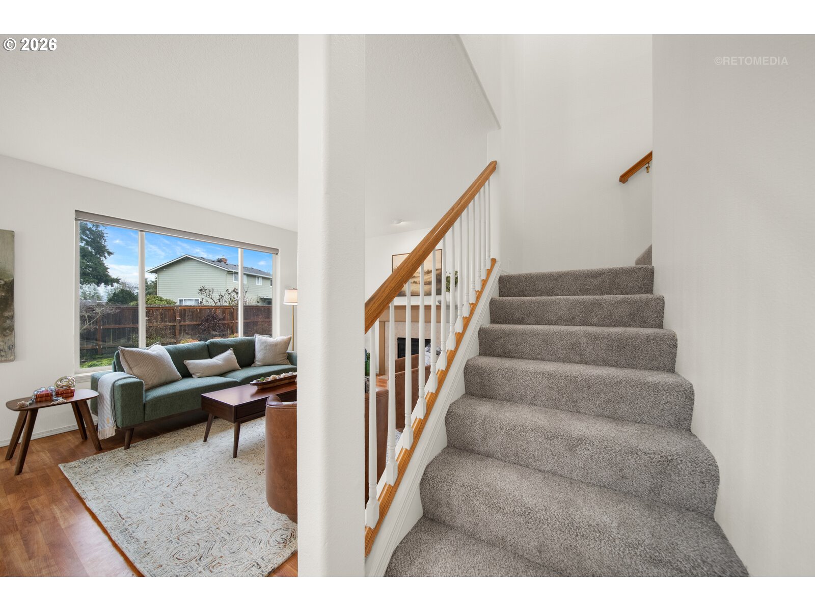 Welcome to this beautifully maintained home tucked away on a quiet dead-end street in walkable downtown Hillsboro, offering the perfect blend of comfort, space, and convenience. This spacious residence features 4 generous bedrooms and 2.5 bathrooms with a well-designed layout ideal for modern living. The huge primary suite provides a relaxing retreat with a walk-in closet, while the primary bathroom features new LVT flooring, offering a fresh touch. A convenient upstairs laundry room adds everyday ease. The main level impresses with high ceilings and laminate flooring throughout both the upstairs and downstairs, complemented by fresh, bright interior paint that enhances the open and airy feel. The living room with a gas fireplace creates a warm focal point, and the spacious kitchen stands out with quartz slab countertops, stainless steel appliances, and brand-new gas range, built-in microwave, and dishwasher—perfect for cooking and entertaining. Enjoy seamless indoor-outdoor living with a slider from the dining room to a spacious, landscaped backyard with patio, ideal for gatherings or quiet evenings. Additional updates include new carpet on the stairs and in closets and a new exterior garage door and opener. New roof & A/C in 2023. Freshly painted oversized two-car garage with tons of space for extra storage or work area plus huge RV parking. [Home Energy Score = 5. HES Report at https://rpt.greenbuildingregistry.com/hes/OR10243620]