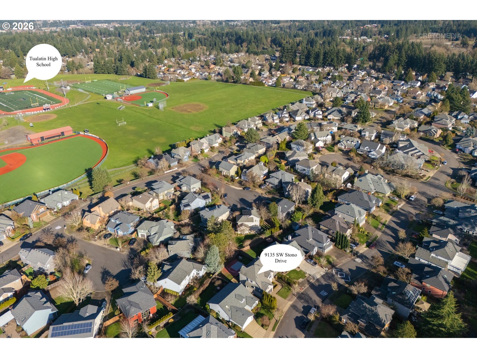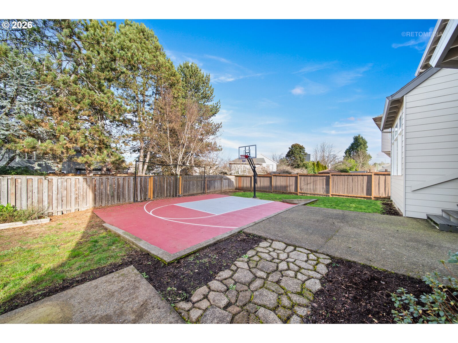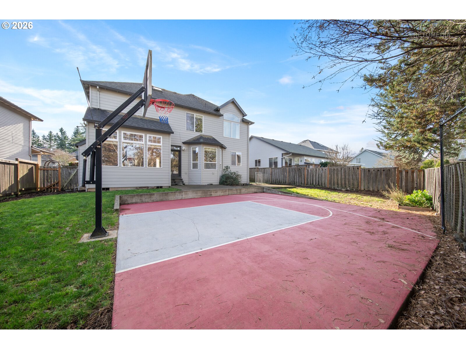 Ideal Layout | Walkable to Tualatin High School | Backyard Sports Court!----This well-designed home offers an ideal floor plan w/ 4 bedrooms + a main-level den, perfectly suited for today’s lifestyles. Located in a highly desirable neighborhood, the home offers a great opportunity for cosmetic updates while checking all the boxes for space, function, and location — ready for you to make it your own.----The main level welcomes you w/ high ceilings & an open, flowing layout. The large kitchen features stainless steel appliances, a center island, ample storage, & opens seamlessly to the kitchen nook & family room — ideal for gatherings and everyday living.The family room showcases a gas fireplace & wall of windows overlooking the backyard, filling the space w/ natural light & creating a warm, inviting atmosphere. A dedicated den w/ French doors & classic wainscoting provides a perfect home office or flex space.----Upstairs, the spacious primary suite offers a walk-in closet & convenient access to additional storage above the garage. The primary bath includes a soaking tub, double vanity, & walk-in shower. Three additional bedrooms complete the upper level, offering flexibility for guests, work-from-home needs, or growing households.A rare backyard sports court provides hours of recreation and fun.Amazing location — walkable to Tualatin High School w/ close proximity to shopping, dining, & freeway access. Kitchen fridge & washer/dryer included.