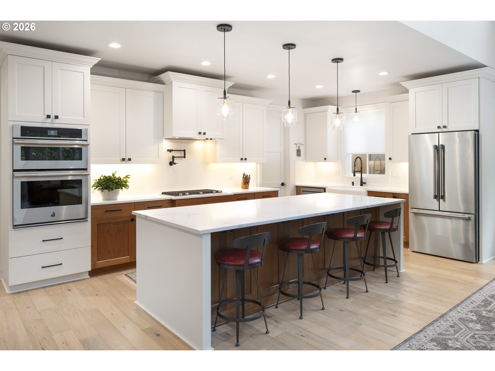 (503) 893-8874Designed by an award-winning Street of Dreams builder and architect, this special property pairs architectural distinction with a layout that truly works for everyday life. Set against a backdrop of protected green space, this home offers a rare combination of main-level primary living, soaring ceilings, and a private natural setting all just minutes from Washington Square and Portland’s major corridors.From the moment you enter, the quality is apparent. Contrasting tile and engineered hardwood floors lead into a light-filled great room with 18-foot vaulted ceilings and a dramatic floor-to-ceiling fireplace, creating a space that feels open, grounded, and inviting. The great room is designed to comfortably accommodate both dining and seating, making it equally suited for everyday living and entertaining.The kitchen is a true centerpiece. It features a stainless JennAir appliance package, a Thermador Rise 36-inch French-door refrigerator, wine fridge, and a large quartz island with cabinets on both sides a rare and valuable detail that dramatically increases storage and usability. A pot filler at the cooktop, generous pantry, and abundant cabinetry make this kitchen as functional as it is refined.The primary suite on the main level, is positioned to capture views of the protected green space, with direct access to the covered patio. The ensuite bath overlooks the trees and includes a no-curb walk-in shower, soaking tub, Italian tile, quartz counters, and a large walk-in closet. The closet is even plumbed for a secondary washer/dryer, offering flexibility for future needs and long-term livability.The main floor den/office with closet, is ideal for work-from-home or guests, along with a mudroom off the garage with built-in cabinetry, keeping everyday life organized and efficient.Upstairs, the home continues to impress with three additional bedrooms, and large bonus room. Don't miss the opportunity to make this special home your own.