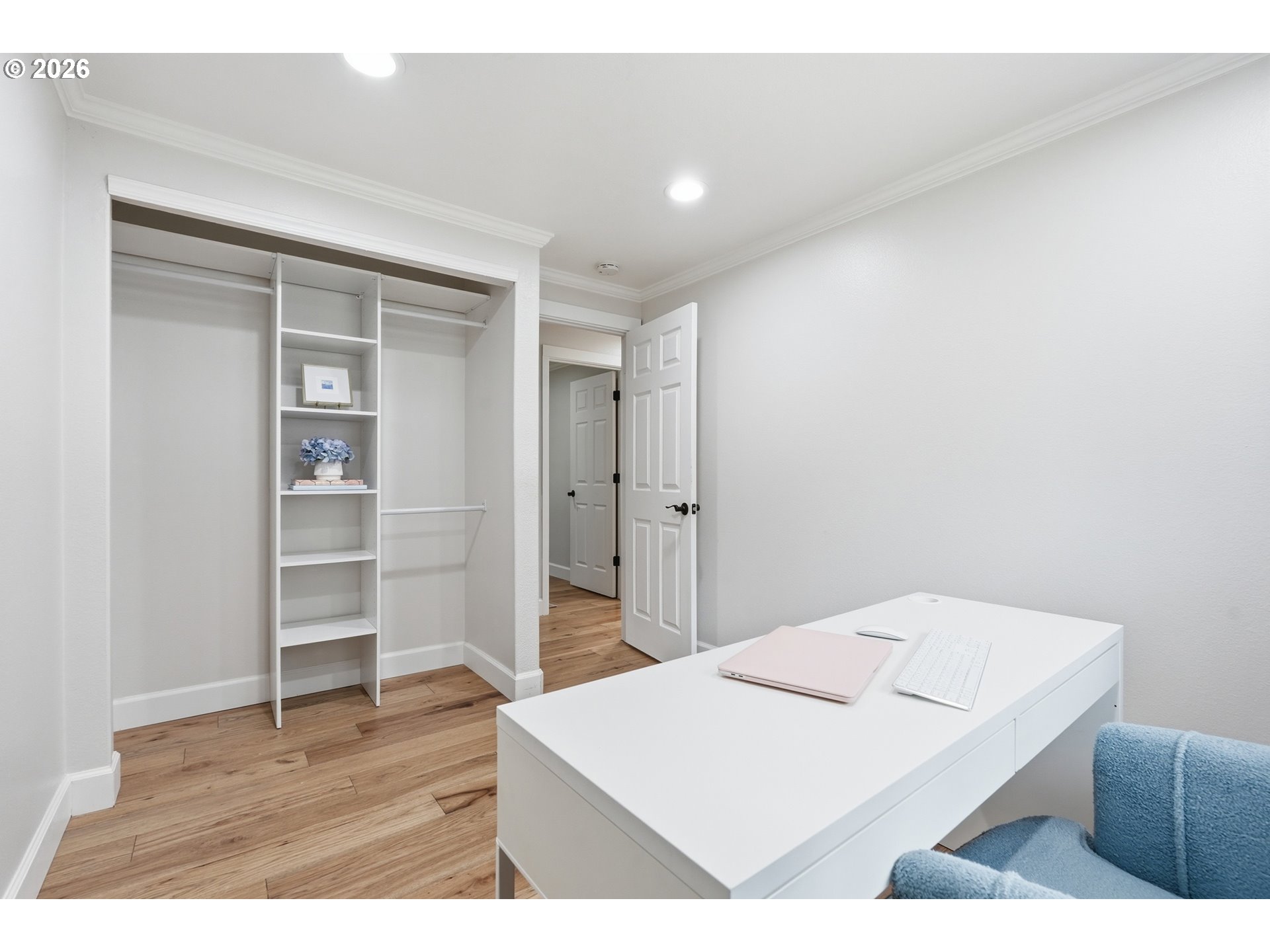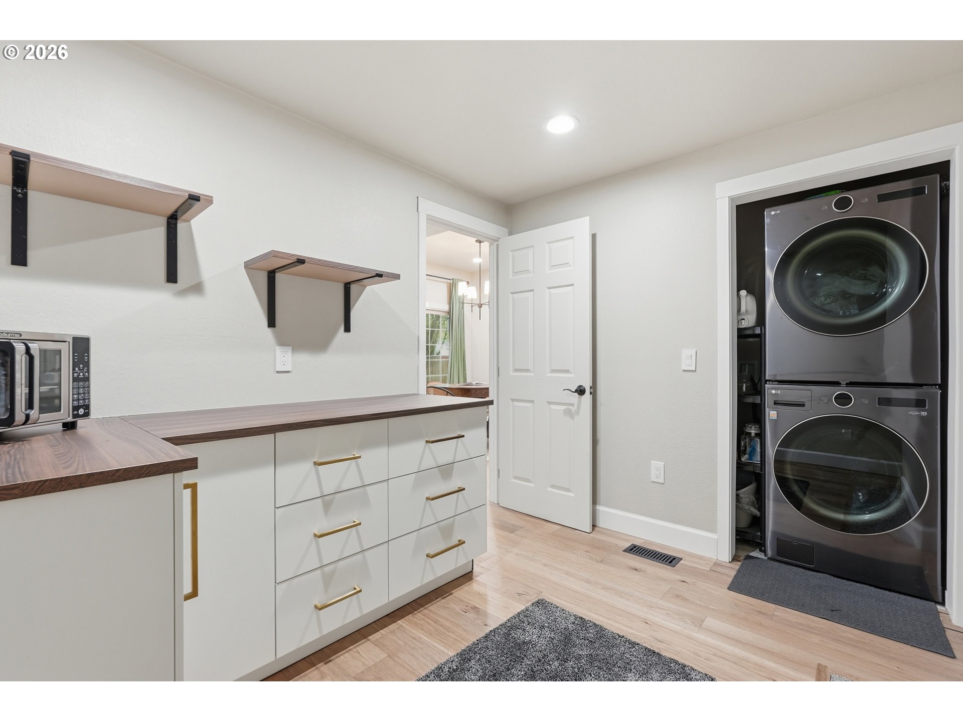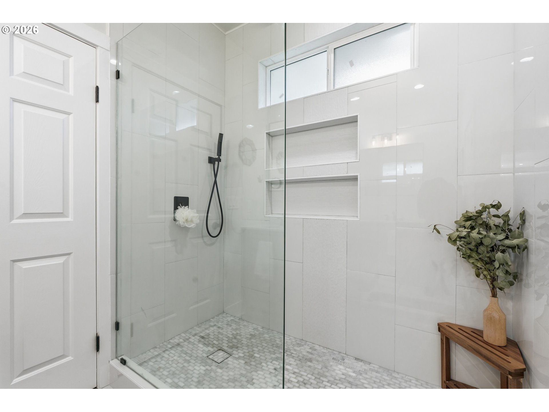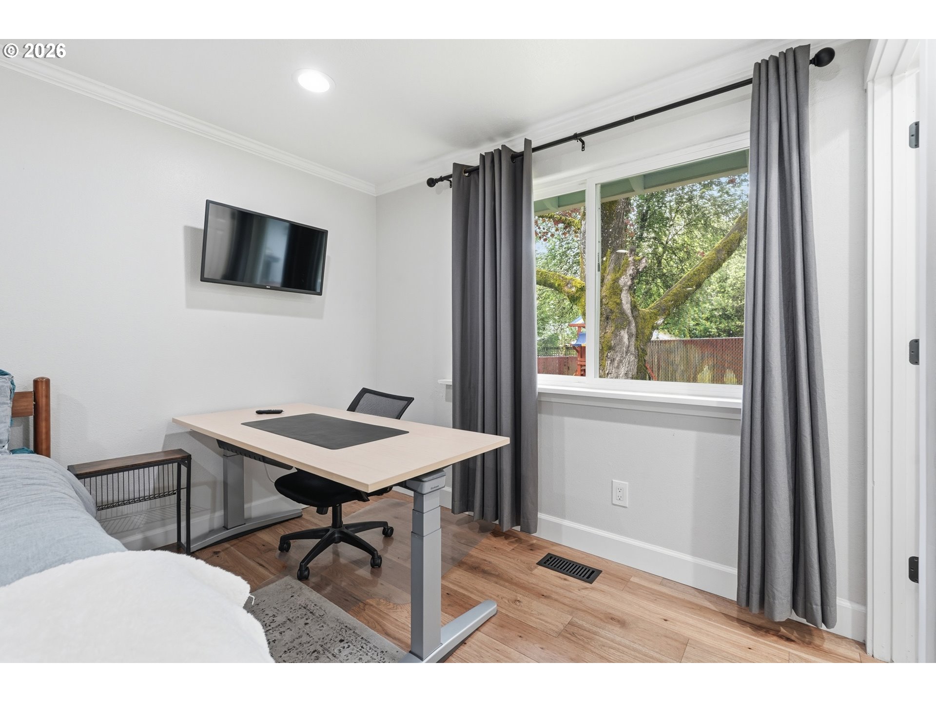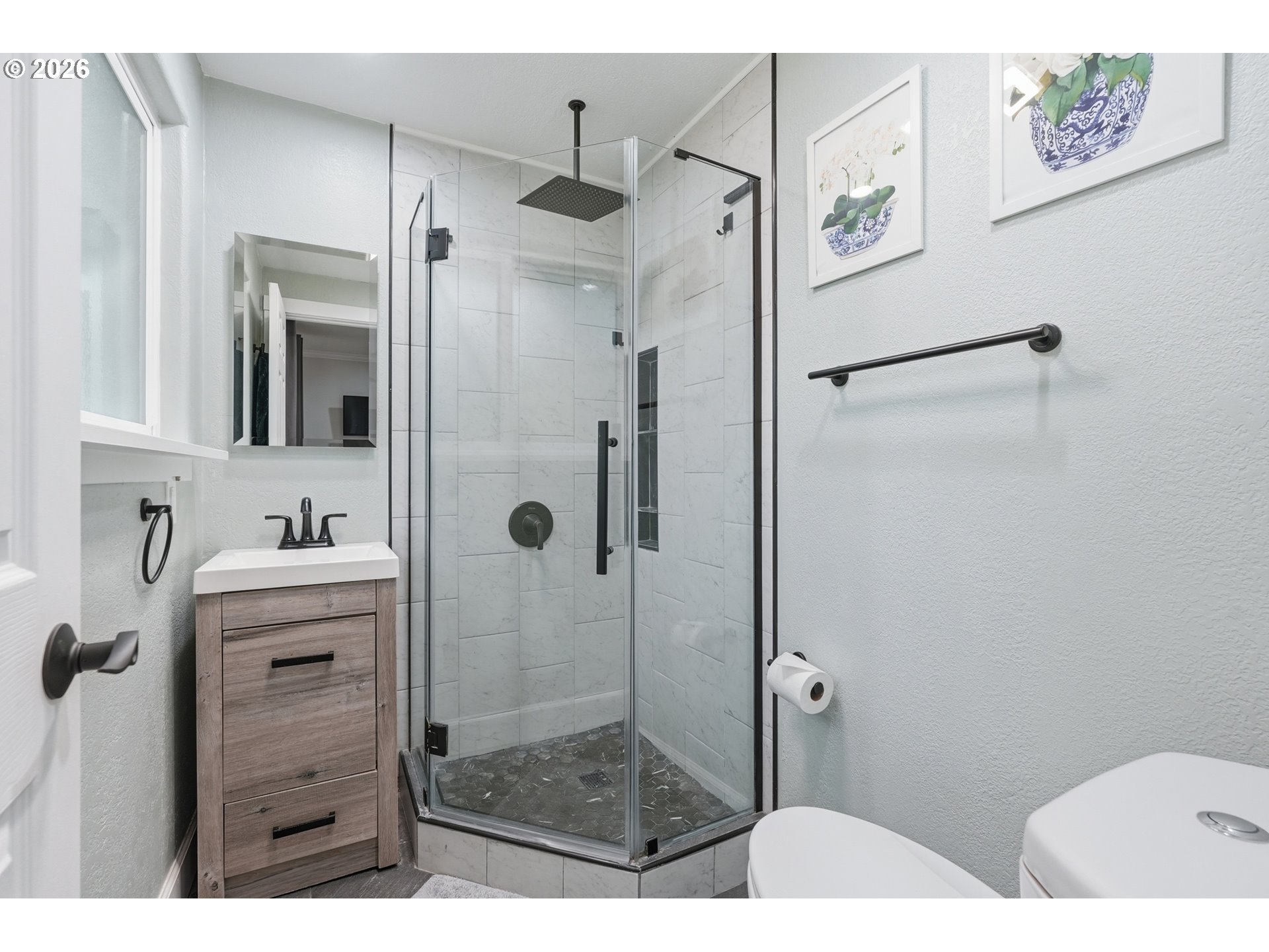 Beautifully renovated one-level ranch designed for easy living, featuring rare dual primary suites and seamless indoor-outdoor flow. High ceilings and engineered flooring throughout create a light-filled, open feel from the moment you step inside. At the center of the home, the spacious kitchen is designed to impress, with stainless steel appliances, quartz countertops, an expansive island, pantry, and soft-close cabinetry—perfectly suited for both everyday living and effortless entertaining. The open-concept living and dining areas connect naturally, with direct access to the backyard deck, creating an easy extension of your living space. With 3 full bathrooms and generously sized bedrooms, the layout offers flexibility for a variety of living situations. The two primary suites each feature their own ensuite bathrooms. The main primary includes a walk-in closet with built-in shelving and French doors that open directly to the back deck—ideal for quiet mornings or unwinding in the evening. Outside, the fully fenced and level backyard is thoughtfully designed for both relaxation and play. Enjoy a spacious deck for entertaining, raised garden beds, a play structure, and a storage shed—everything you need for functional, year-round outdoor living. Enjoy a prime Tualatin location just minutes from local shops, restaurants, and parks, with easy highway access for added convenience. Come see it for yourself!