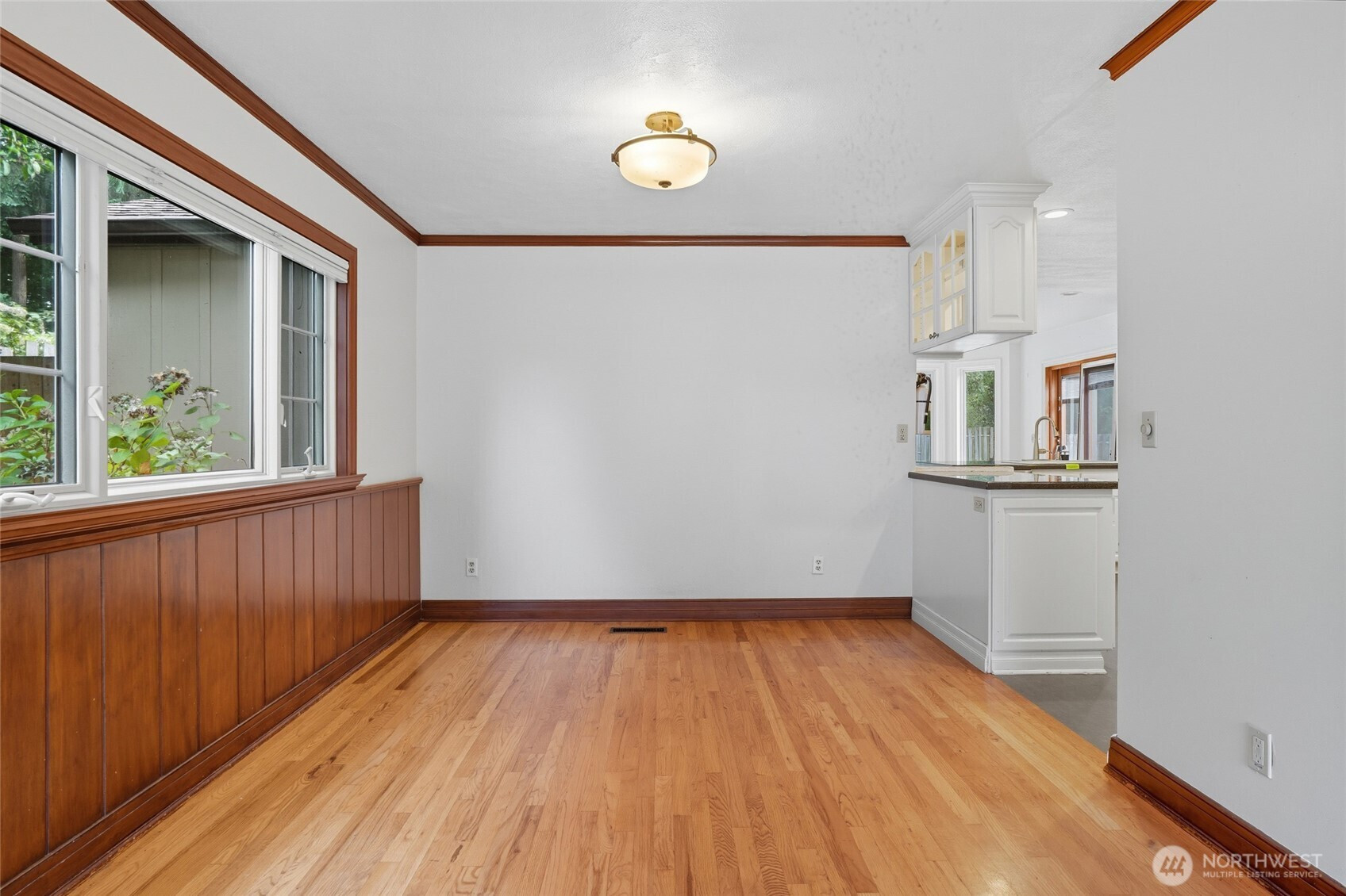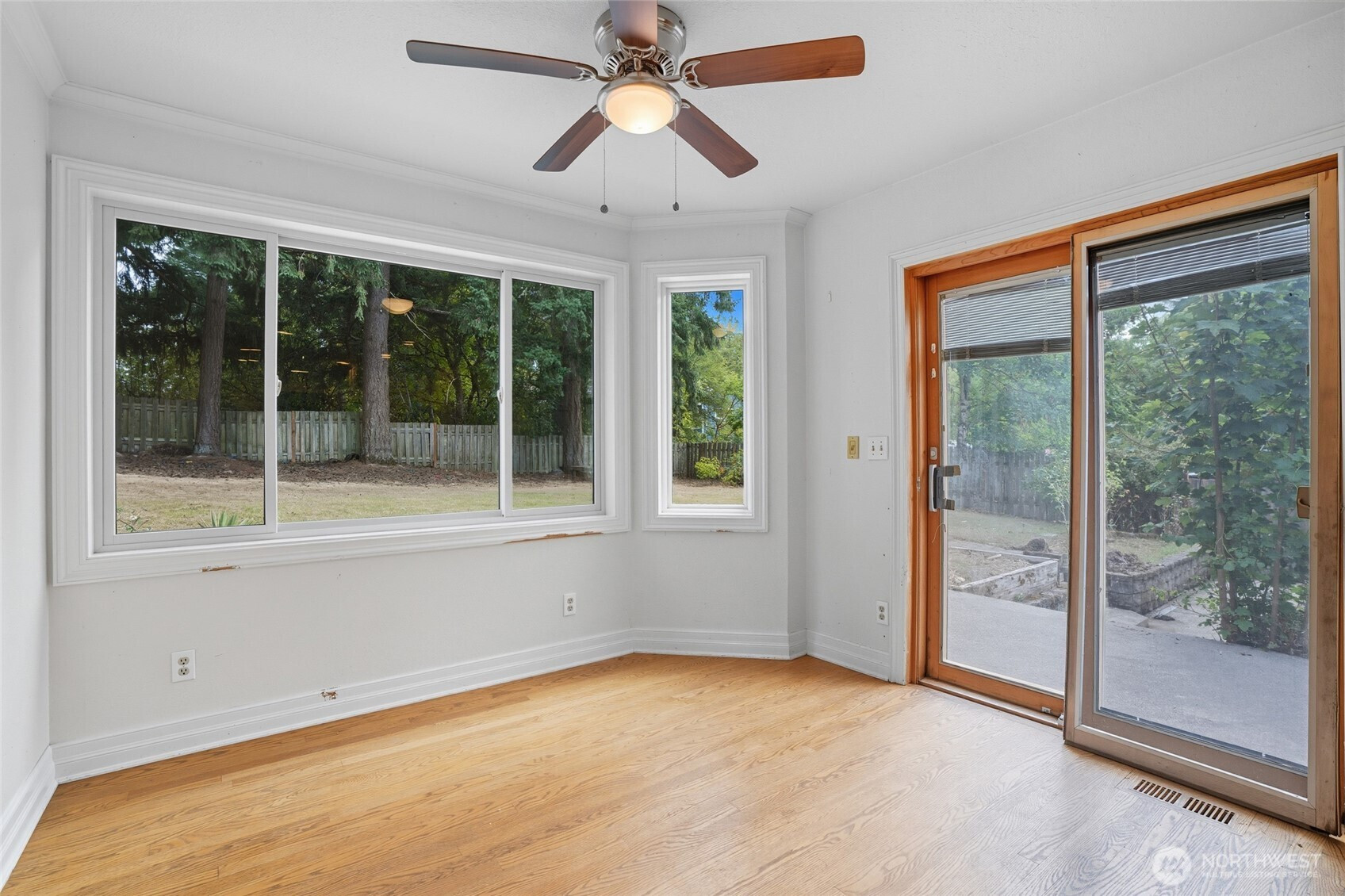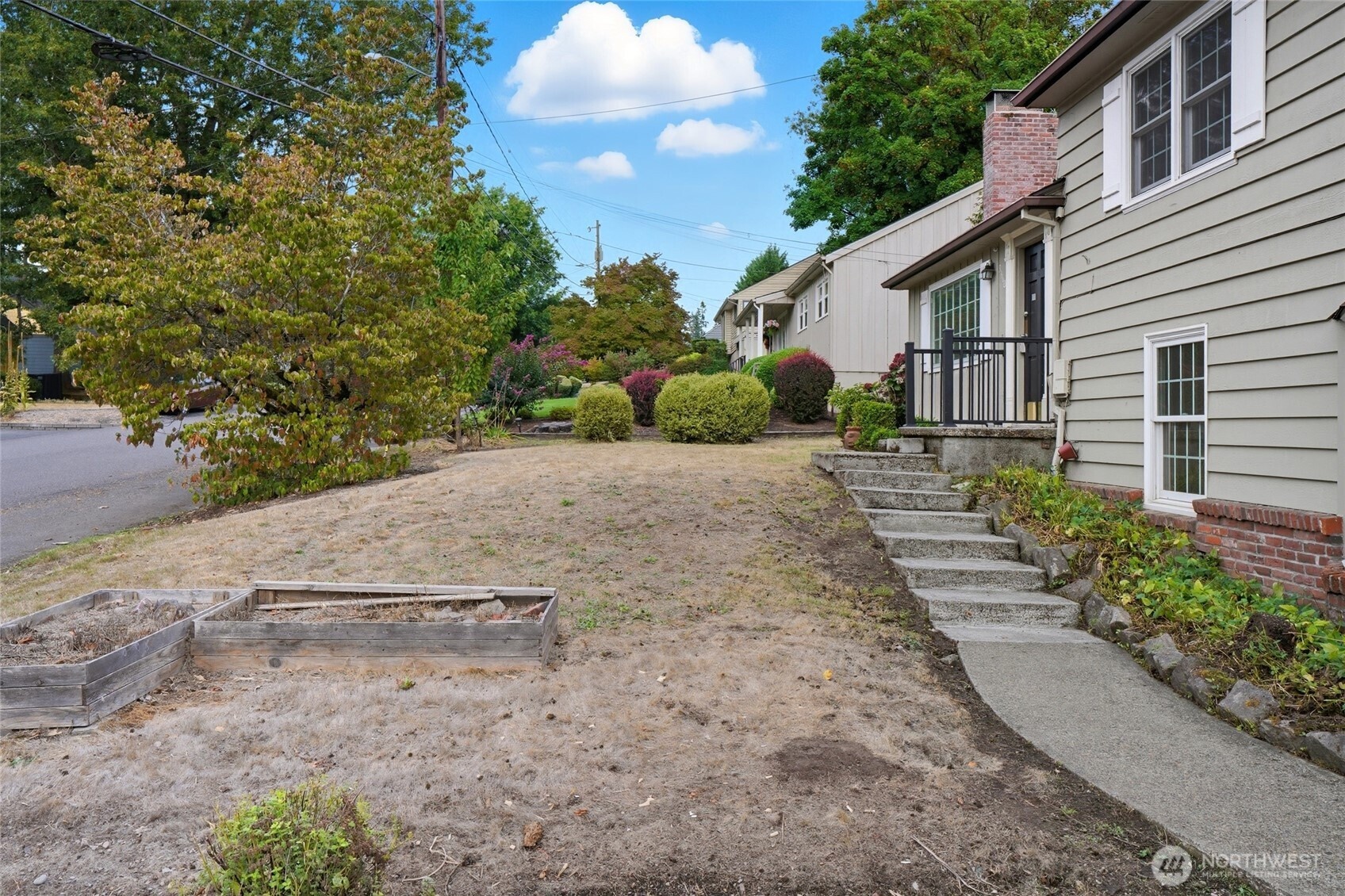 Raleigh Park home tucked away on a quiet, tree-lined street minutes from city living. The main level features formal living/dining w/ hardwood floors, kitchen w/ granite counters, stainless steel appliances, eating bar & sunny breakfast nook w/ bay window. Sliding doors open to a private fenced yard w/ multi-level patio. The primary suite is tucked at the rear of the home, overlooking the backyard. The lower level offers a generous rec room w/ wood stove & versatile den w/ separate entrance - ideal as 5th bedroom, craft room, office, or even ADU. Upstairs are 3 additional bedrooms w/ hardwood floors & another full bath. Set on a 0.28-acre lot w/ mature trees & level yard. This home also includes AC for year-round comfort!