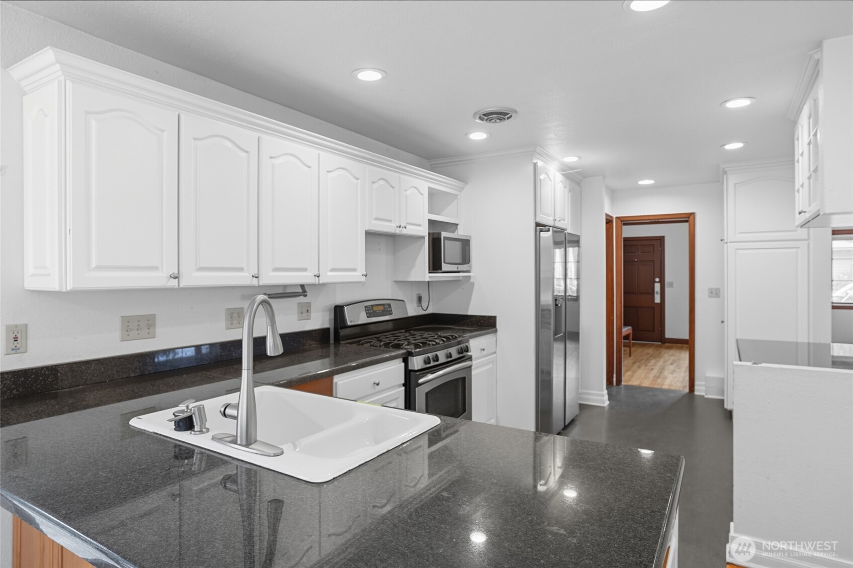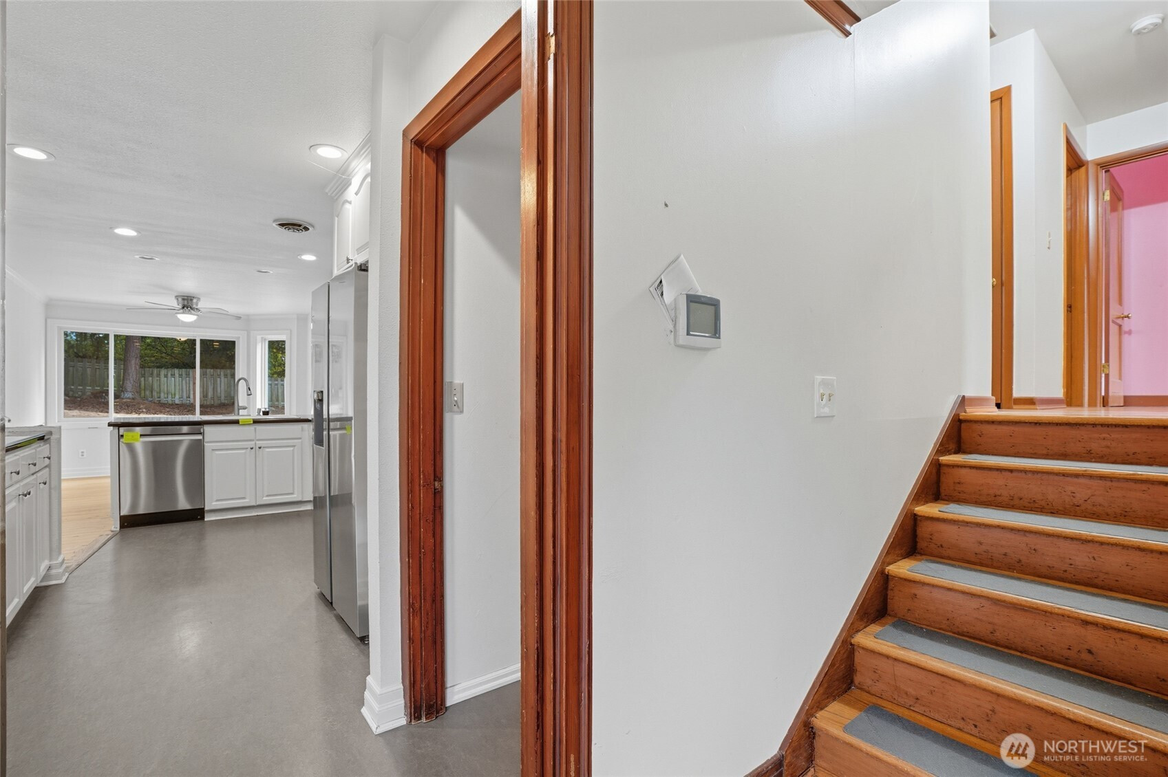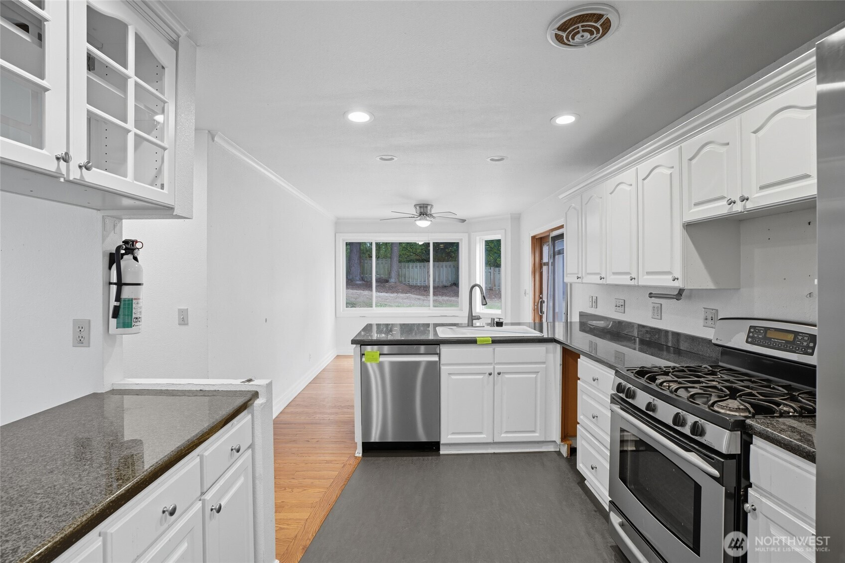 Raleigh Park home tucked away on a quiet, tree-lined street minutes from city living. The main level features formal living/dining w/ hardwood floors, kitchen w/ granite counters, stainless steel appliances, eating bar & sunny breakfast nook w/ bay window. Sliding doors open to a private fenced yard w/ multi-level patio. The primary suite is tucked at the rear of the home, overlooking the backyard. The lower level offers a generous rec room w/ wood stove & versatile den w/ separate entrance - ideal as 5th bedroom, craft room, office, or even ADU. Upstairs are 3 additional bedrooms w/ hardwood floors & another full bath. Set on a 0.28-acre lot w/ mature trees & level yard. This home also includes AC for year-round comfort!