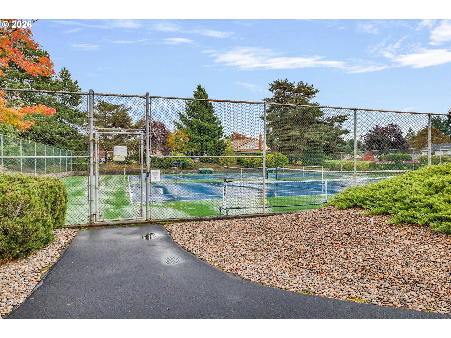 Beautiful 2-bedroom, 2-bathroom townhome, perfectly situated in an over-55 neighborhood. This one-level home greets you with a private gated courtyard entrance. Inside, the easy flow layout features a spacious living room with a cozy fireplace, beautiful laminate flooring throughout. Access to Trex like deck, ideal for relaxing or entertaining. A galley style kitchen equipped with refrigerator, dishwasher, range and built-in Microwave with a convenient eating area. Primary suite includes ample storage with large closets and bathroom.The washer and dryer are included in this home. Active HOA community, enjoy the amenities including a clubhouse, weight room, tennis, golf, swimming & common areas. HOA fees cover exterior maintenance and landscaping, ensuring a carefree lifestyle.