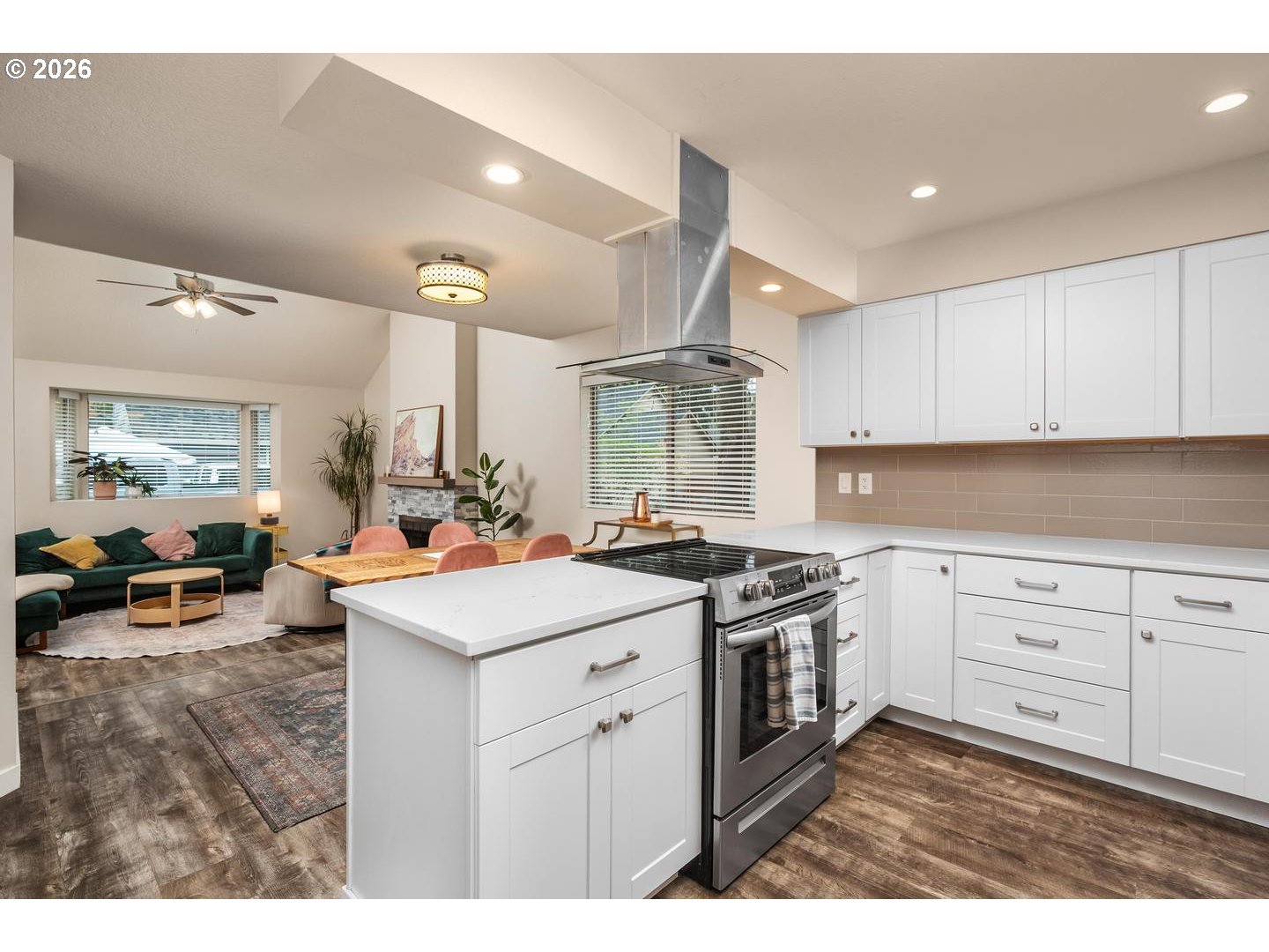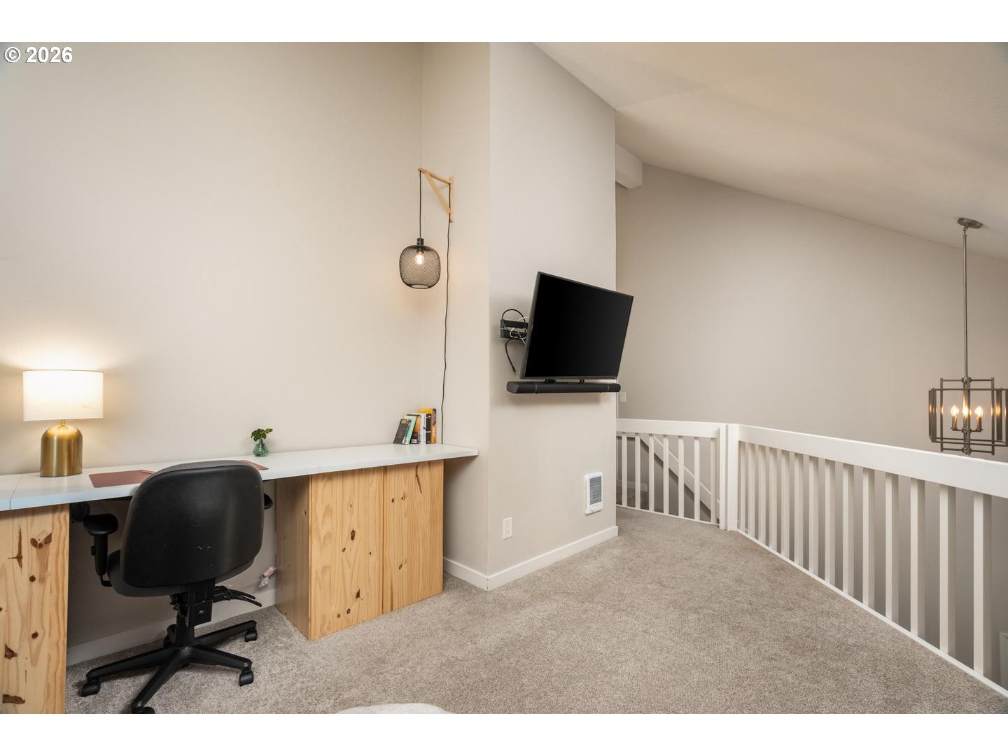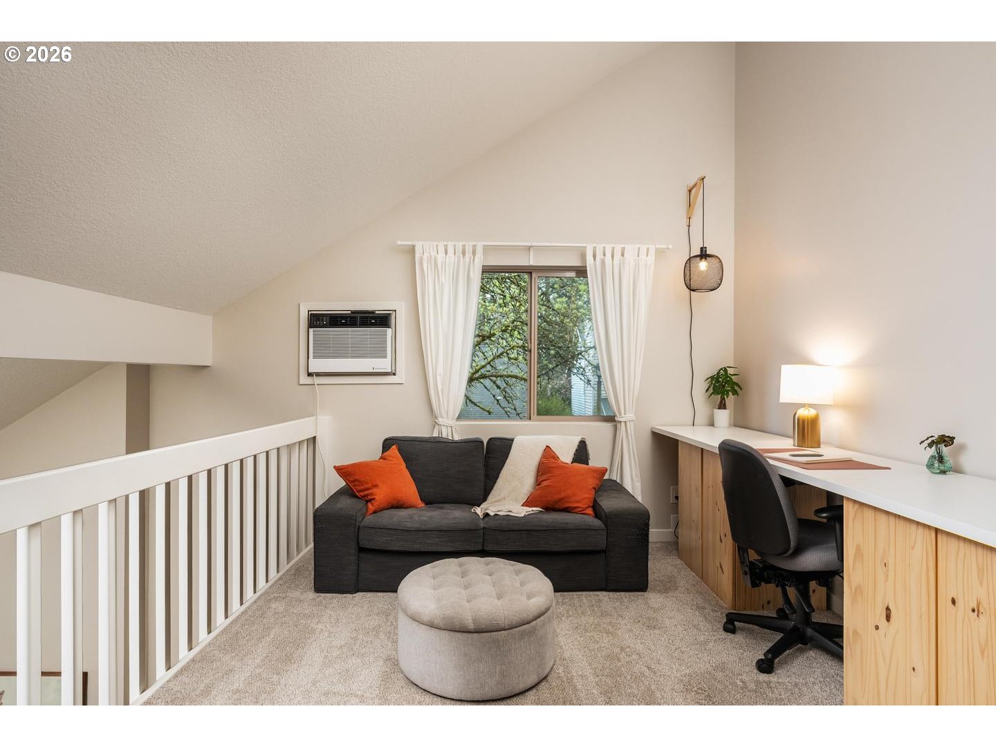 Tucked on a quiet corner lot in a well-kept Tigard community, this detached two-story home offers an ideal blend of comfort and value. Vaulted ceilings in the main living areas create an open, airy feel filled with natural light, anchored by a cozy wood-burning fireplace. The updated kitchen features quartz counters, a pantry for storage, and stainless steel appliances with the refrigerator included, while refreshed bathrooms continue the modern feel throughout. Upstairs, a spacious loft provides flexibility for a home office, workout area, or creative space. The bedrooms offer a comfortable and private retreat, both with vaulted ceilings that enhance the sense of space, including a generously sized primary with ample closet storage. The washer and dryer are also included for added convenience. Enjoy a private fenced paver patio, attached one-car garage, and the ease of low HOA dues and property taxes. Located just minutes from Old Town Tigard, you’ll love the convenience to shops, dining, and everyday amenities in a quiet, highly walkable neighborhood.