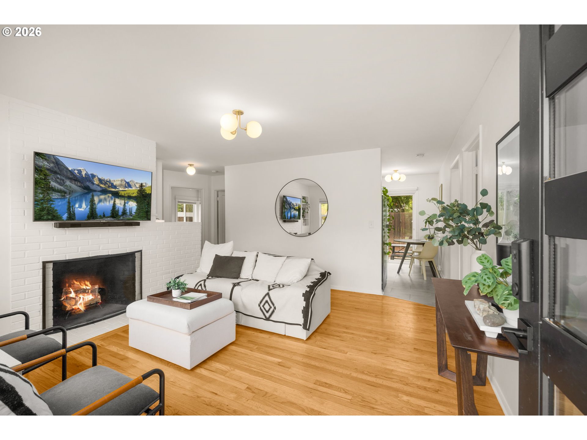 Must-see fully updated mid-century home on a spacious lot in a sought-after location. Original hardwood floors run throughout the home, complemented by tile in the kitchen. The fully remodeled kitchen and bathroom (2022) offer modern style and functionality, featuring quartz countertops, stainless steel appliances, built-in microwave, and eating area.The light-filled living room showcases a classic brick wood-burning fireplace, creating a warm and welcoming space. A slider opens to the spacious, level, fully fenced backyard, perfect for entertaining, gardening, or relaxing. The property includes two detached outbuildings, including one with electricity ideal for a studio, home office, or flex space, plus an additional tool shed for storage.Recent upgrades include refreshed landscaping with a new front walkway and backyard gravel pad, updated electrical, EV charger (210W), smoothed ceilings, and added attic insulation. Enjoy year-round comfort with a new Boldr intelligent, energy-efficient infrared heating system.A rare blend of mid-century charm and thoughtful modern updates. This home is move-in ready and not to be missed.