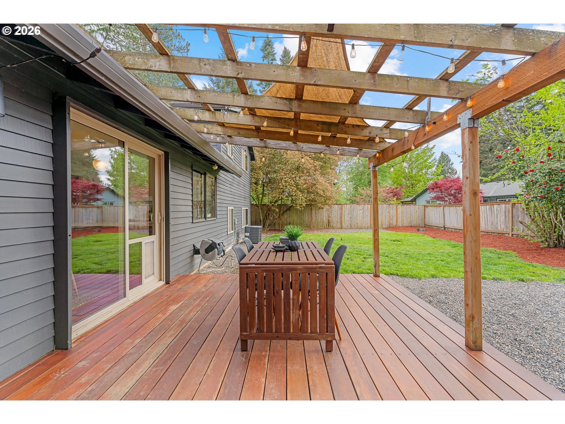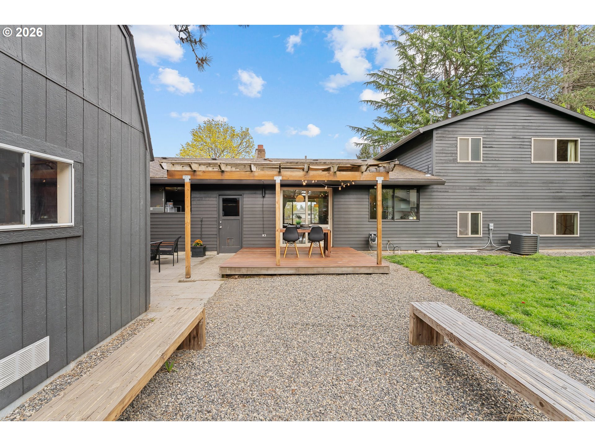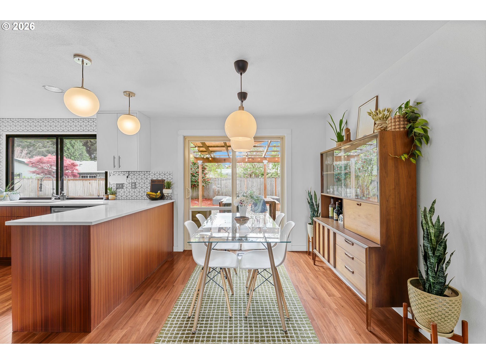 Mid-century vibe + cul-de-sac living. Tucked into a quiet cul-de-sac, this tri-level home carries a mid-century influence with a layout that’s both functional and easy to live in. With 4 bedrooms, 2.5 bathrooms, a living room, and a separate family room, there’s room to spread out while still feeling connected.The kitchen and bathrooms have been thoughtfully updated with clean, timeless finishes that fit the home’s style. Updates include—full kitchen remodel, primary and guest baths remodel, engineered hardwood flooring, exterior paint, newer roof (2018) and HVAC (2021)—offer added peace of mind.Step out onto the deck—ideal for outdoor dining—or gather around the fire pit, tend to the raised garden beds, and enjoy the spacious, fenced yard with plenty of room to play. Private and inviting, it’s a space that works just as well for quiet mornings as it does for hosting.