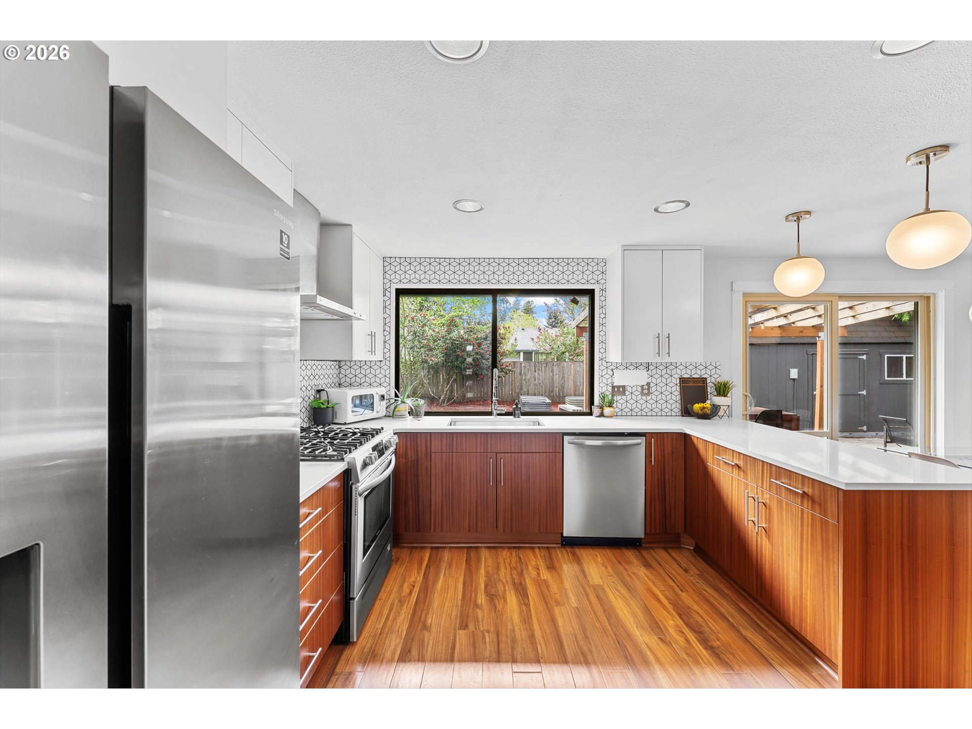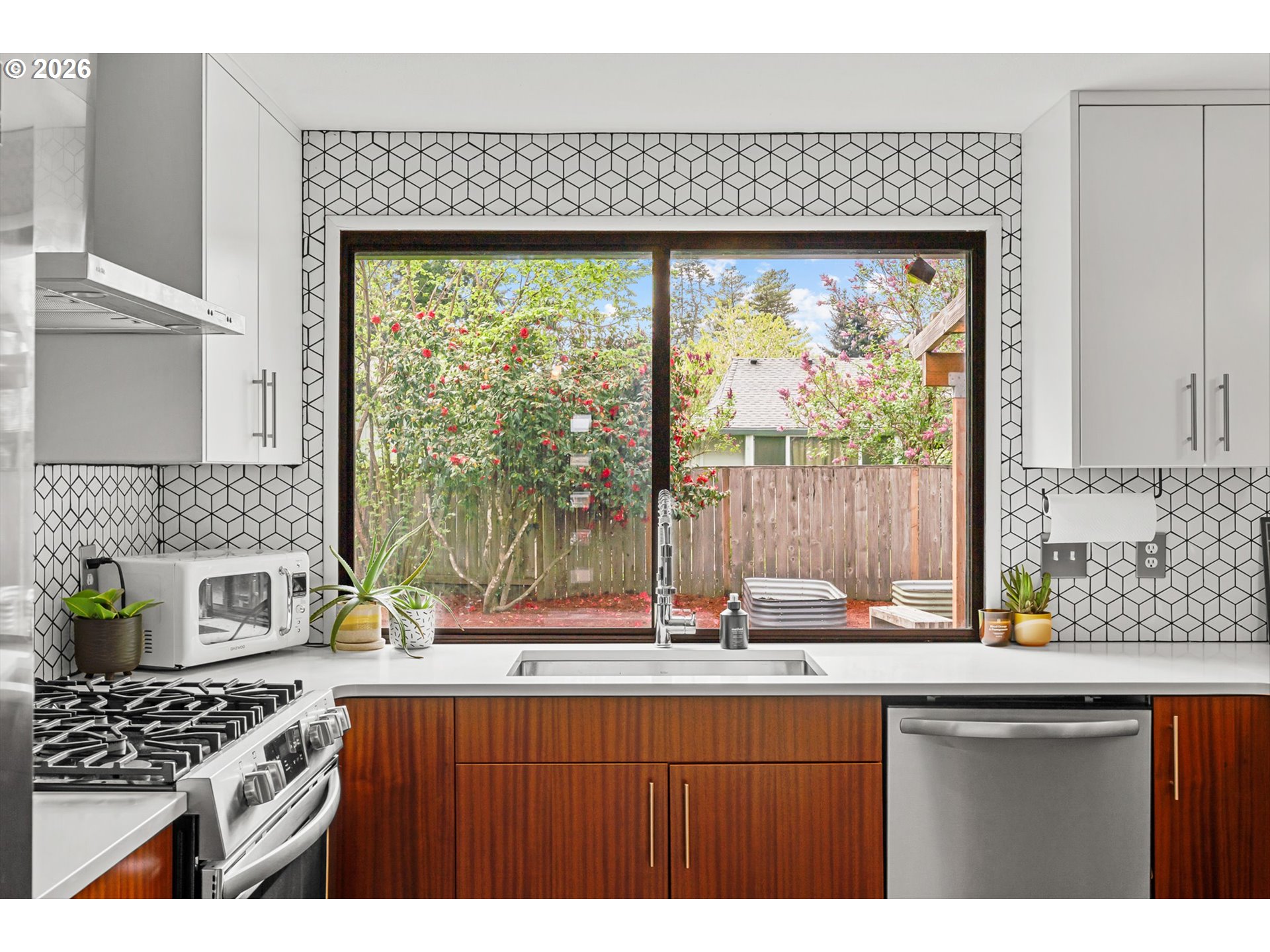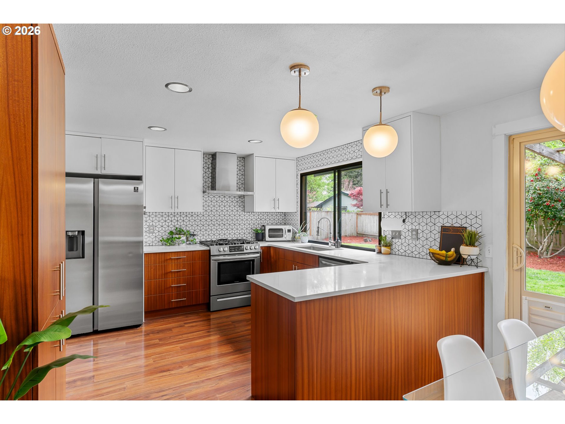 Mid-century vibe + cul-de-sac living. Tucked into a quiet cul-de-sac, this tri-level home carries a mid-century influence with a layout that’s both functional and easy to live in. With 4 bedrooms, 2.5 bathrooms, a living room, and a separate family room, there’s room to spread out while still feeling connected.The kitchen and bathrooms have been thoughtfully updated with clean, timeless finishes that fit the home’s style. Updates include—full kitchen remodel, primary and guest baths remodel, engineered hardwood flooring, exterior paint, newer roof (2018) and HVAC (2021)—offer added peace of mind.Step out onto the deck—ideal for outdoor dining—or gather around the fire pit, tend to the raised garden beds, and enjoy the spacious, fenced yard with plenty of room to play. Private and inviting, it’s a space that works just as well for quiet mornings as it does for hosting.