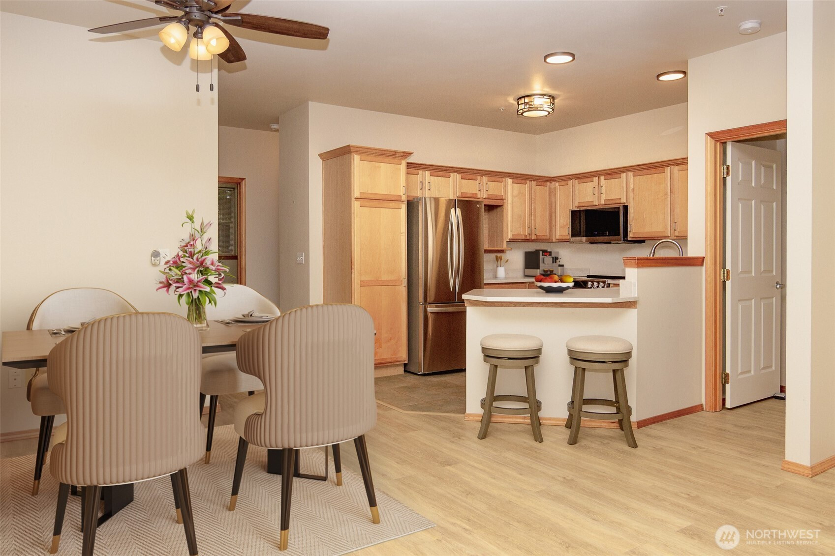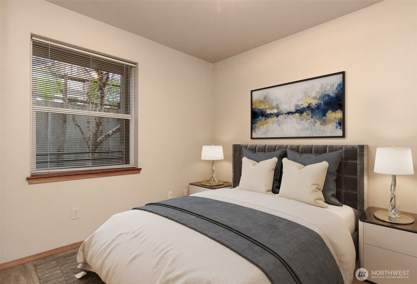 Live in the heart of Bellingham! Sip a glass of wine and enjoy spectacular bay views and sunsets from the private, covered deck in your centrally located, one level condo. Entertain easily in the open concept floor plan. The unit features newer appliances, counters, washer/dryer and vinyl plank flooring. Oven has convection and air fry options! New Jacuzzi low threshold shower in the owner's suite. Radiant heat keeps you warm and cozy on chilly nights. This turn-key unit has tons of light and lots of storage including a large, secured storage room in front of your secured covered parking spot. The condo is across the street from Laurel Park and is close to downtown shops, music and theater venues, breweries and restaurants. Crooked Path City trail right next to building. Walk score of 86! All the privacy and comforts of home but close enough to enjoy all the amenities of the city. Welcome Home!