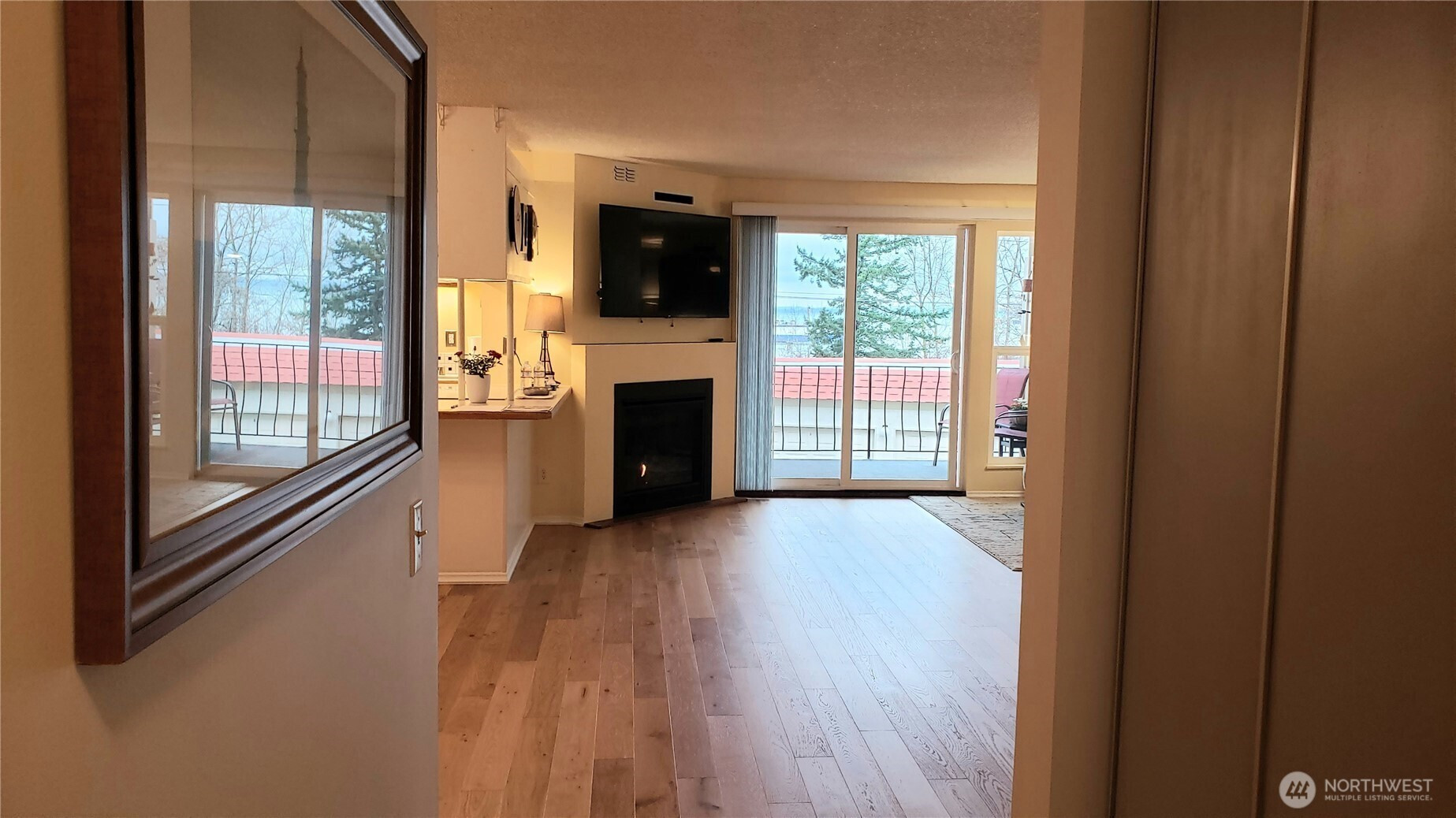 Fantastic location! Feel the true Fairhaven vibe! Updated 2BD 1BA condo with bay views (best in winter) & glorious sunsets between Taylor Dock & Village Books above South Bay Trail. Sound-reducing windows, blinds, newer appliances, H20 tank, gas fireplace, gorgeous engineered hardwood floors in living area, lighting, make this a calm welcoming space. Full bathroom has 2 sinks, quartz countertop, new toilet & medicine cabinet. Handy storage room on newly redone deck plus storage unit 103 in basement. Community rec room has bathrooms & saunas. Take elevator or inside stairs from assigned carport space 103. Unreserved carport spaces are first come, first served. Just 2 blocks to restaurants, banks, breweries, & eclectic retail shops. Take trail system to Marine or Boulevard Parks. Condo is now vacant so please go and show. This is the least expensive 2BD condo in Fairhaven and motivated seller has it listed for less than assessed value.