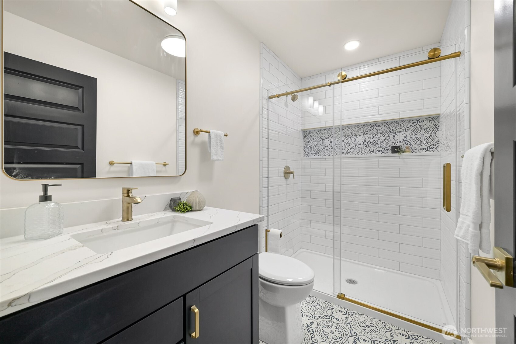 (503) 893-8874PNW-style lake view home! Main level living w/stunning Acacia floors. Open plan kitchen showcases concrete countertops and an oversized live-edge wood island. Cozy up next to the modern fireplace in the great room as you enjoy the treetop view. Luxurious primary suite with custom closet system and tiled bathroom w/soaking tub. The lower level features a bonus room w/gas fireplace flanked by live-edge built-in benches & mantel, Trex deck, 3 bedrooms, bathroom, and washer/dryer. A permitted 1100 SQFT walkout basement with kitchenette, great room, bedroom, bathroom and W/D hookups was just completed & never lived in. Perfect for multi-generational households. Abundant storage throughout. $300k worth of updates since last sale!