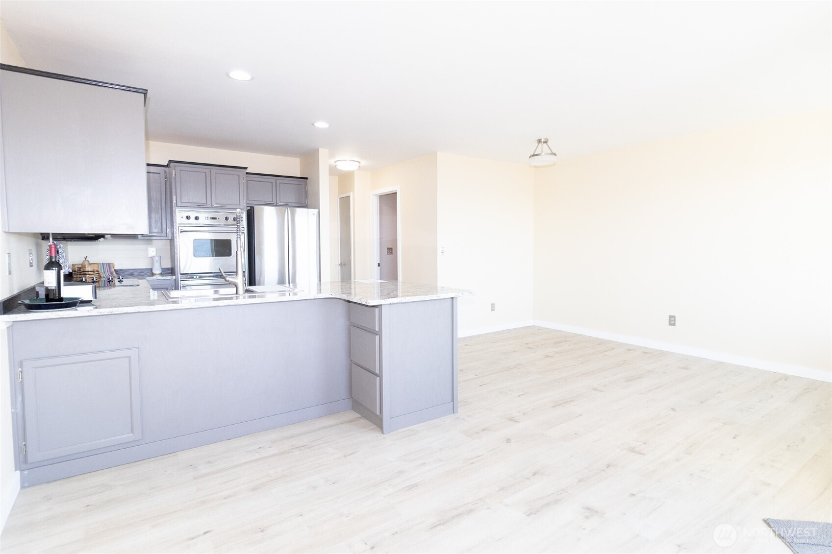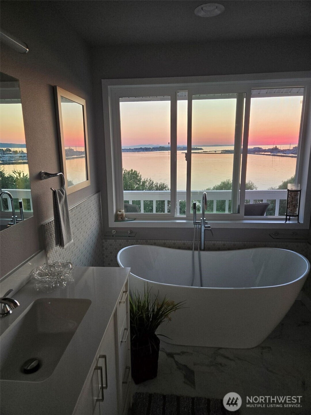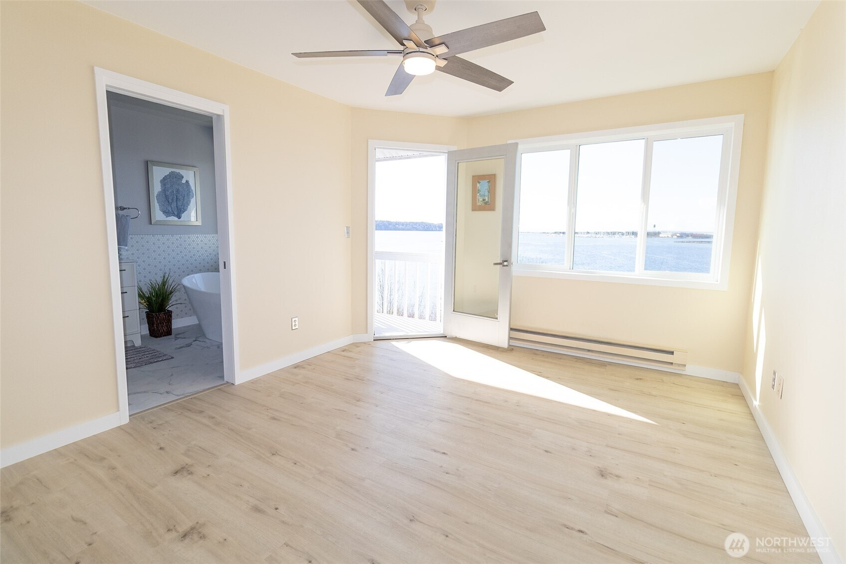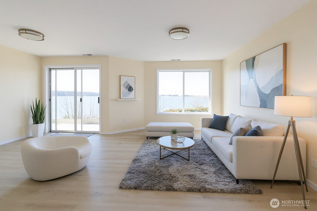 This newly updated condominium offers expansive water views overlooking Drayton Harbor, Semiahmoo the Blaine Marina, and surrounding coastal scenery including a view of Boundary Bay and White Rock, BC. The residence features two bedrooms and three bathrooms, along with multiple private outdoor spaces that allow for enjoyment of the waterfront setting throughout the day. Interior improvements include new flooring, fresh paint, and a renovated kitchen equipped with stainless-steel appliances. Bathrooms have been refreshed with modern finishes, including a soaking tub positioned near a window. The home is move-in-ready and located near Downtown Blaine, providing convenient access to local shops, dining, and waterfront amenities. The property includes a daylight basement level with patio access, which may function as a large recreation area or potentially be converted to a third bedroom or office, subject to buyer verification, condominium association approval, and applicable regulations. Buyer to verify all information to their satisfaction.