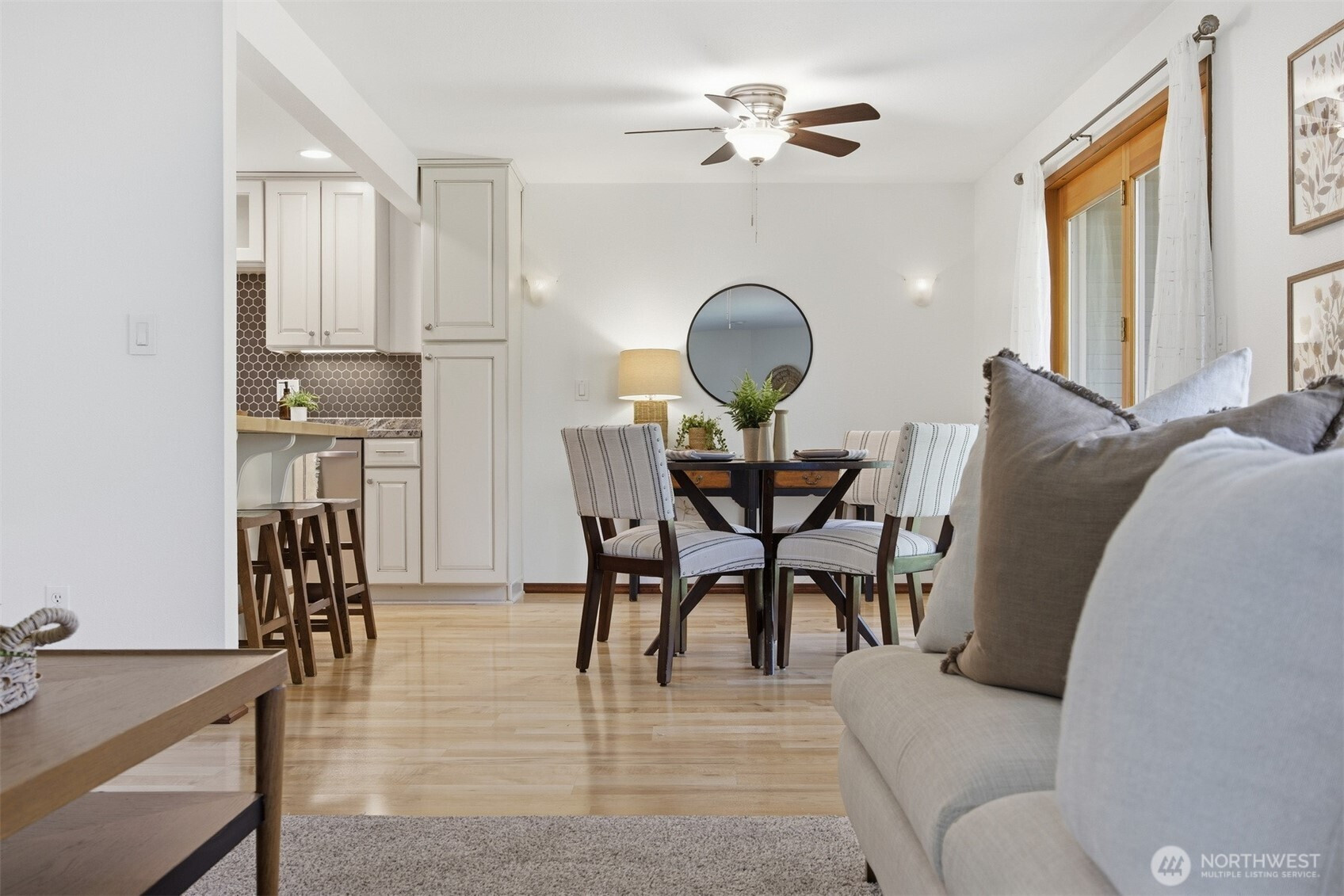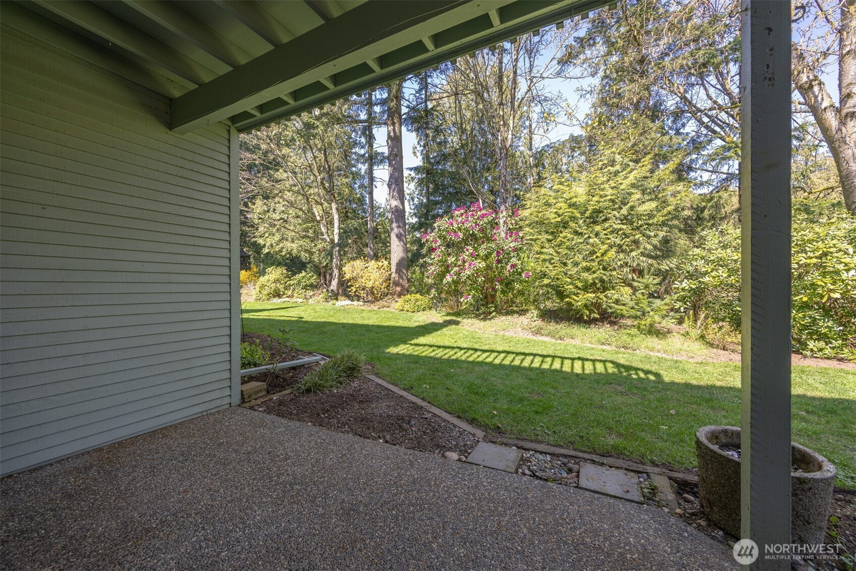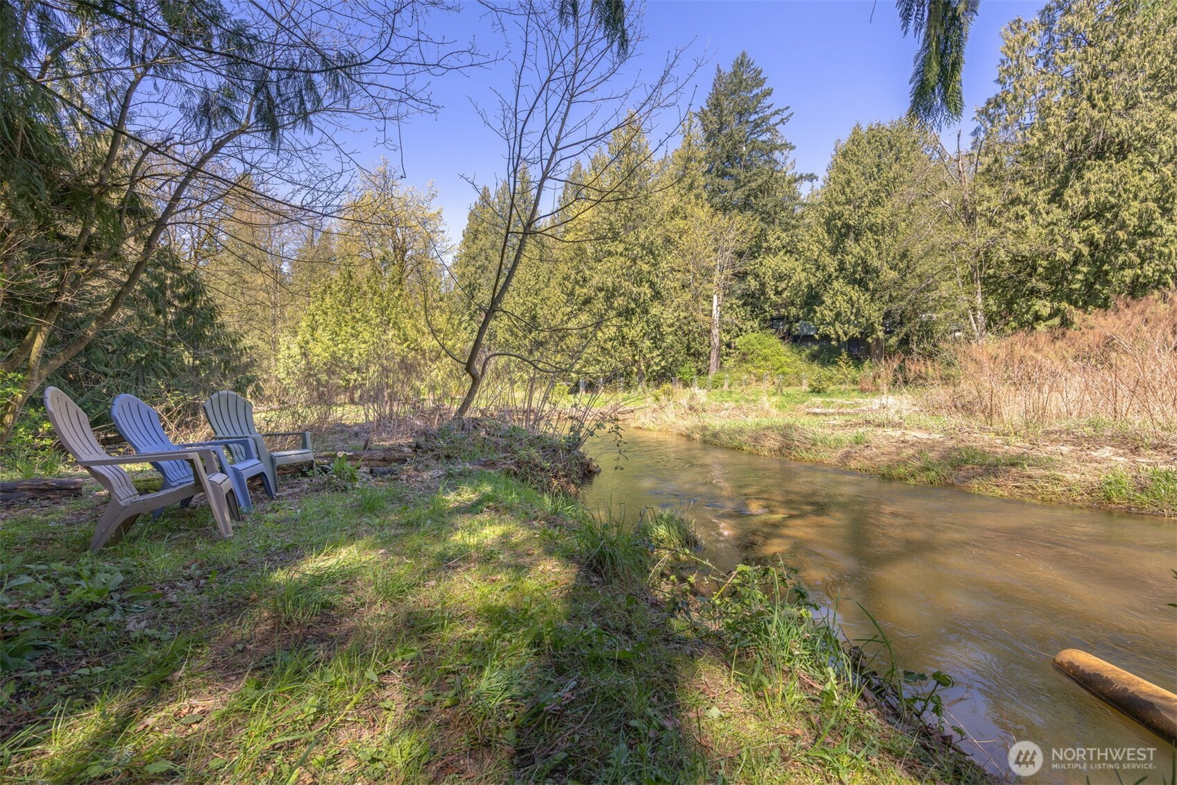 Nestled in the heart of Lynden, this ground level end unit offers the kind of walkability & privacy that's hard to find. Steps from the bus route, shopping, & restaurants, the location delivers real convenience while still feeling tucked away. Extra natural light & a park-like backdrop make this one stand out from the moment you arrive.Inside, the open layout connects a remodeled kitchen with new appliances to the living & dining area, all flowing out to a private patio that overlooks a serene setting with a creek below. Brand new carpet & fresh paint throughout means it's truly move-in ready. The primary suite is tucked away with a large walk-in closet & en suite bath, offering a quiet retreat at the end of the day. The second bedroom is flexible, working equally well as a den, office, or guest room. Washer & dryer are in-unit in their own utility room, & pets are welcome.A detached single car garage plus an assigned parking space give you more storage & convenience than you'd expect. The community clubhouse rounds it out. Whether you're a first-time buyer, downsizing, or simply looking for low-maintenance living in a great location, this one is worth a look.