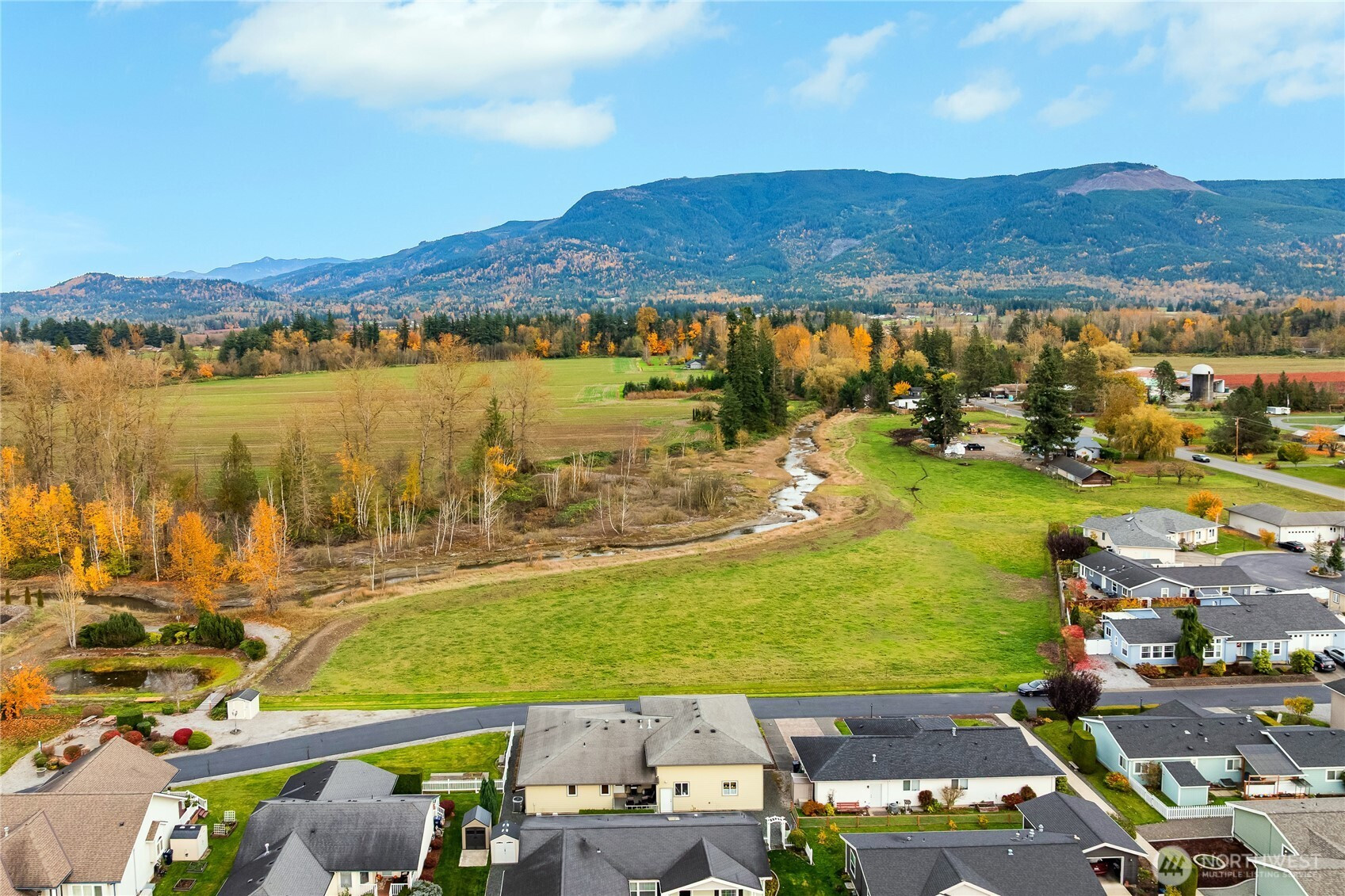 Picture your ideal home... Quiet well-maintained 55+ neighborhood, beautifully maintained one-level home, adjoining park areas, beautiful view? Welcome to #14 Sumas River Estates, located in quiet and peaceful Nooksack! This home is immaculately kept with 2 bedrooms, 2 bathrooms, plus a den and family room. Well-designed living space, lots of natural light and stylish gas fireplace. The family room has a walk out covered deck. Wonderful kitchen with new high-end appliances included... Plus, this home features an attached 43-foot-deep RV garage with all hookups, heated shop space and huge 2nd vehicle parking area, or park multiple cars! Lots of possibilities in this 43 x 28 garage space...use your imagination...This is OUT of the flood zone!