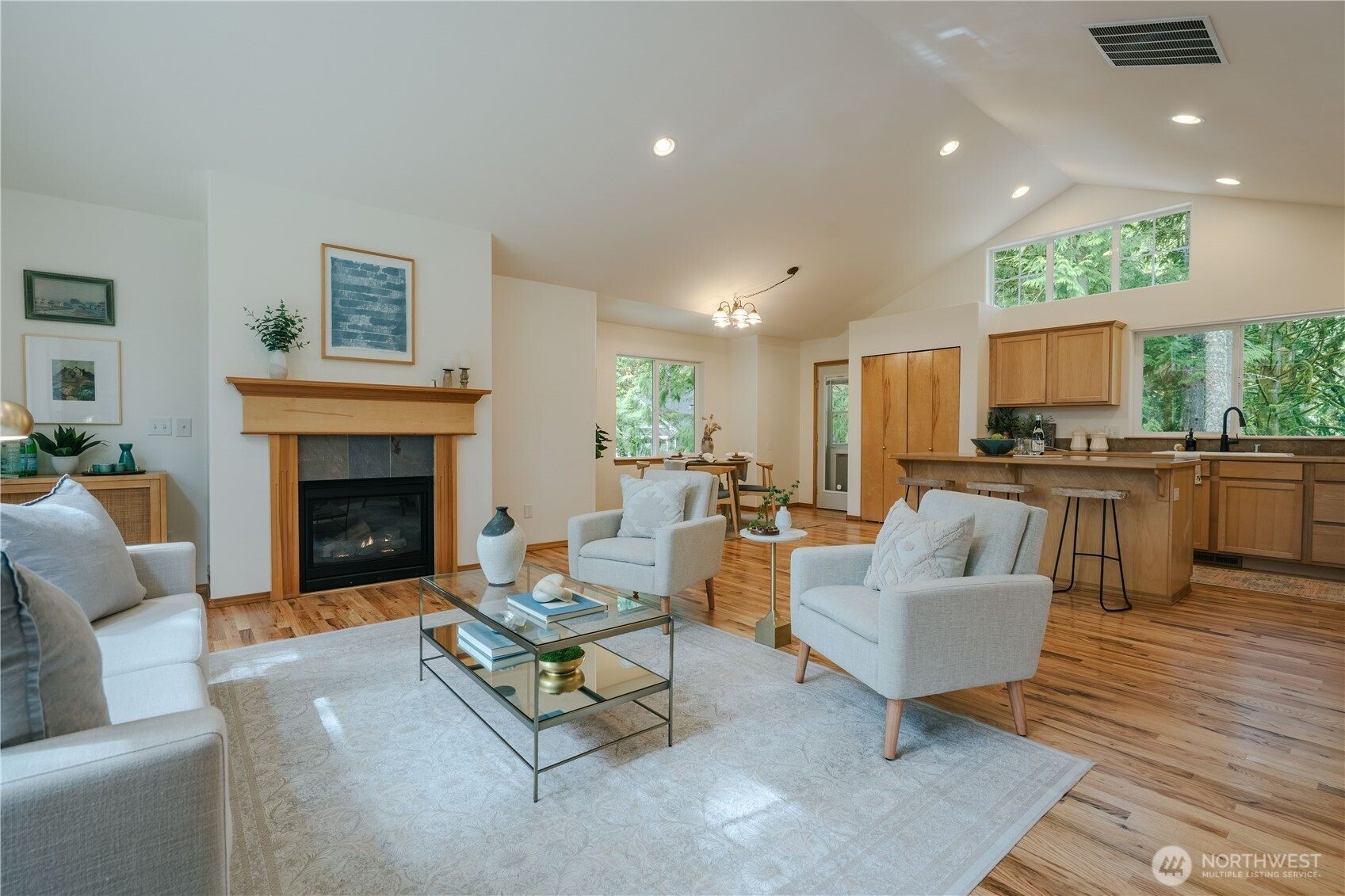 100% move-in ready, the owners have invested handsomely to prepare this 3-bed, 2.5-bath home for your immediate move-in. Situated on a sizable double lot, you are adjacent to 400 acres of Whatcom Land Trust protected forest also known as the Stimpson Family Nature Reserve, renowned for it miles of hiking trails and gigantic old growth trees. Beautiful from the curb with its cedar shingle accents, durable Hardiplank siding, and a terraced front yard with freshly groomed lawn that will make you proud to arrive home. Step through the brand new front door into this 1736 sq. ft. home and enjoy newly refinished oak floors, fresh interior paint, brand new carpet with extra thick padding, new stainless steel refrigerator, gas range and microwave/hood, and a brand new water heater. Enjoy lazy days or entertain guests in the soaring ceiling Great Room. Natural light floods in through the chalet windows, a cozy gas fireplace lends ambience, and a dining area, kitchen island with seating, and the covered back deck give you options for every meal and gathering . The Primary Suite with its full bath round out the upper floor. Two spacious guest bedrooms, a full bath, and laundry make up the downstairs level, along with the two-car garage. Gray Birch is a non-thru street making it exceptionally peaceful, and with other gorgeous homes nearby. If you love spending time in an open concept, thoughfully-designed, inspiring space on an extra large lot, then 11 Gray Birch is for you!