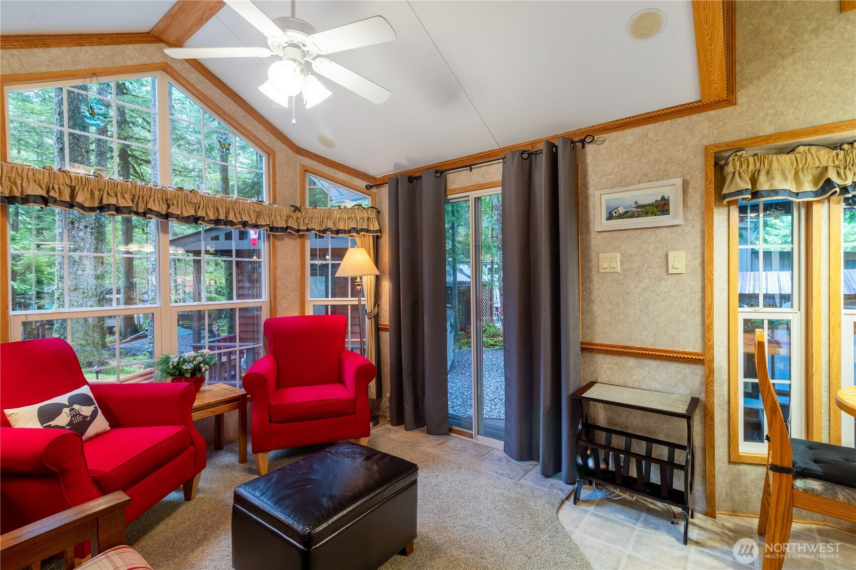 Tucked on a quiet cul-de-sac in Division 2, this immaculate park model with double loft offers plenty of room to comfortably sleep eight or more. The spacious interior features vaulted ceilings and a wall of windows that bring in beautiful natural light and peaceful forest views. The open living area includes a cozy fireplace feature, a full-size bathroom, and generous storage throughout. The primary bedroom is conveniently located on the main floor, while the double loft provides two queen beds and flexible space for guests. Outdoor living is where this property truly shines. Beautiful foliage, colored lights, and thoughtful landscaping create a magical setting. The large covered deck with pergola roof feels like an outdoor living room and includes a wood stove for cozy evenings. A fire pit tucked in the back and a sun-dappled sitting area provide perfect spots to relax or enjoy morning coffee. Several outdoor storage areas, including a shed, offer space for tools and recreation gear. Newer furnace. Turn-key and ready to enjoy. Just 15 minutes from the base of Mt Baker, amenities include pools, hot tub, sauna, tennis and basketball, 24/7 security and more! Occupancy limited to 120 days per year. No rentals.