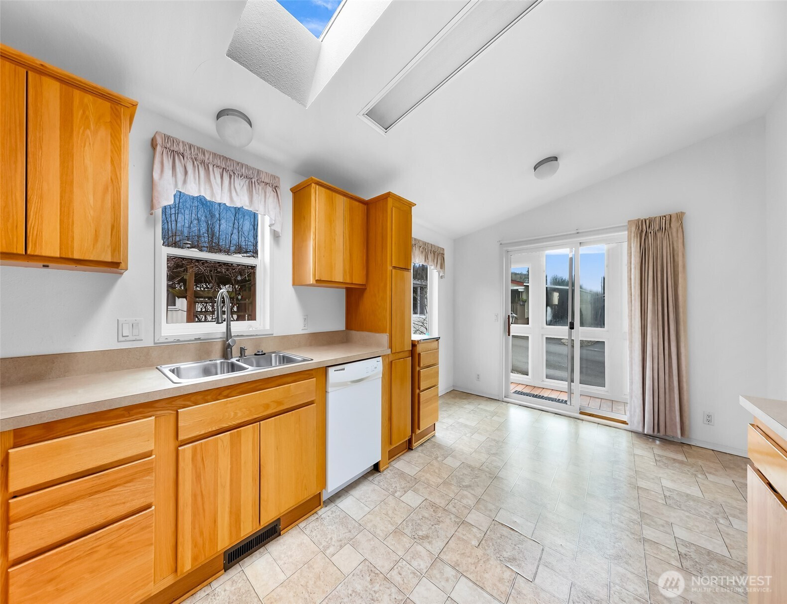 Lakeway Estates, one of Bellingham's premier mobile home parks! This corner lot home is a must see! This move in ready well maintained home has 3 bedrooms, 1 3/4 bathrooms, bright living room, bright dining room, vaulted ceilings and skylights. Large open kitchen with a sun porch off the kitchen. Large primary bedroom with a 3/4 bathroom. 2 additional bedrooms for guests, office or hobbies. Energy efficient double pane vinyl windows. The carport has a storage shed with electricity and a covered walk to the front door. Club House with laundry room, library, billiard room, kitchen, salon, community clubs. Walking distance to shopping, groceries, bank, restaurants, coffee & public transportation.
