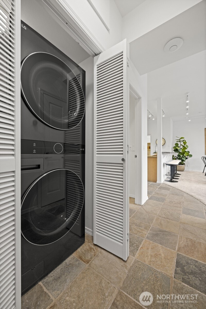 TOP FLOOR, FRESHLY REMODELED, flooded in natural light, and ready for your move-in! This Fairhaven condo with partial views of the Bay puts you right in the thick of Bellingham's most desired historic district. Featuring two bedrooms, two full baths with brand new tubs & shower surrounds, new paint throughout, new carpets, entirely new kitchen appliance set, new lighting -- just bring your furniture & you are set! Slate & granite surfaces + 9-foot ceilings create a luxury, lofty atmosphere in this Fairhaven home base. Two balconies to enjoy the salt air & your beverage of choice. Heat Pump with Air Conditioning for year-round comfort in any weather. Full size washer/dryer included + a walk-in pantry. Elevator access from the secure parking garage w/enclosed storage area.