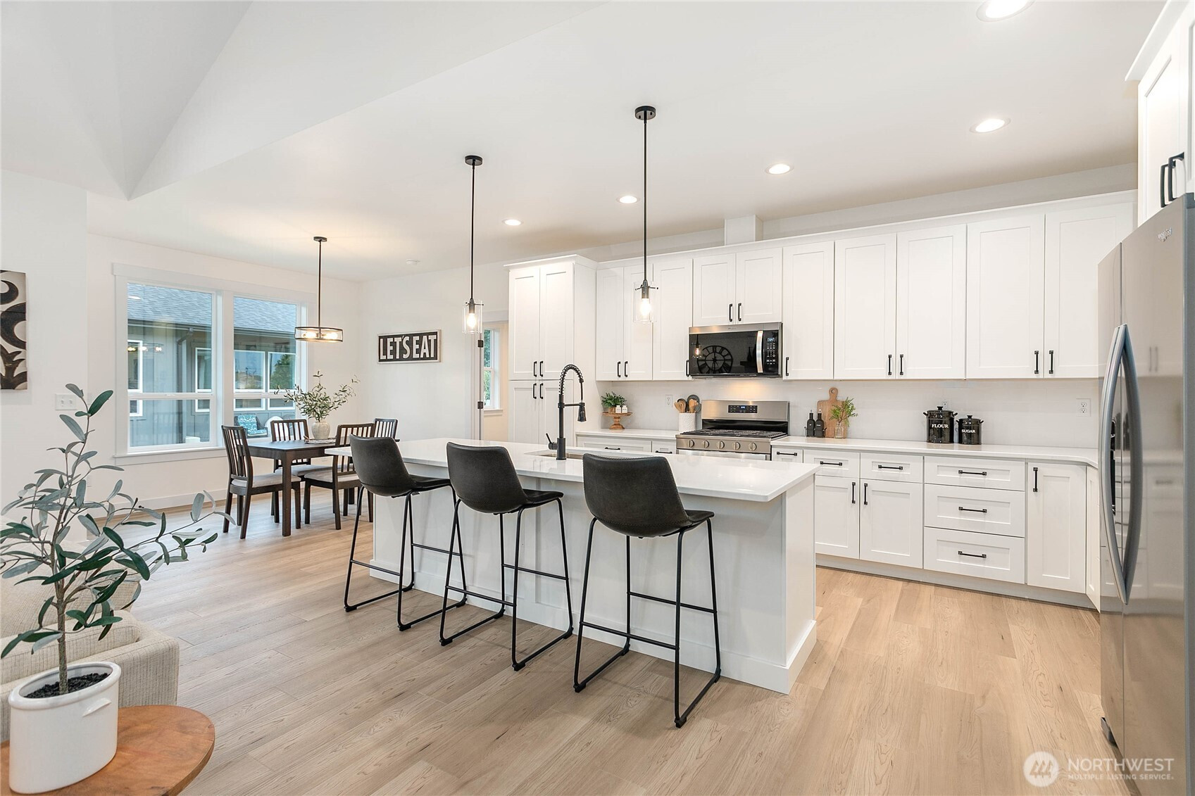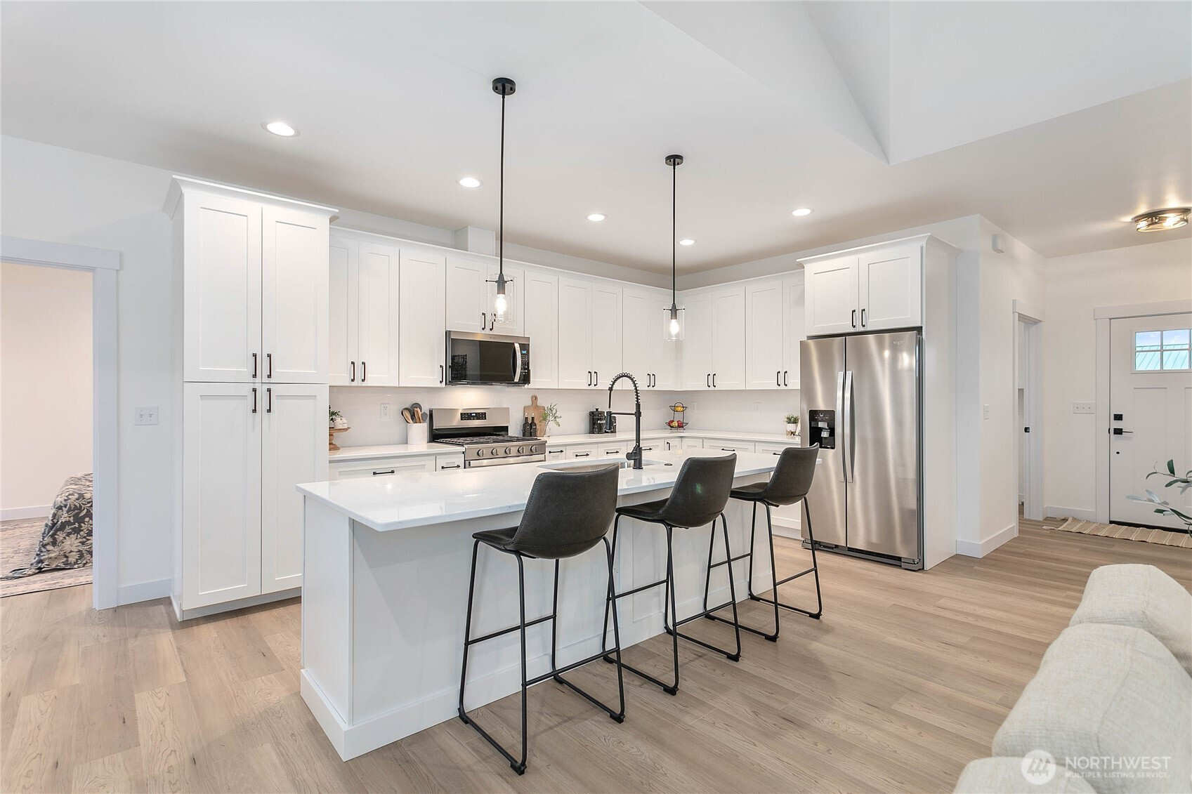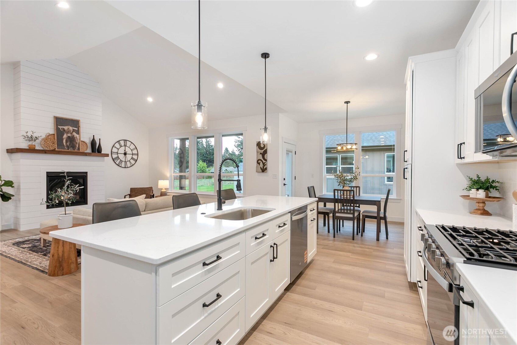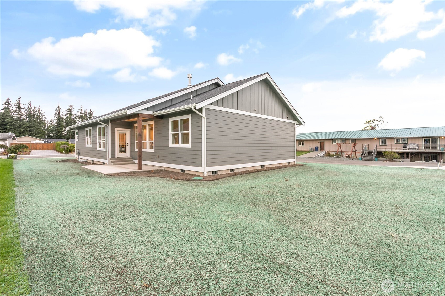 (503) 893-8874Beautiful new Pacific Edge Builders home w/ 4 bed & 2 bath on one level w/ large 3 car garage! Custom designed finishes including quartz countertops & LVP flooring throughout. Upgrades including gas fireplace & air conditioning. Large kitchen w/ custom cabinetry, tile backsplash and stainless steel appliance package. Open design concept with vaulted living room and functional floor plan. Primary bedroom with large walk in closet, bath with soaker tub & separate walk in shower. Large covered patio w/ gas hookup great for year round grilling and entertaining. Great location in a neighborhood of new homes with a short walk to Everson Elementary School and community park. Vacant and move in ready!