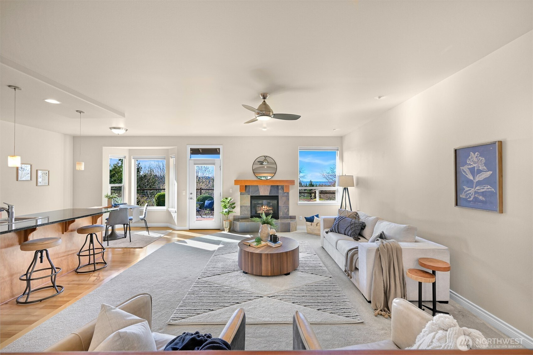 Set at the base of Galbraith Mountain in the coveted Whatcom Falls/Hannah Creek neighborhood, this stunning Skeers-built single-level home offers a seamless blend of natural beauty, sophistication, and unbeatable convenience. Just steps from Whatcom Falls Park immerse yourself in serene trails, lush greenery, and stunning waterfalls. Outdoor enthusiasts will delight in direct access to Galbraith Mountain’s world-class mountain biking trails right from your doorstep. This prime location also provides quick access to Lake Whatcom, I-5, and downtown—perfect for those seeking the best of both nature and city life. Inside, an open floorplan is bathed in natural light thanks to high ceilings and expansive windows. Hardwood floors lead you to a gourmet kitchen outfitted with granite countertops, an island and a dining nook. Host with ease in the formal dining room or relax in the living room by the slate-surround gas fireplace. A dedicated home office creates a peaceful workspace while the primary suite offers a luxurious retreat with a double vanity, soaking tub, separate shower and walk-in closet. A thoughtful split-bedroom layout ensures privacy for additional bedrooms. Outside, the west-facing backyard is a tranquil haven featuring lush gardens, meandering paths and sweeping territorial views. Soak in vibrant sunsets, bay vistas, and even snow-capped Canadian peaks. Complete with a 2-car garage, this home is a rare gem offering unparalleled outdoor adventure and accessibility.