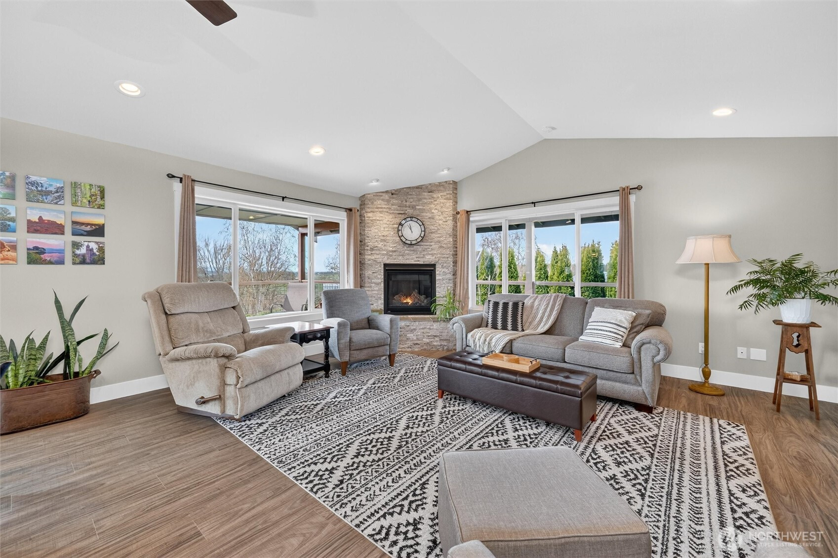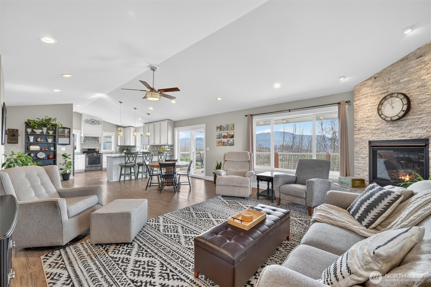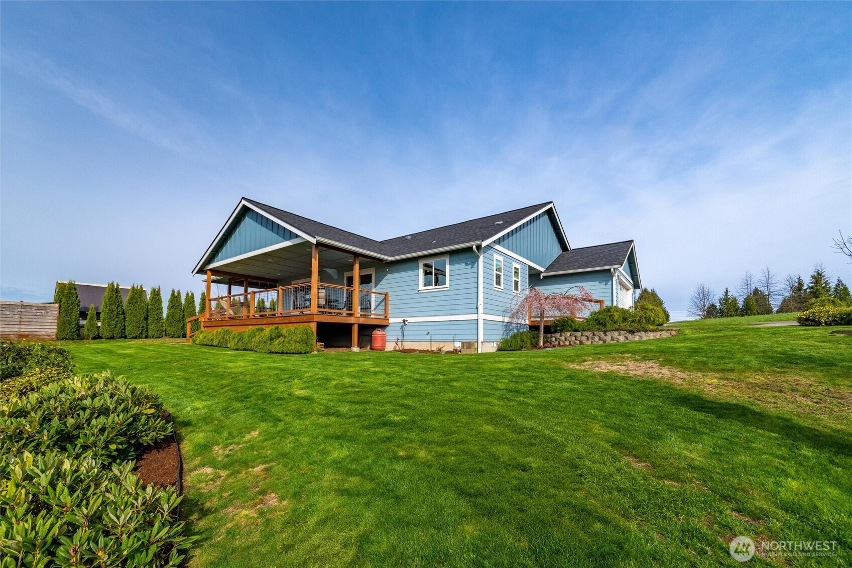Exceptional newer home on the highly desirable, south facing ridge above Sumas (well out of flood plain). Views from almost every window include sunrise over Mount Baker, sunsets over gorgeous Nooksack Valley farmlands, and views north to Canadian peaks. This one-level home is trimmed out in the timeless craftsman fashion and is in immaculate condition. With a functional open-concept floorplan and a large kitchen that has quartz counters, lots of storage, soft close cabinetry, and gas range. Another approx. 300 sft of south facing, covered deck area feels like an additionally living space as well. Just shy of 1 acre, the property is accessible both from the main entrance off Ridgeview and also has lower access off Kneuman Rd, with potential for a future detached garage or shop from this driveway? Sitting on the back deck, enjoying your manicured gardens, bird watching, gazing off into the endless views... this tranquil setting is one you will never want to leave. But when you do need to head out, it's only 15 mins to Lynden, 30 mins to Bellingham, and just 12 mins to Costco in Abbotsford, Canada!