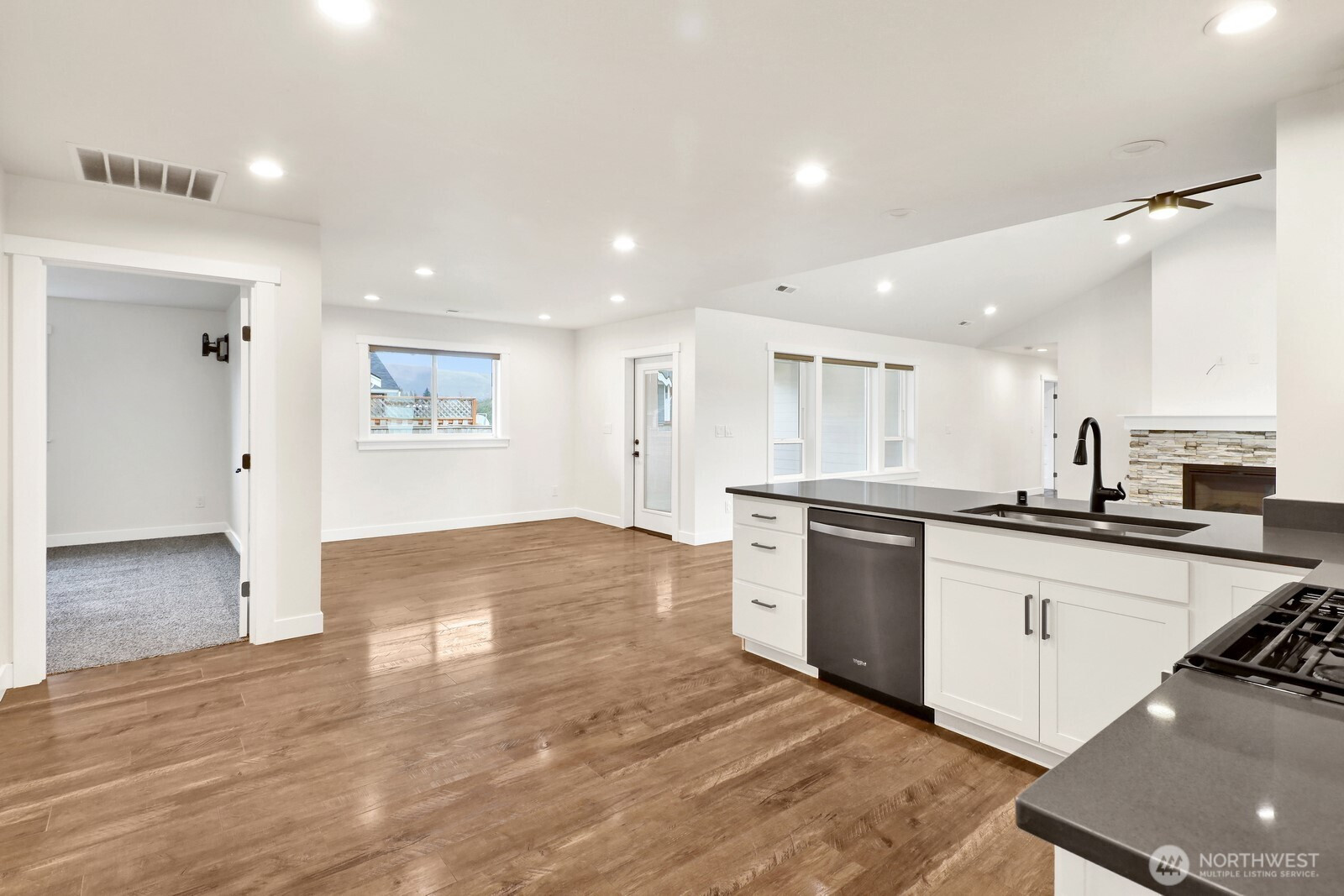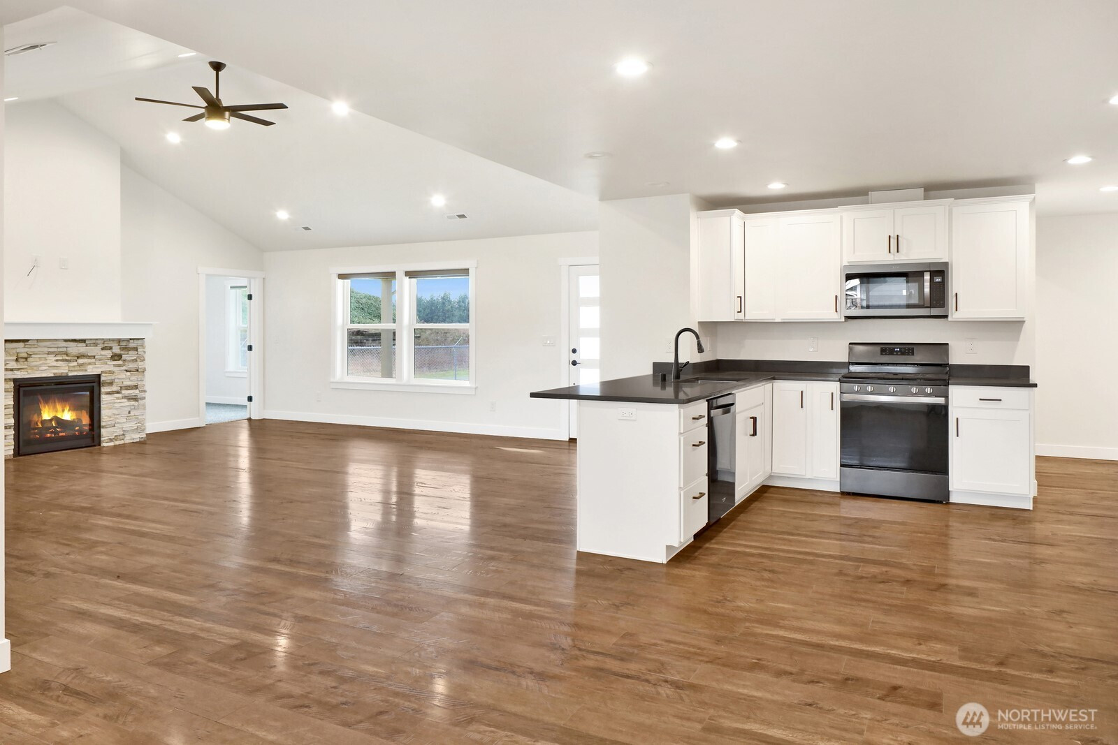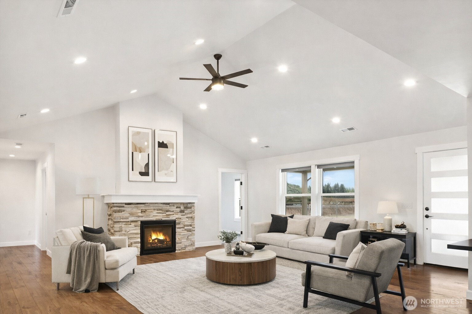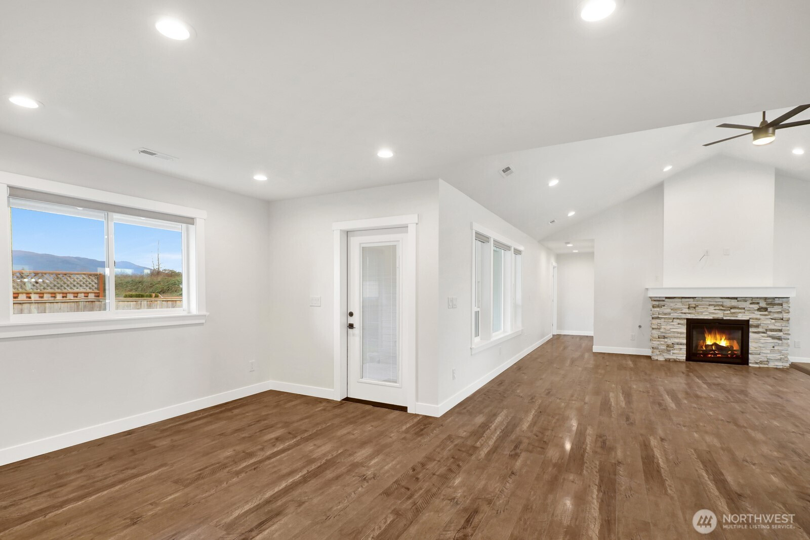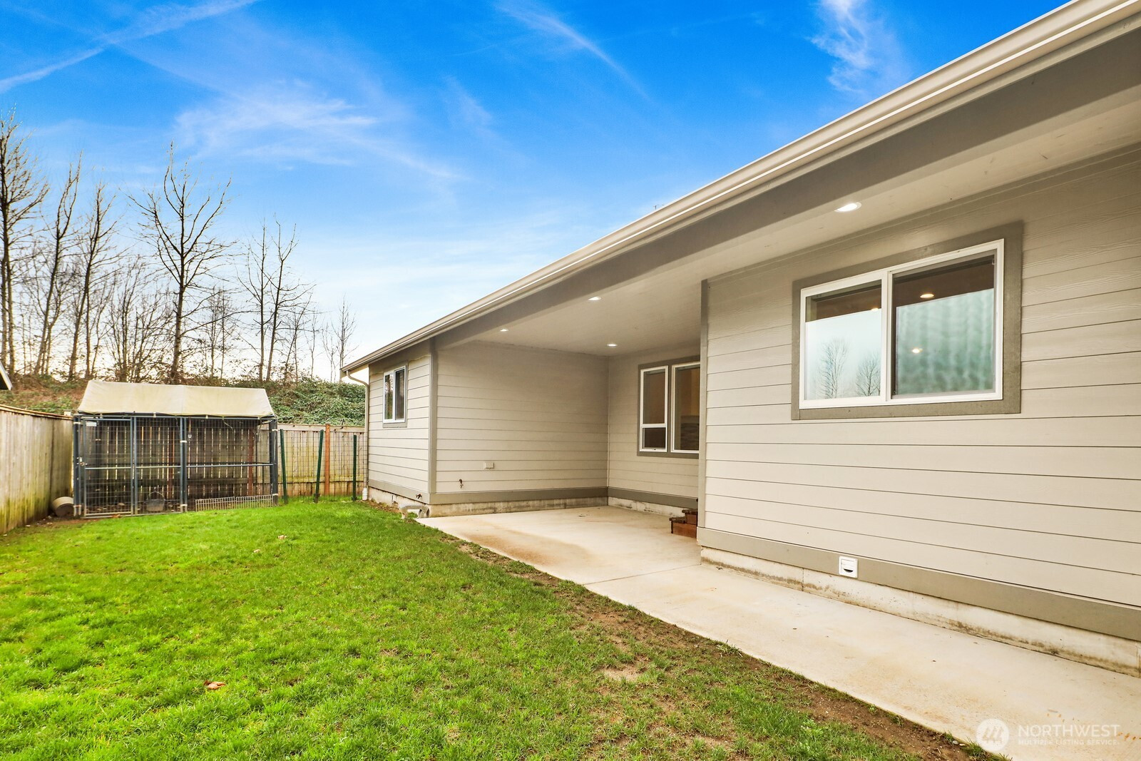 Perfectly positioned on a private 9,500 sq ft corner lot, this fully fenced home offers thoughtful design, modern finishes, and an ideal layout for everyday living. Featuring 3 bedrooms and 1.75 bathrooms, the open-concept floor plan is highlighted by a spacious kitchen with granite countertops, stainless steel appliances, a huge pantry, and soaring vaulted ceilings that create a bright and inviting feel. The gas fireplace adds warmth and charm, AC to keep it cool during the summer, while the oversized two-car garage provides ample space for parking and storage. The generous primary suite is a true retreat, complete with a double-sink vanity and a large walk-in closet. Step outside to the partially covered patio—perfect for year-round enjoyment of the expansive backyard. Tucked away on a quiet dead-end street yet just minutes to Bellingham, this home offers a convenient location and added peace of mind, as it is situated outside the flood plain and doesn't flood.