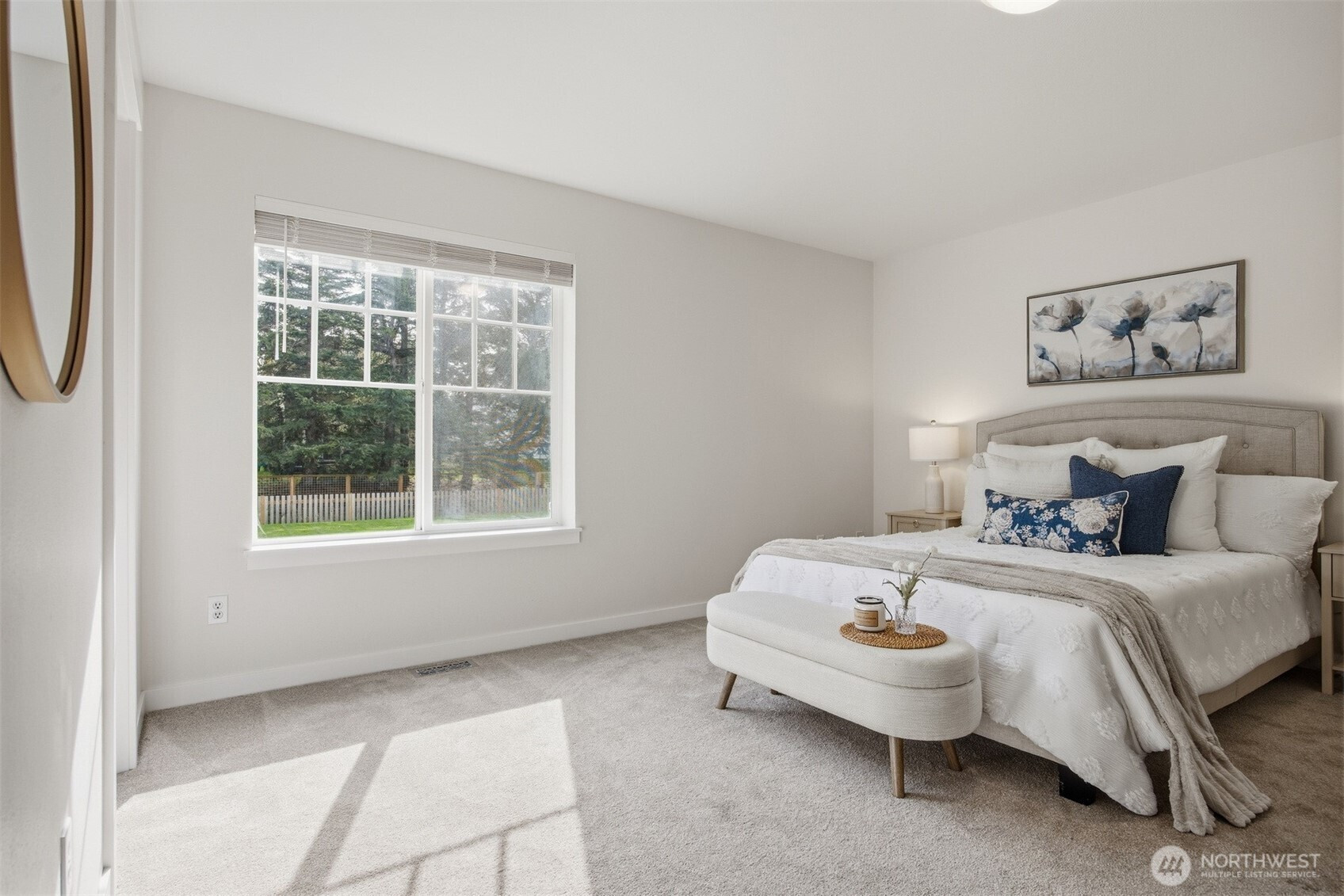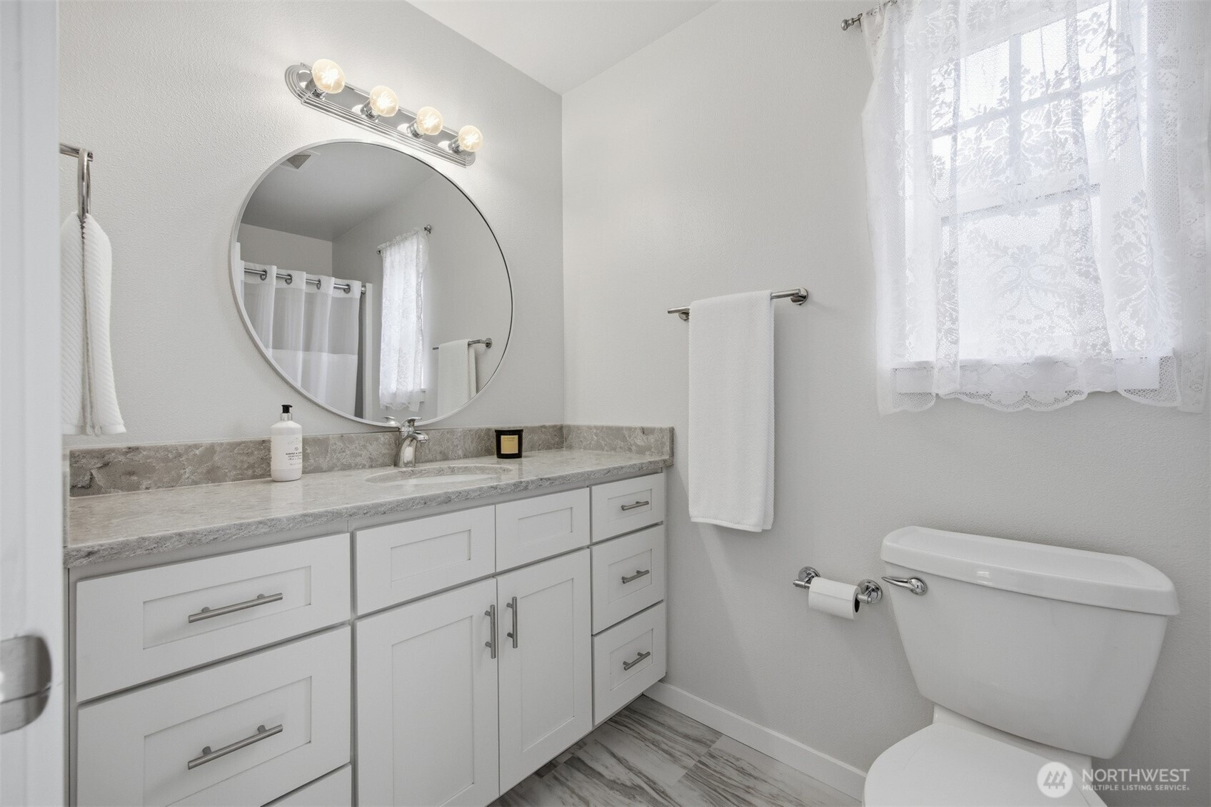 Charming home was completely remodeled in 2023 - everything new including roof, cabinetry, trim/paint, appliances. Tasteful and current design choices reflect a balance between traditional and modern. Lots of windows and a great layout with primary and two living areas on the main floor, three additional, large bedrooms and a huge bonus room upstairs. The kitchen is roomy and adjacent to the family room with a view of backyard vista. Really sweet patio and great, fenced yard that backs to a seasonal creek. Close to all schools, the ball fields, parks. Move in ready! Don't miss this one!