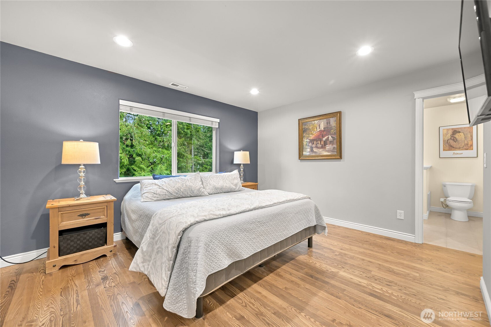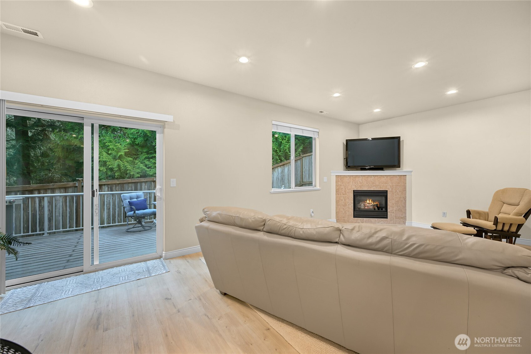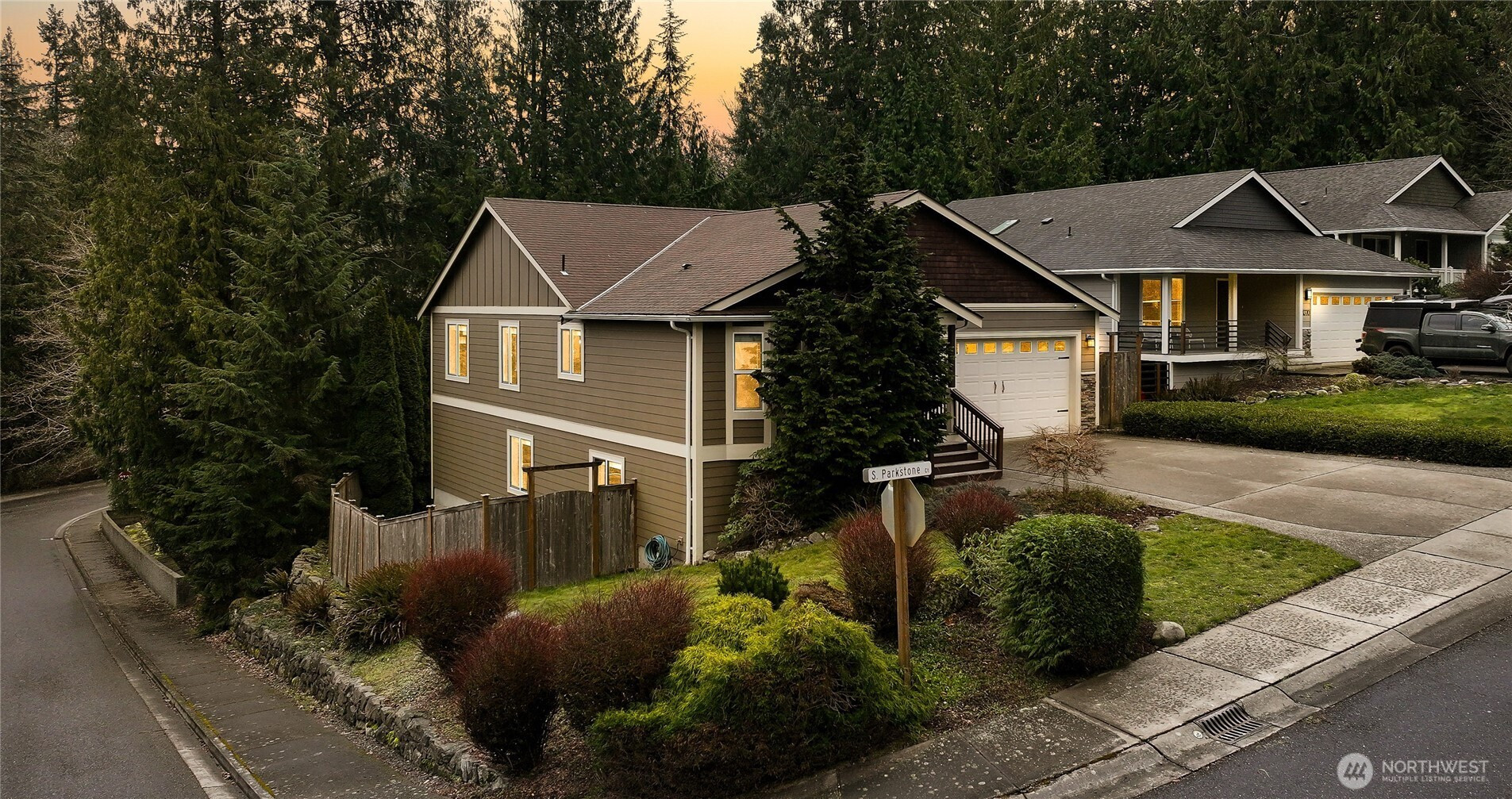Beautiful home in a quiet, picturesque setting backing to greenspace and adjacent to Galbraith Mountain trails. This 4-bedroom, 2.5-bath home features a main-level primary suite, hardwood floors, and a chef’s dual fuel range. The bright corner lot fills the home with natural light, creating a warm and inviting feel. The spacious lower-level family room offers a cozy fireplace and updated LVP flooring that flows to the private back deck. Enjoy a fully fenced yard, seasonal creek, newer roof, and EV charger. With mountain biking trails out your back door and walkable to 240 acres of stunning Whatcom Falls Park, this location blends privacy with easy access to outdoor recreation.