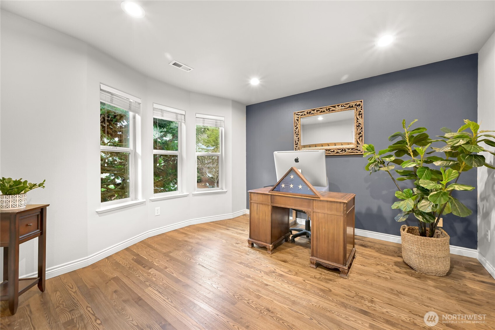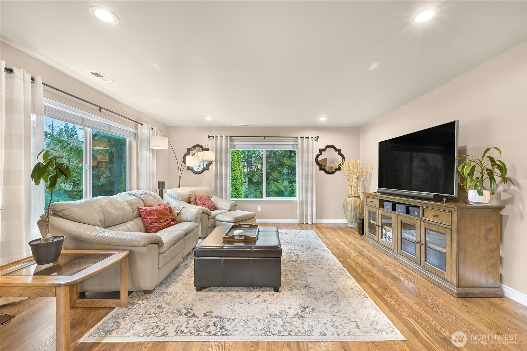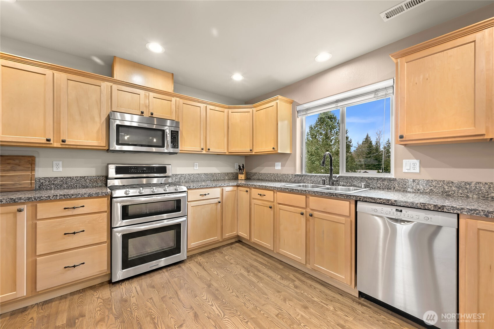 Beautiful home in a quiet, picturesque setting backing to greenspace and adjacent to Galbraith Mountain trails. This 4-bedroom, 2.5-bath home features a main-level primary suite, hardwood floors, and a chef’s dual fuel range. The bright corner lot fills the home with natural light, creating a warm and inviting feel. The spacious lower-level family room offers a cozy fireplace and updated LVP flooring that flows to the private back deck. Enjoy a fully fenced yard, seasonal creek, newer roof, and EV charger. With mountain biking trails out your back door and walkable to 240 acres of stunning Whatcom Falls Park, this location blends privacy with easy access to outdoor recreation.