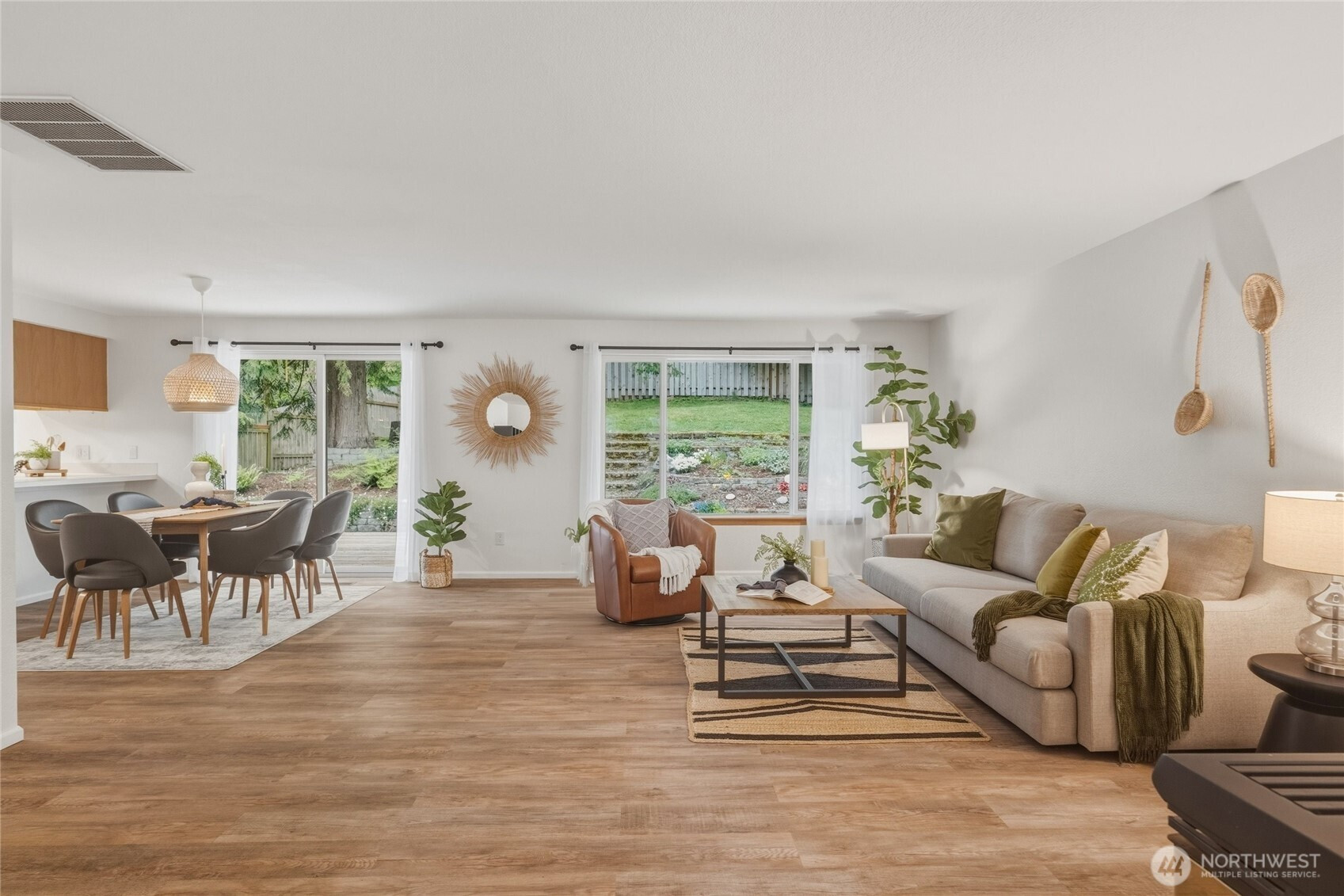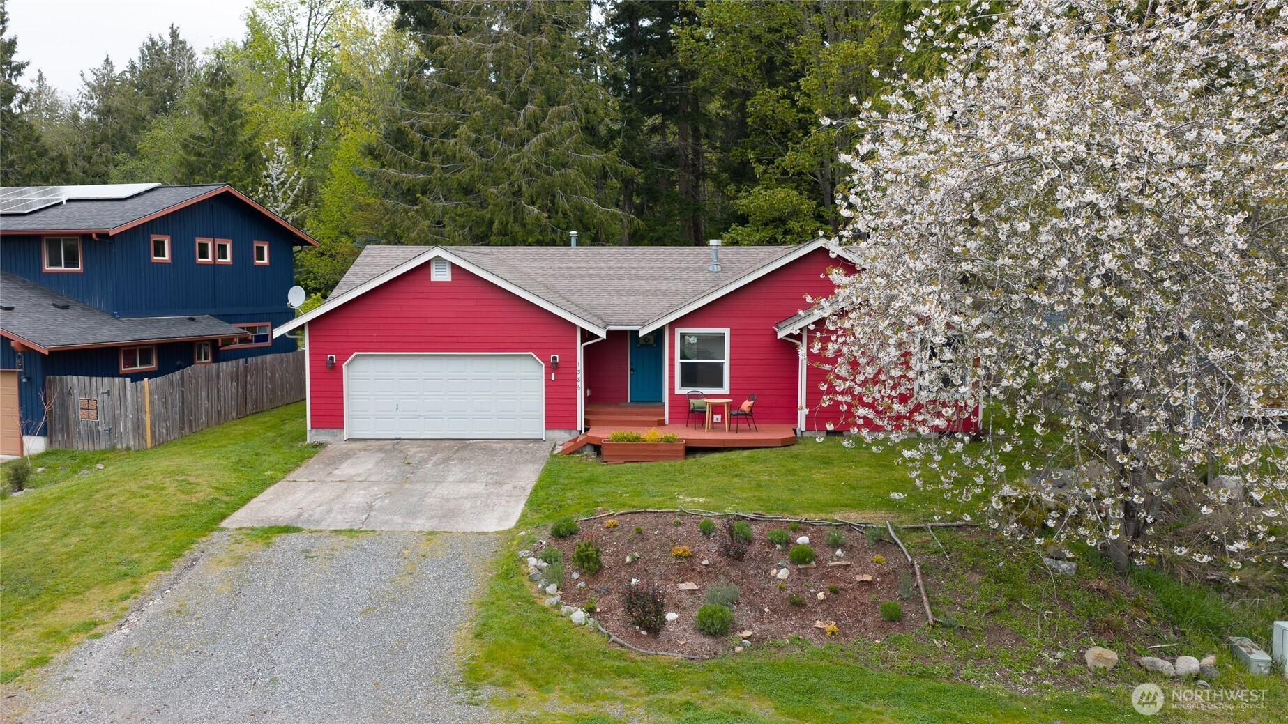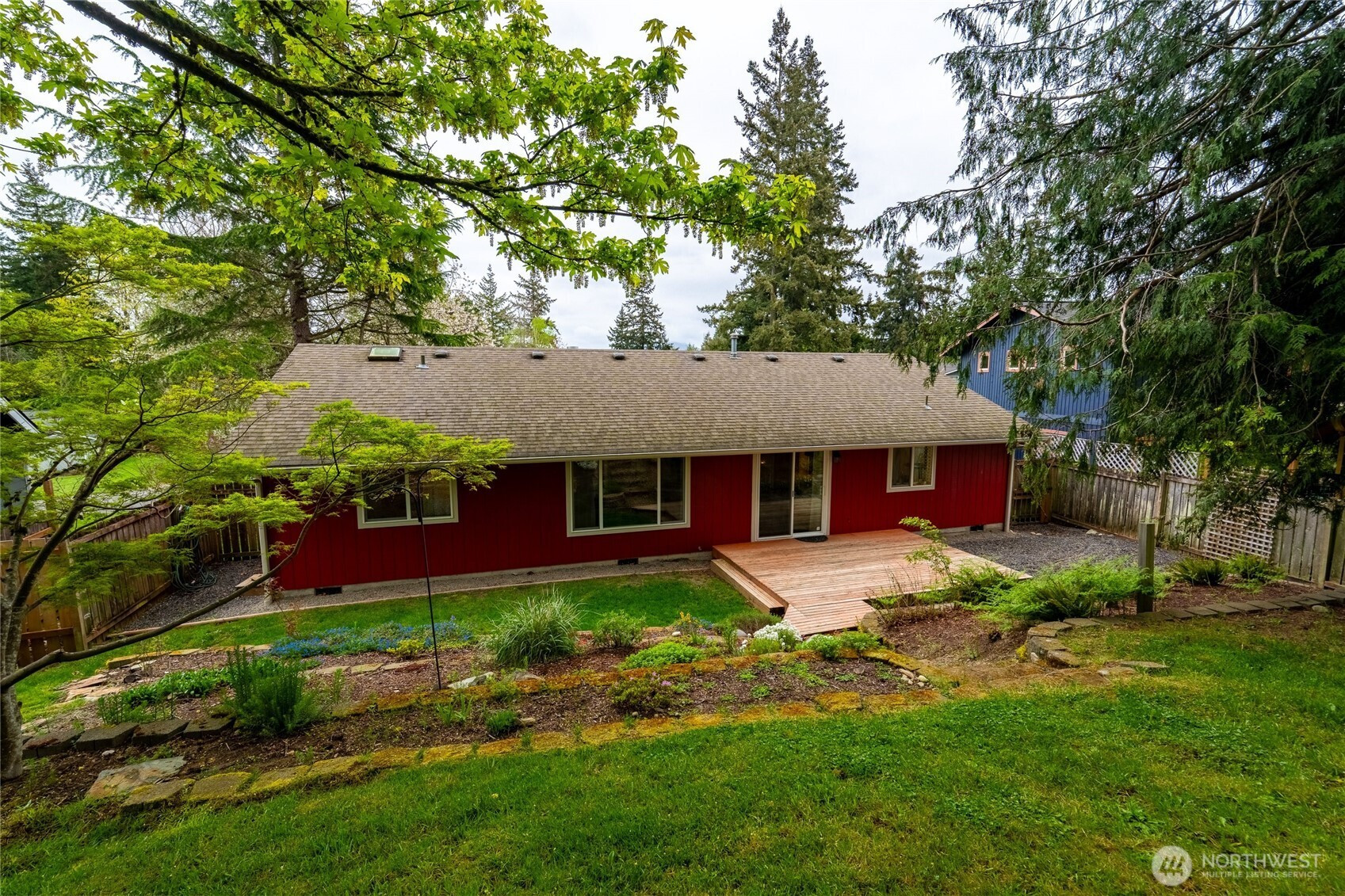 Tucked into a quiet community with a greenbelt right out your back gate, this thoughtfully updated single-level home is move-in ready — the heavy lifting has already been done.Major updates include new siding, exterior paint, gutters, water heater, furnace, insulation, and windows, plus fresh flooring throughout, interior paint, and updated lighting fixtures. Even the washer and dryer are included.Enjoy two outdoor living spaces — front and back decks perfect for relaxing or entertaining — plus a fenced, terraced backyard with direct gate access to the greenbelt. The garage features a built-in office space with room remaining for one car and generous storage.This 3-bedroom, 2-bath home sits in an unbeatable location just minutes from Barkley Village, local restaurants, parks, and the trail system, with quick access to I-5. Comfort, convenience, and nature — all in one.