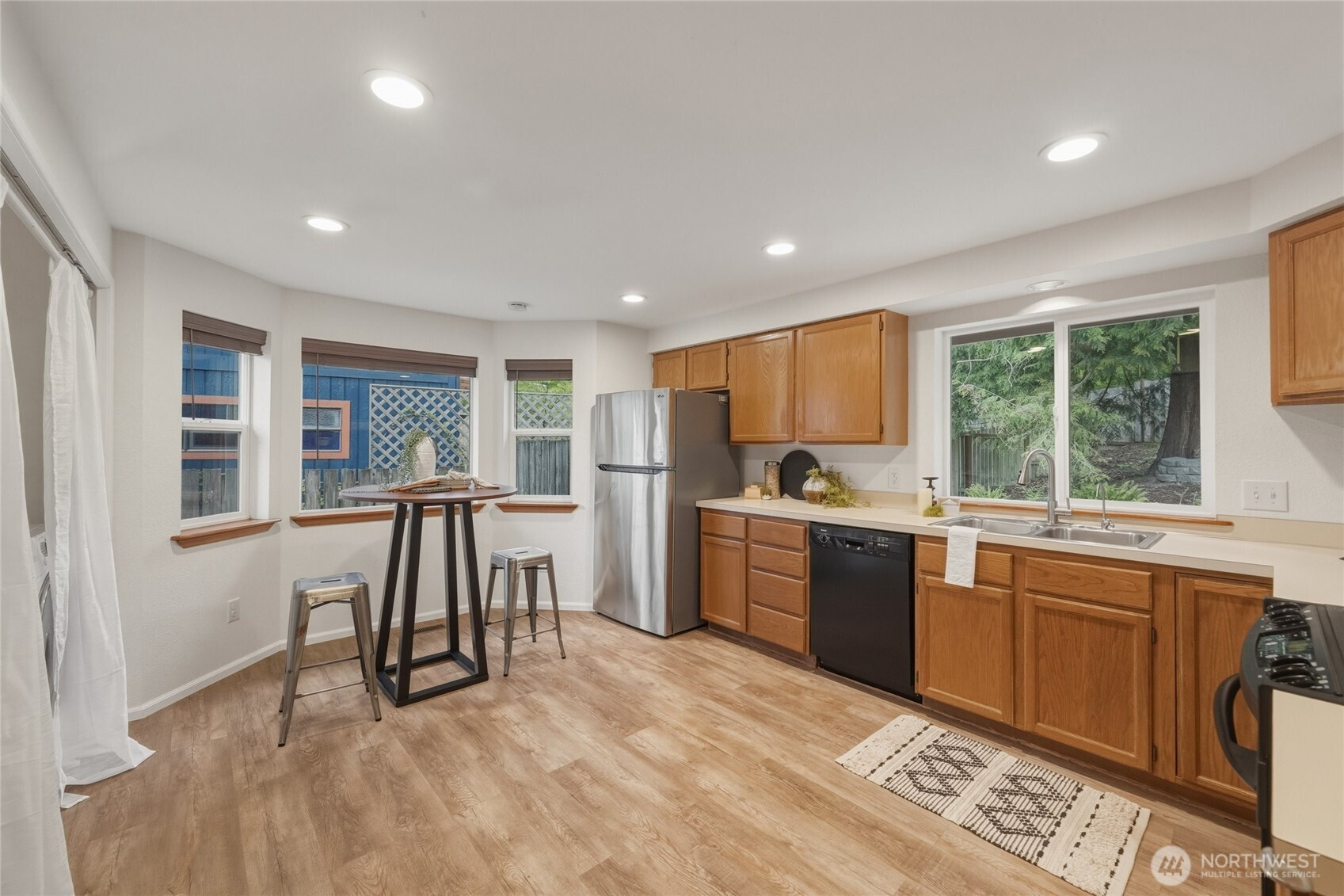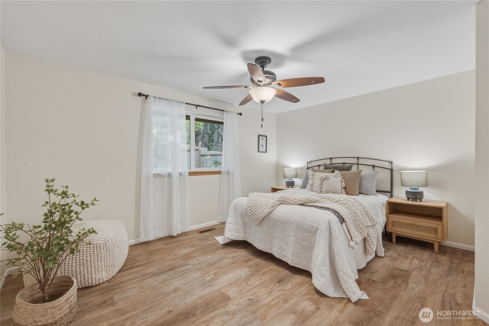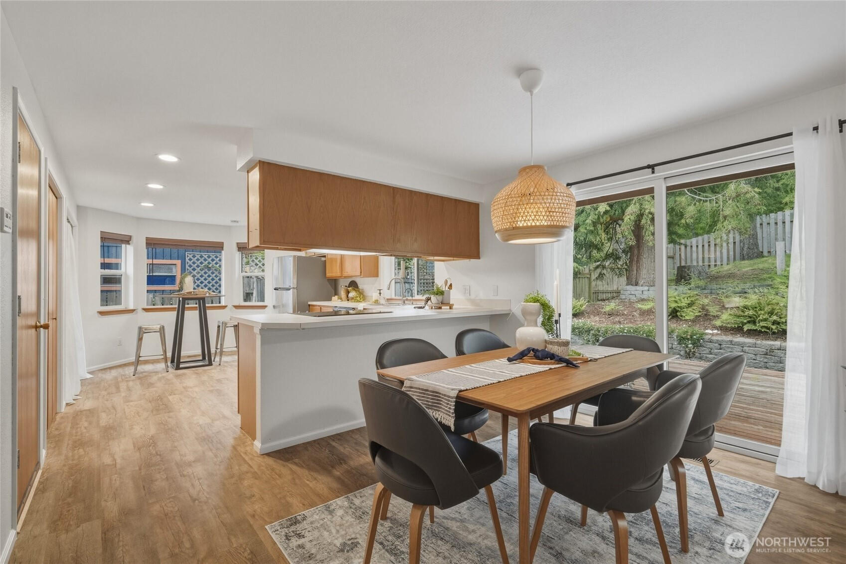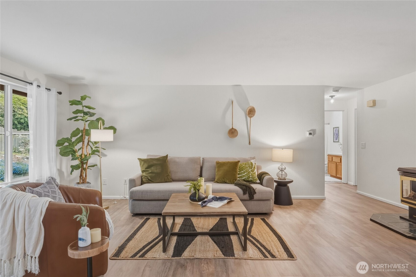 Tucked into a quiet community with a greenbelt right out your back gate, this thoughtfully updated single-level home is move-in ready — the heavy lifting has already been done.Major updates include new siding, exterior paint, gutters, water heater, furnace, insulation, and windows, plus fresh flooring throughout, interior paint, and updated lighting fixtures. Even the washer and dryer are included.Enjoy two outdoor living spaces — front and back decks perfect for relaxing or entertaining — plus a fenced, terraced backyard with direct gate access to the greenbelt. The garage features a built-in office space with room remaining for one car and generous storage.This 3-bedroom, 2-bath home sits in an unbeatable location just minutes from Barkley Village, local restaurants, parks, and the trail system, with quick access to I-5. Comfort, convenience, and nature — all in one.