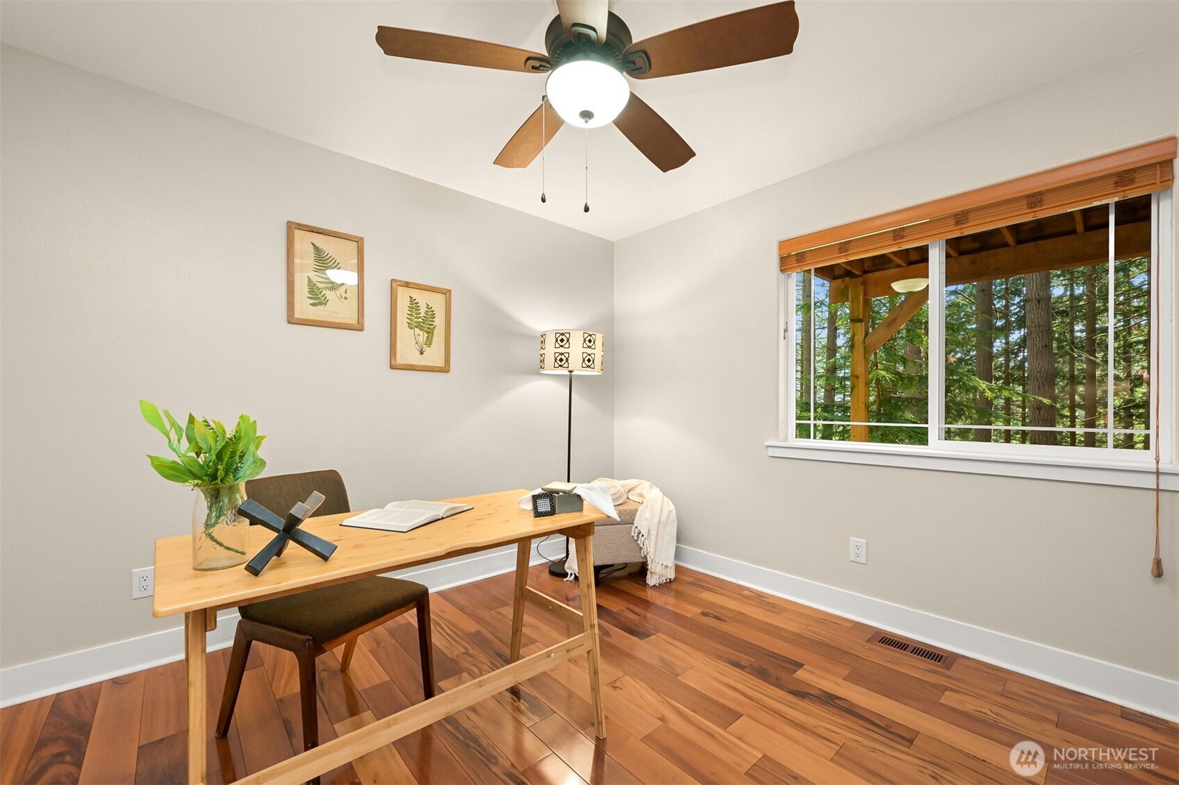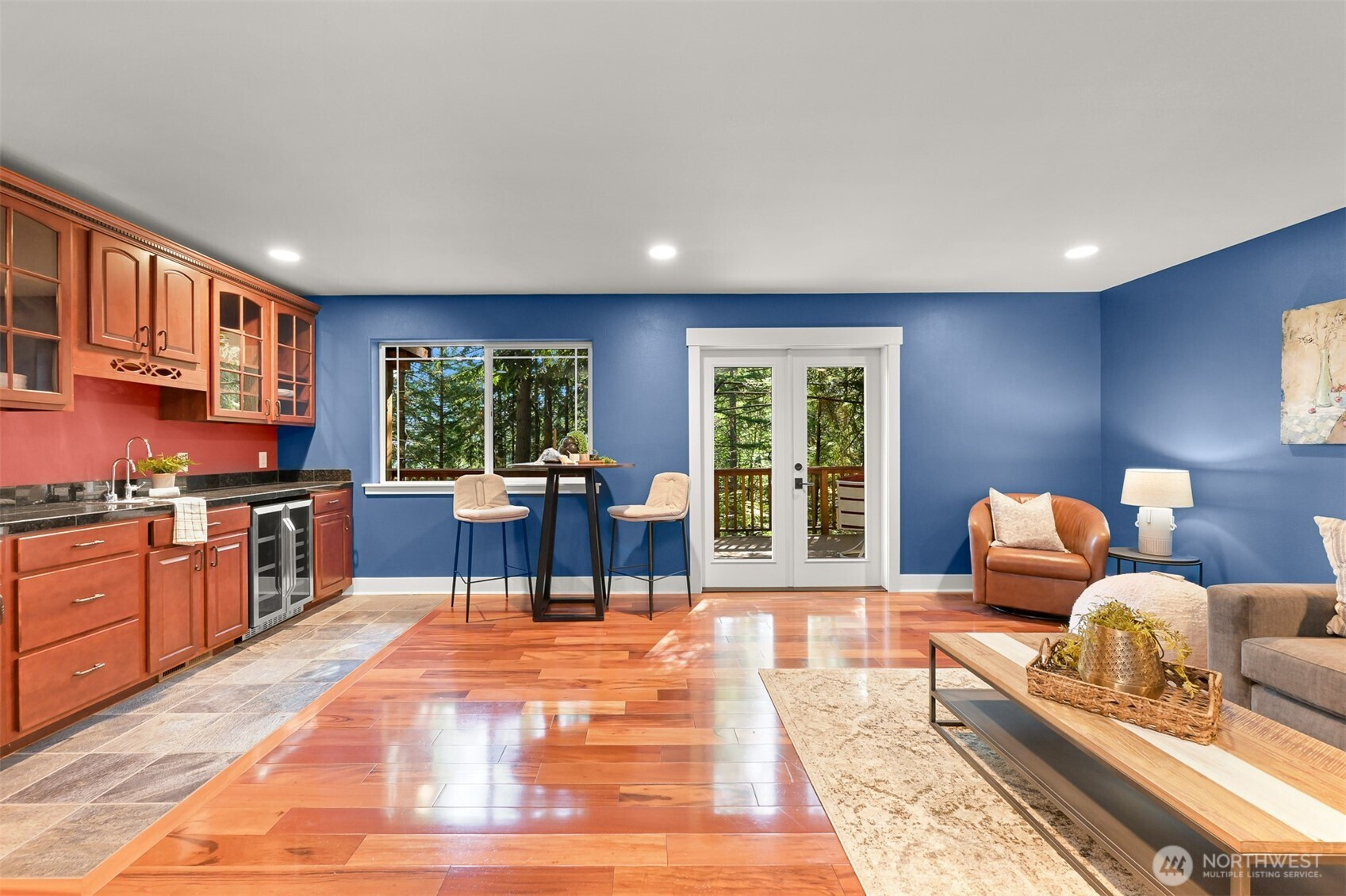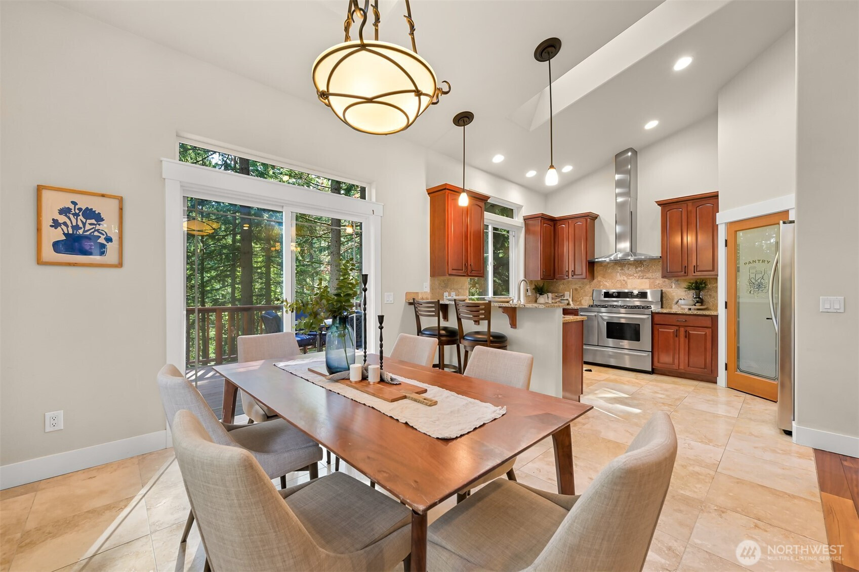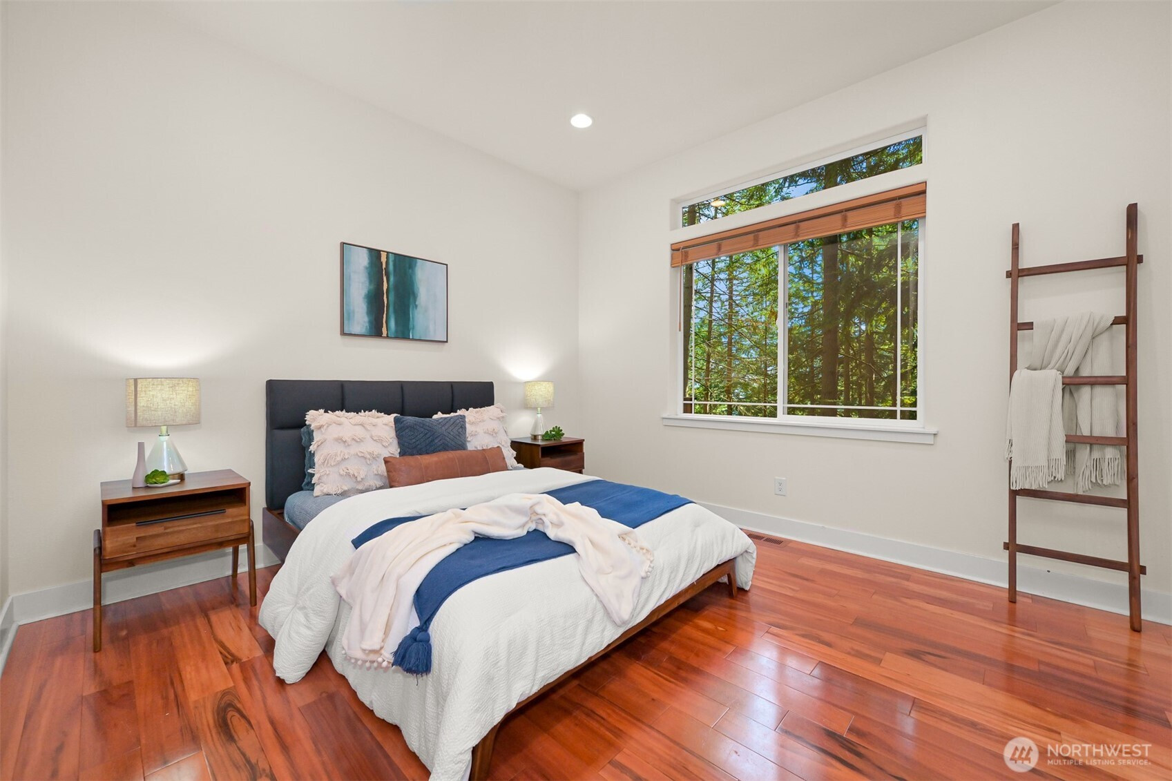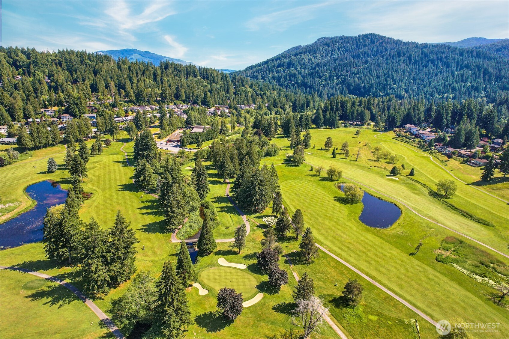Experience refined living in a secluded woodland estate, embraced by mature landscaping and unparalleled privacy. Superior craftsmanship and thoughtful upgrades shine throughout. Tigerwood floors, transom windows, skylights, and soaring 16’ vaulted ceilings. Entertain on three Trex decks or cozy up by the gas fireplace. The main-level primary suite features a spa-like en suite with granite and Travertine finishes. A granite wet bar, tankless water heater, buried propane tank, and level driveway add convenience. Major updates include newer furnace, heat pump/AC (2022), roof (2025 w/ transferable warranty). Enjoy Sudden Valley’s golf course, marina, fitness center, and pool—your ideal lifestyle awaits!