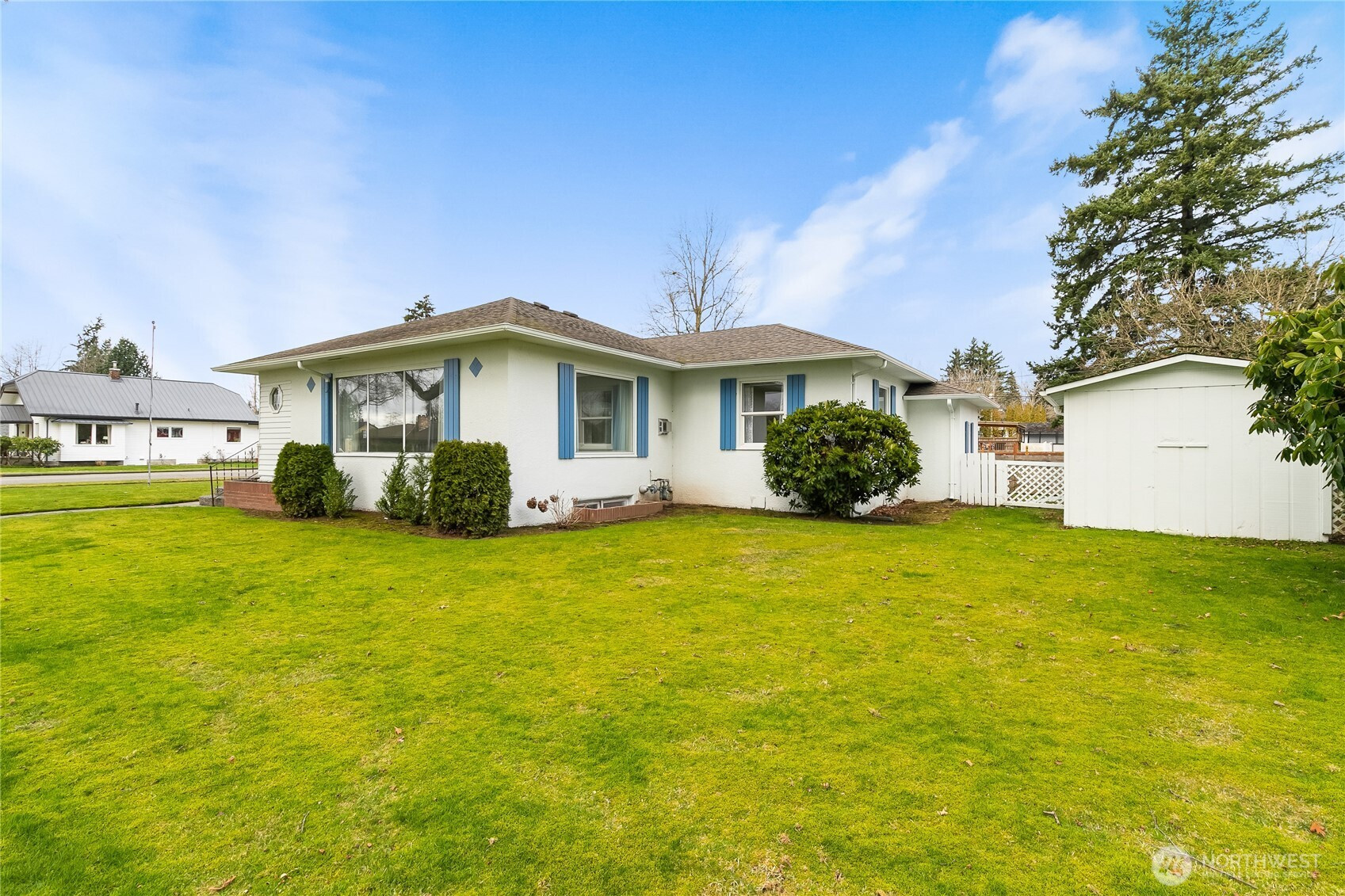 The beauty of Front Street in Lynden has sparked desire and imagination for decades. This solid move in ready home not only has style and eye appeal on the exterior but also has a design and ambiance that only comes with a midcentury home of this quality. Note the new exterior paint, and the 4-year new roof! This home offers easy main floor living and includes a partially finished basement with a 3/4 bath, and lots of storage as well. The large living room features custom ceiling styles of the mid-century, lots of natural light and a cozy gas fireplace. The dining room has a wonderful built-in corner hutch and even a unique built-in mailbox! Most of the main floor rooms feature wood floors under the carpet! The kitchen is roomy with lots of storage, built-ins you will appreciate and plenty of room for a kitchen table. Head down the stairs to the lower level and find original utility room with the included freezer and many cabinets. Just ahead you will find a former bedroom that is a great possibility for a playroom or den. Look for the canning pantry that is just great storage. Also, you will find an unfinished room (formerly a wood shop) that can be used as you wish. Outside note the attached garage and the long driveway that accommodates plenty of parking. In the back you will find two sheds for lawn tools or storage. Maybe stroll down the sidewalk to the Fairway Shopping Center (2 blocks) or perhaps catch the WTA bus across the street. A wonderful place to call home...
