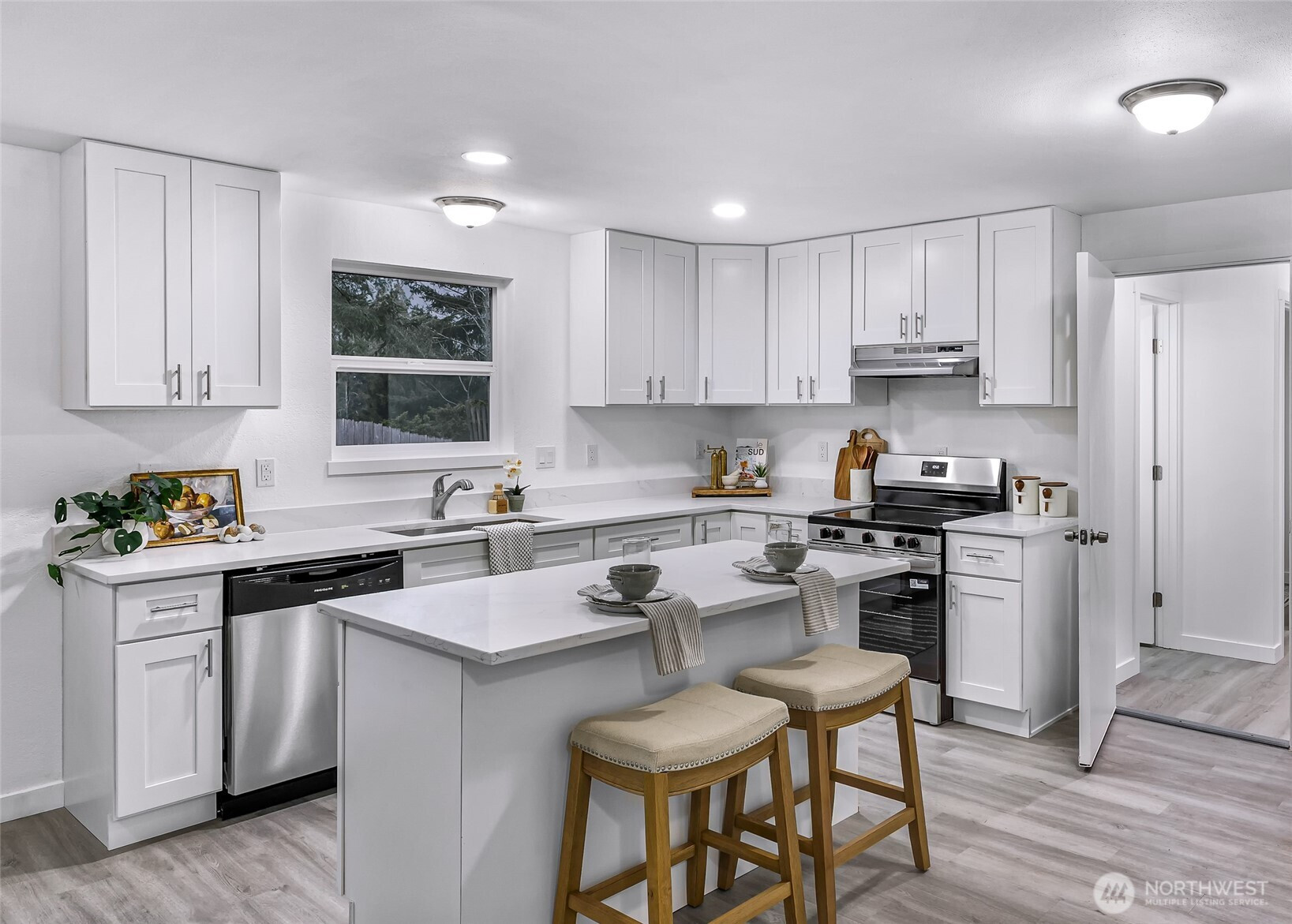 An incredible 3 Bedroom, 2 Bathroom Bellingham find — Completely remodeled and move-in ready! This home features a brand-new roof, kitchen and baths, new flooring, lighting, and fresh paint inside and out plus TWO bonus rooms + bathroom! Backyard is cleared and ready to be replanted with your unique vision. Every detail has been thoughtfully refreshed for modern comfort and style. Ideally located near Lake Whatcom, trails, shopping, and schools in one of Bellingham’s most sought-after neighborhoods. Enjoy worry-free living in this stunning, turnkey home — a must-see before it’s gone!