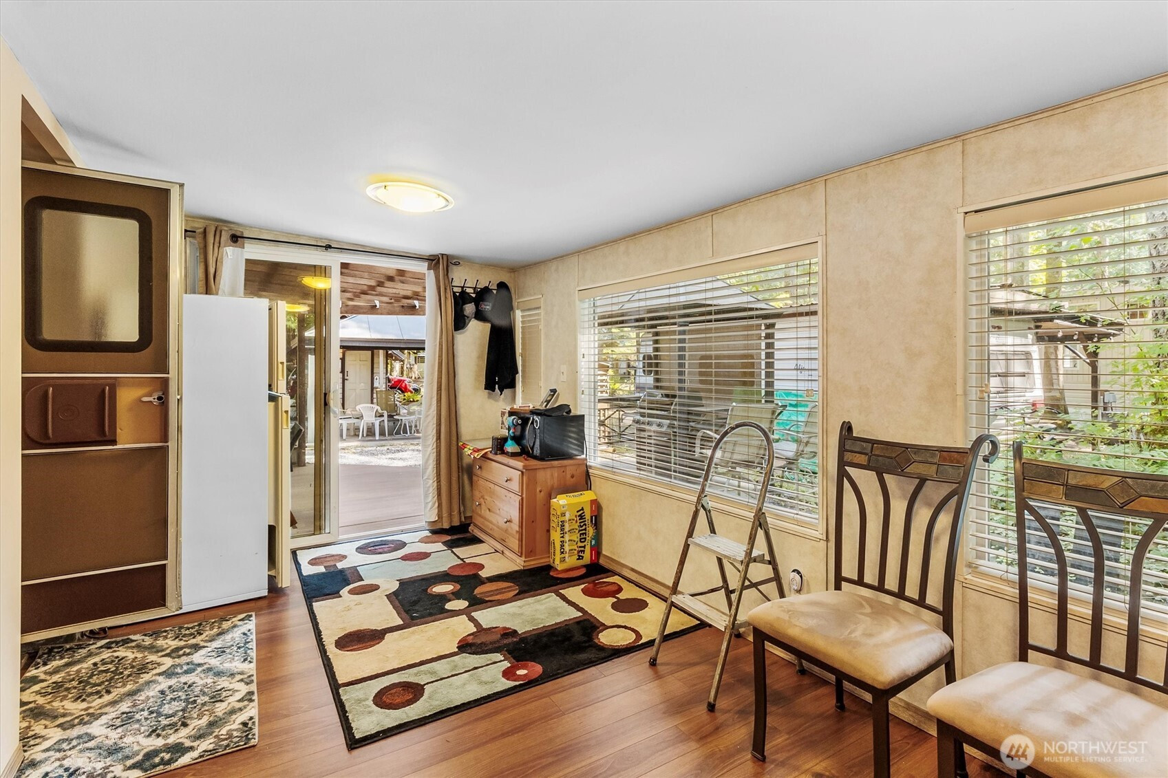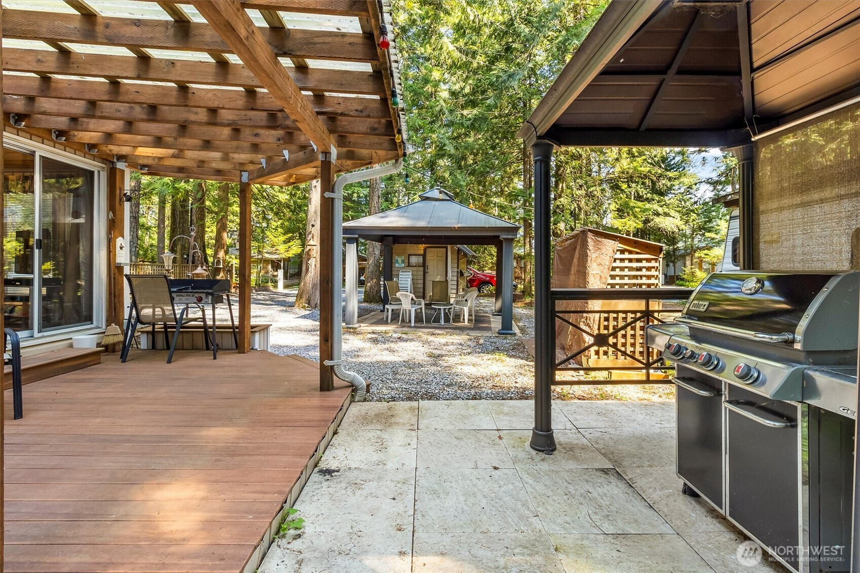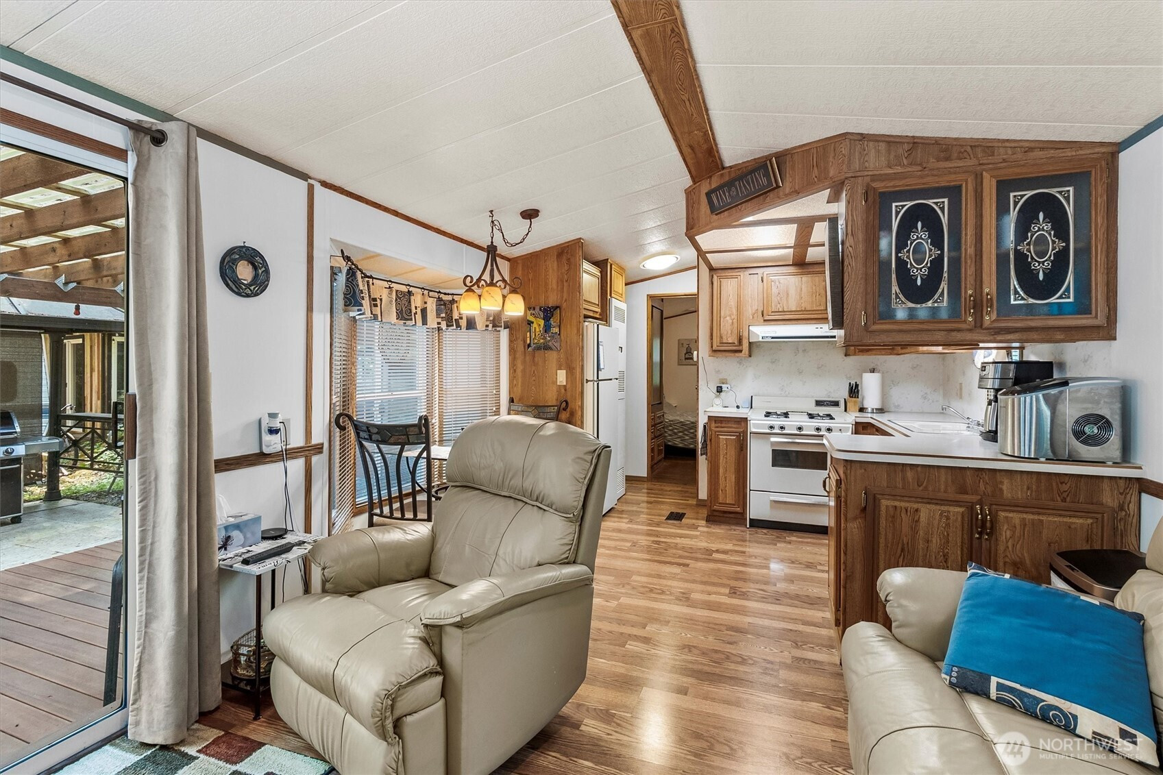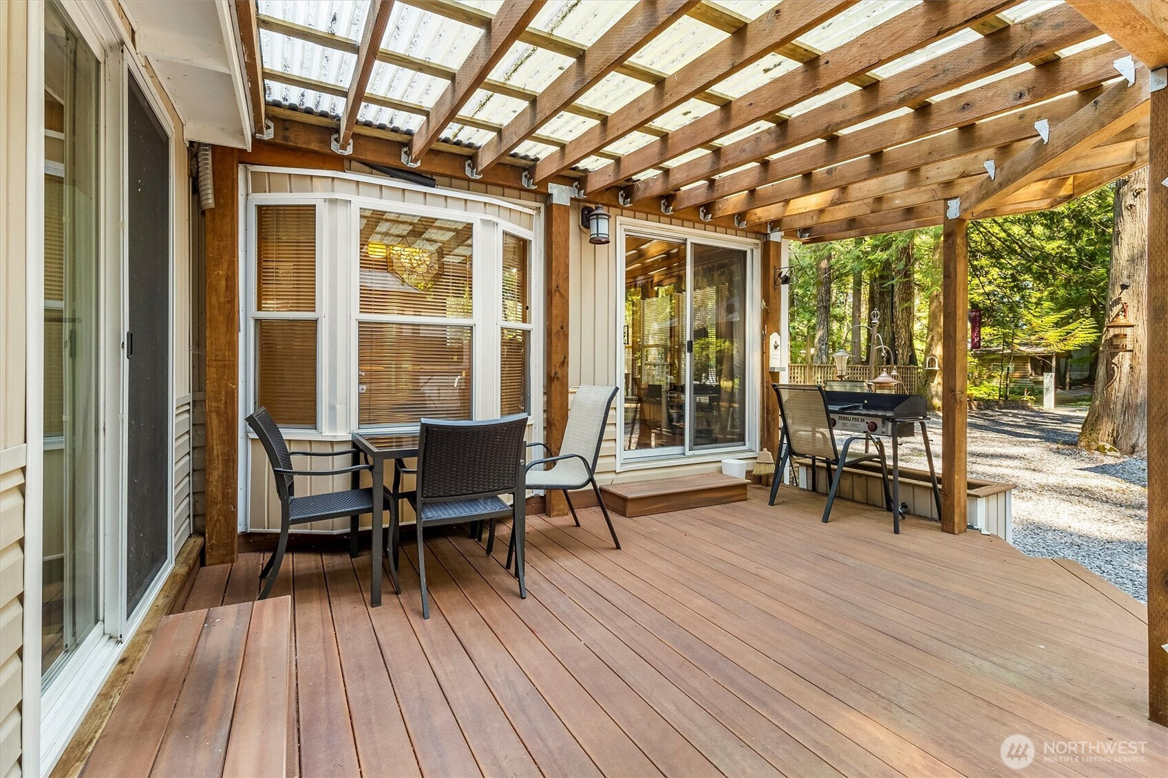A must see! Well maintained with Expanded outdoor living w/many features: Covered 162 Sq. foot dry Trex deck, spacious bump-out room great for an extra living area. Shed 7-1/2 X 11-1/2 with covered porch, along with storage shed for tools, etc. and covered dry firewood storage. Two gazebos: large one over fire pit area, and one over the Weber Grill, which are great areas for gathering with friends. A standpipe on main water line to prevent freezing during the winter. Vacation Rental max.120 days per year. Enjoy two pools, river access, trails, laundry facilities, sport courts, 24/7 security with a gated entry. This light filled private property is move in ready for you to enjoy.