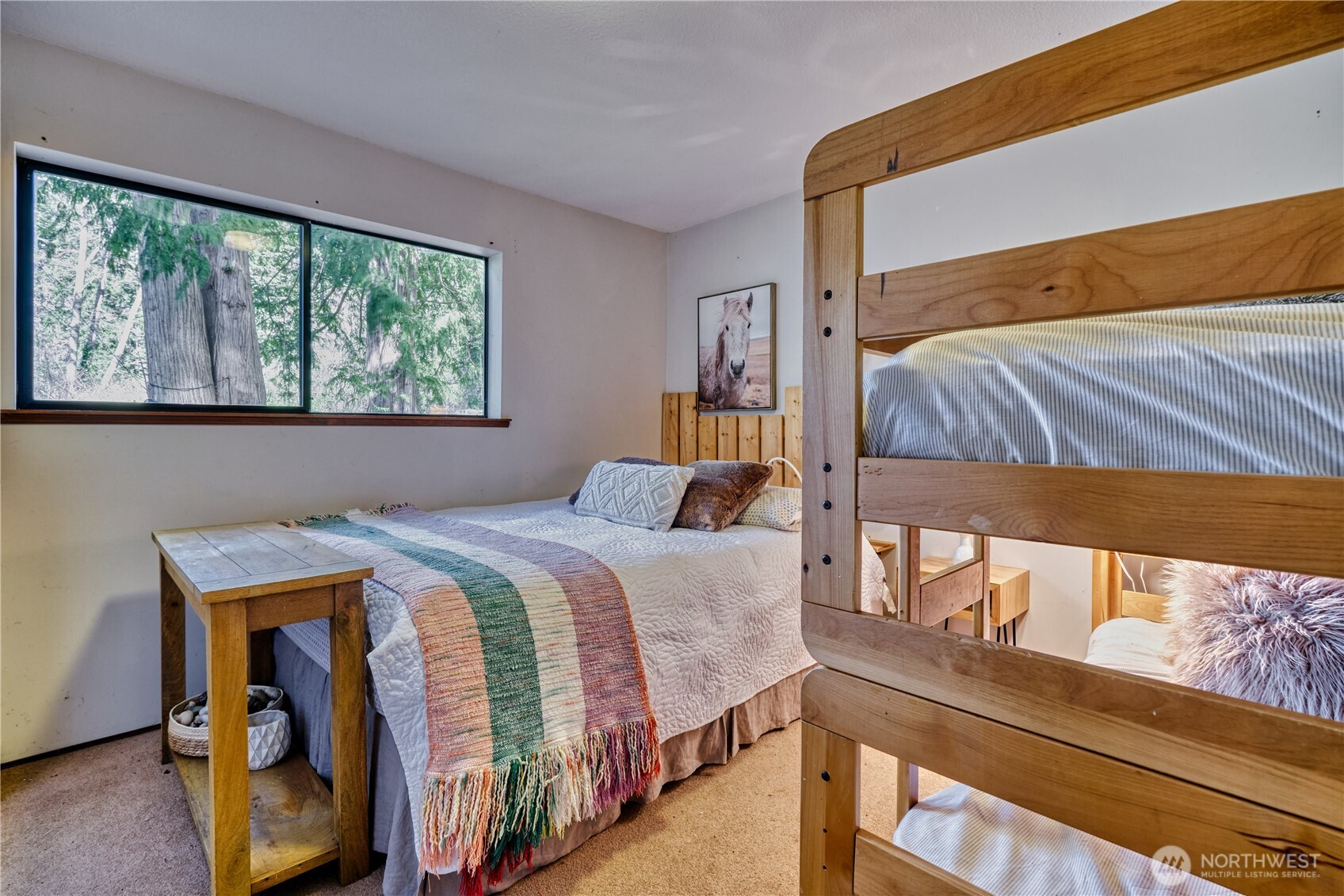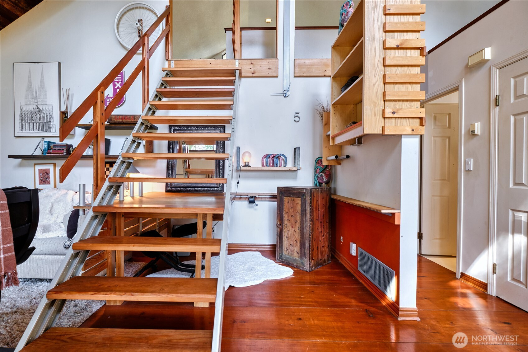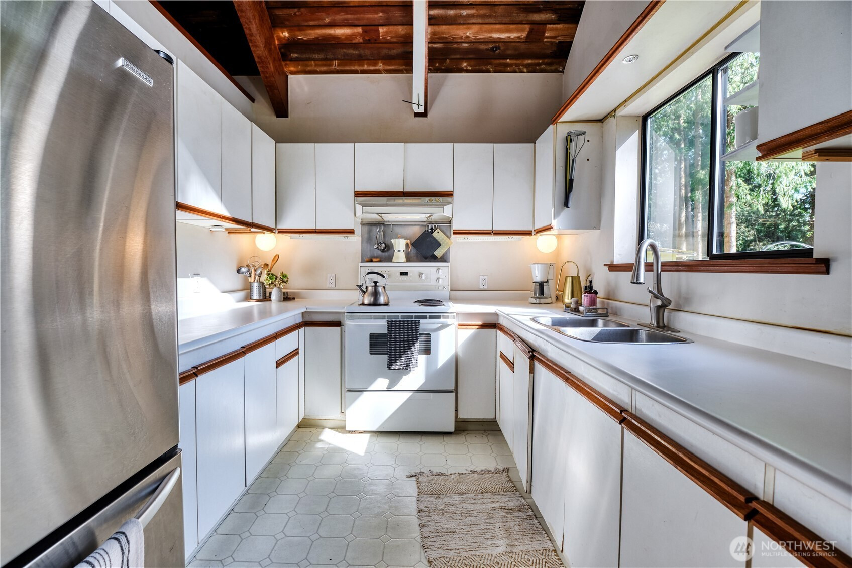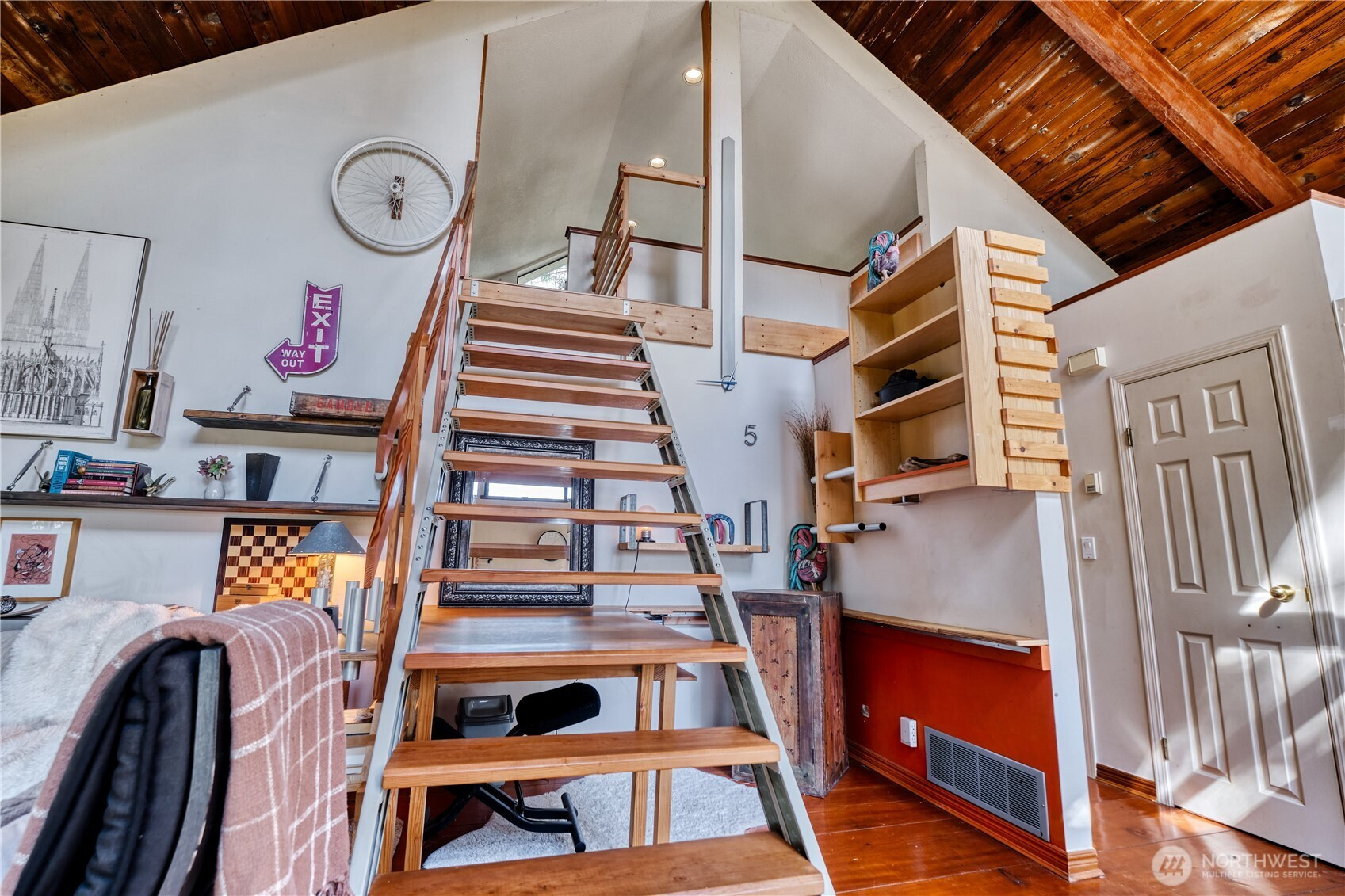 Built for full-time living in the heart of Point Roberts, this 2 bed + loft A frame offers beautiful southern exposure and a peaceful setting surrounded by evergreens. With 1,216 sq ft of thoughtfully designed living space, the home showcases classic Northwest character with soaring vaulted ceilings, exposed beams, and warm tongue-and-groove wood ceilings. Striking solid wood plank floors-milled from trees on the property during the original construction-bring natural warm history, and craftsmanship to the main living area. The open living space is bright and welcoming, with large windows that invite natural light and frame views of the surrounding trees. The loft overlooks the main living area and offers flexible space for guests, work , or cozy retreat while enjoying treetop views and open sky. Expansive decks extend the living area outdoors, crating ideal spaces for morning coffee, summer entertaining, or relaxing evenings in the quiet coastal air. Quality constructions includes a solid concrete foundation, durable cedar siding, double-pane windows, a wood stove for cozy winter nights, and a heat pump for efficient year-round comfort. Tucked into the unique seaside community of Point Roberts, the home offers a rare balance of tranquility and accessibility- approximately 45 minutes to Vancouver, BC and about two hours to Seattle.