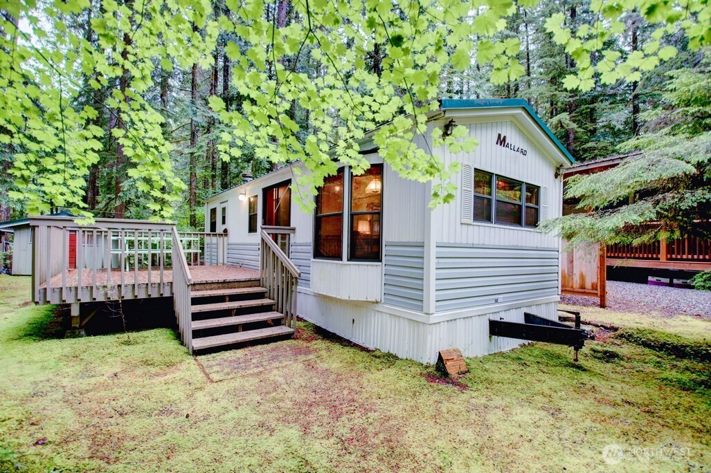 Welcome to your cozy escape in The Glen at Maple Falls! Zoned recreational for 120 days/year, this charming 1994 park model with add-a-room offers the perfect retreat. Nestled on a partially fenced lot, it features a newer covered deck with black iron railings, French doors, and a bright cedar addition with laminate flooring and sleeping for six. Inside, you’ll find clever storage, a full bath, and bay window seating. Outside, enjoy a multiuse shed, a private gravel firepit area, and ample room to relax. The Glen offers top-notch amenities: 2 pools, hot tub, tennis court, library, laundry, 2 clubhouses, 24-hour security, gated entry, and multiple play areas.